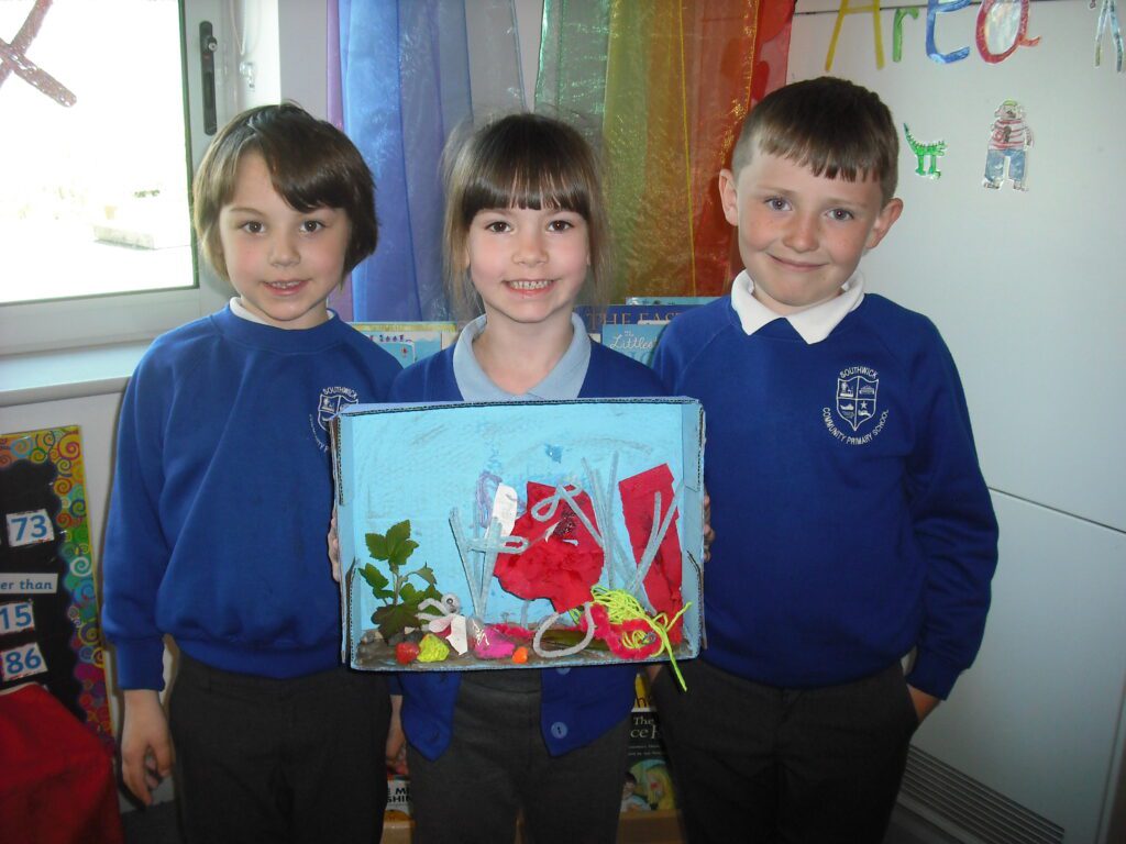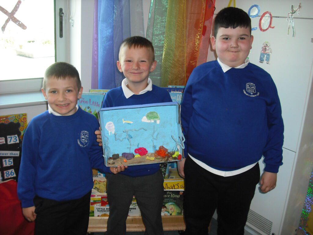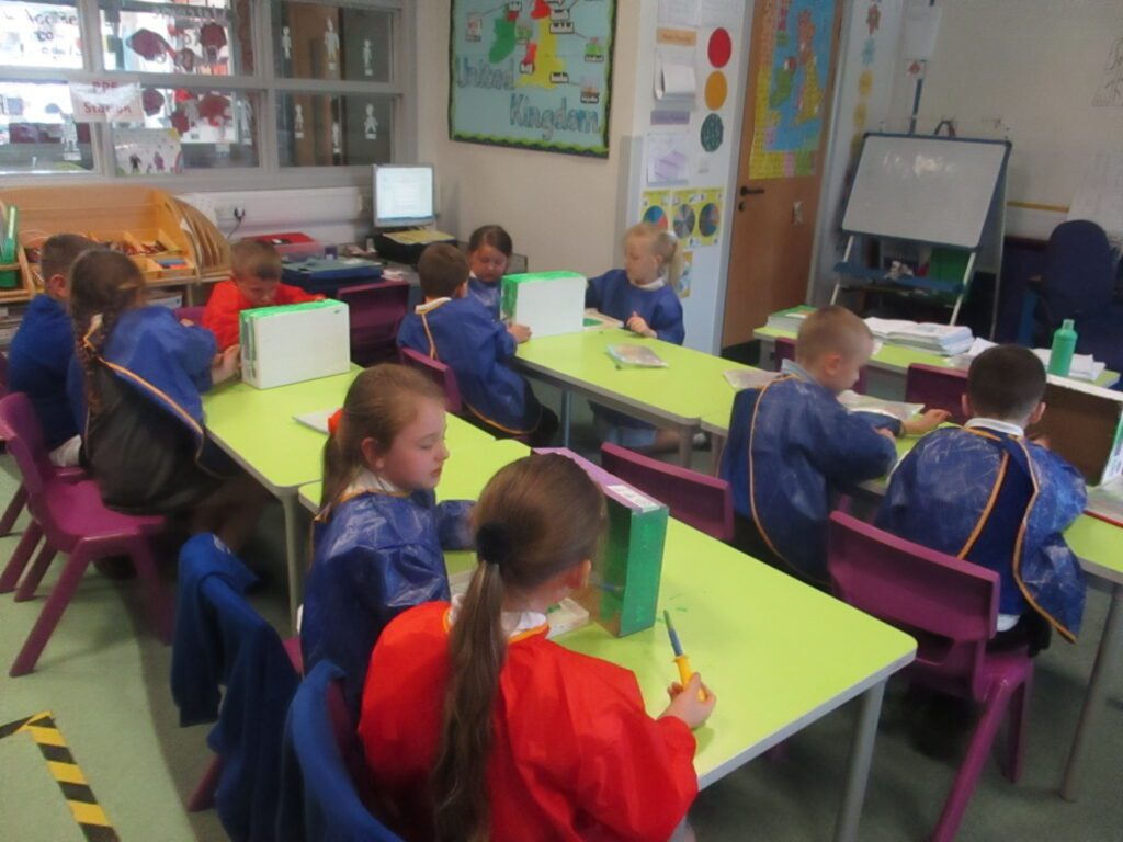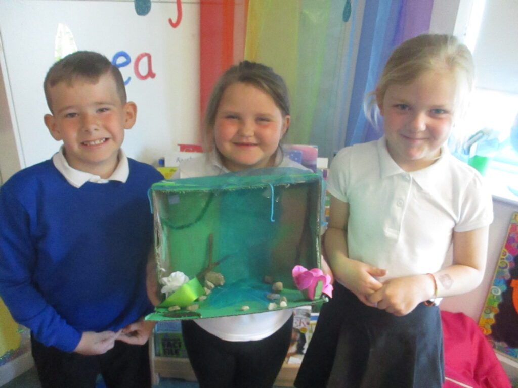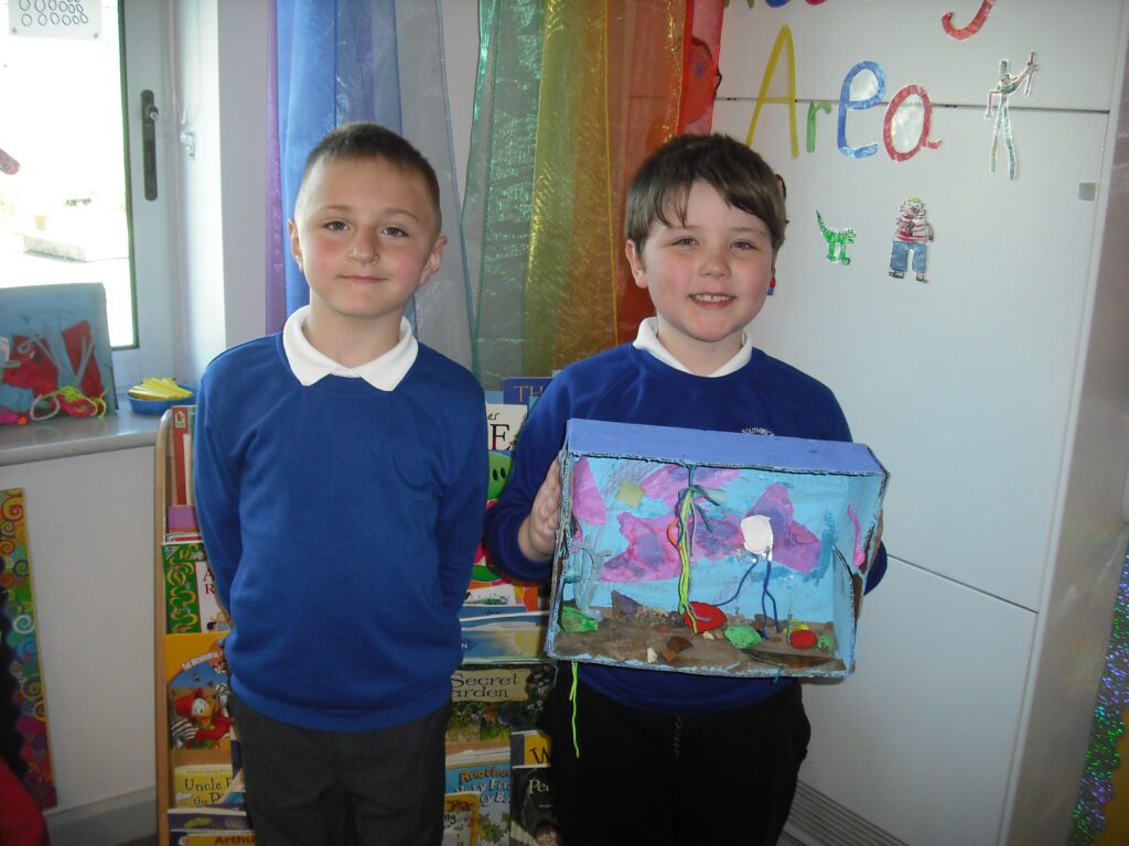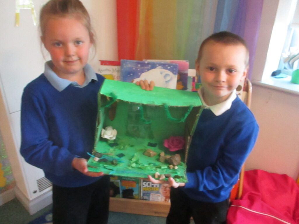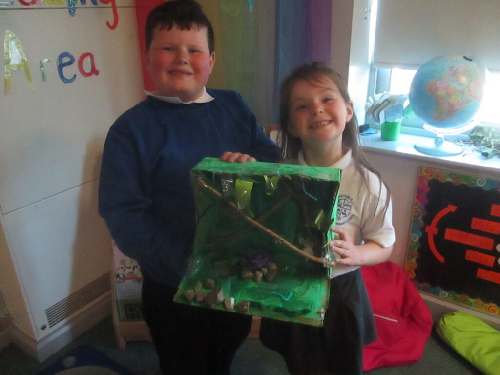 In Year 2 we have made a habitat box for our chosen animal group. In our topic sessions, we researched our habitat and looked closely at pictures to ensure we made detailed accurate representations. We painted our box to create a background colour, then we decorated our boxes to include the key features of the habitat. We used a wide range of resources to create trees, animals, vines, corals, rocks and seaweed. We are very proud of our final boxes and think they would make perfect ocean and rainforest habitats for our animals.