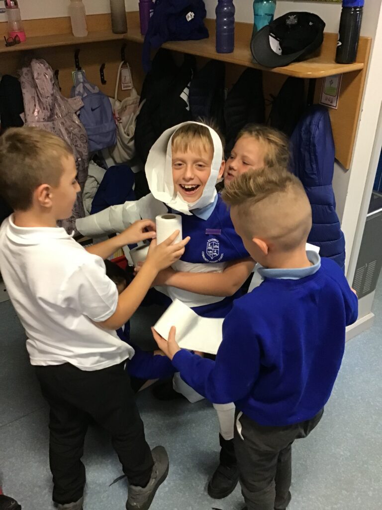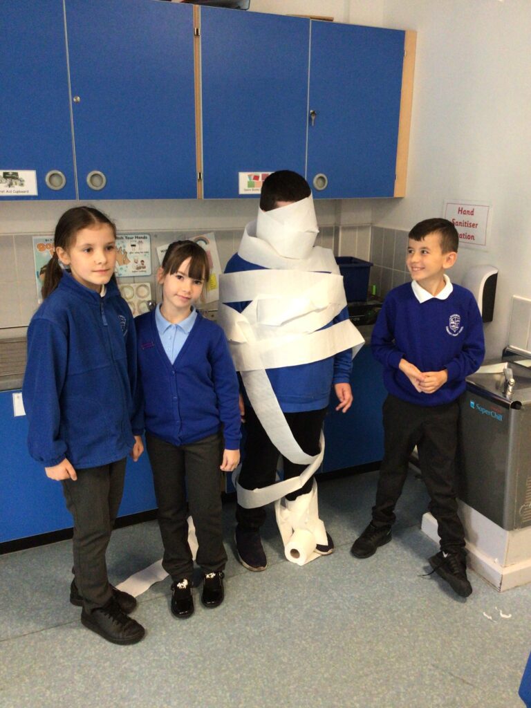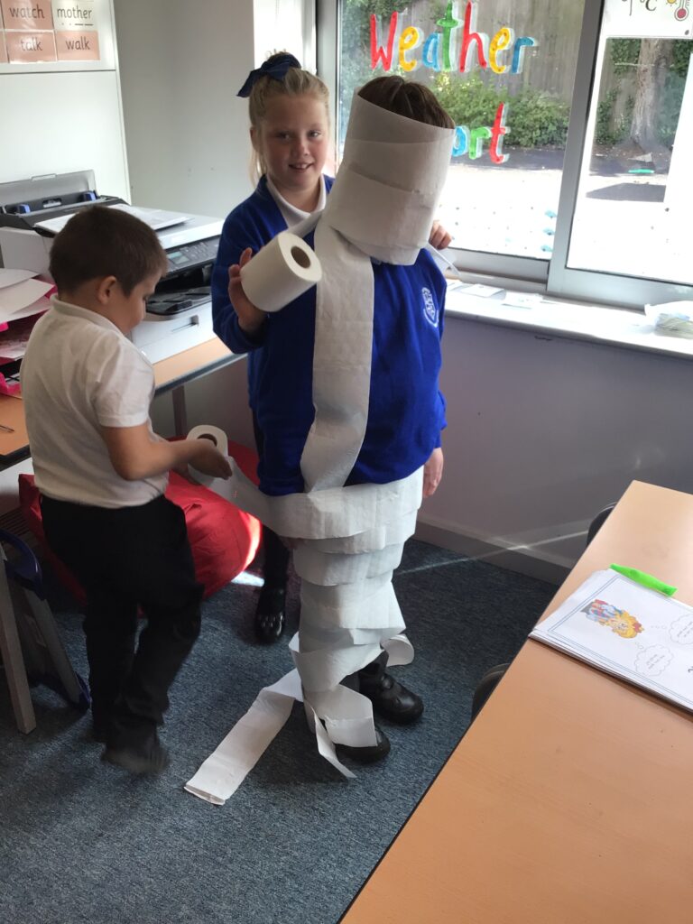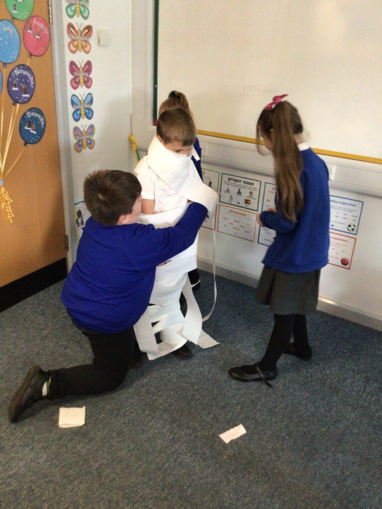 As part of our Ancient Egyptian topic, we have been learning about the process of mummification. The children found it very interesting! We even had a go at mummifying our friends.