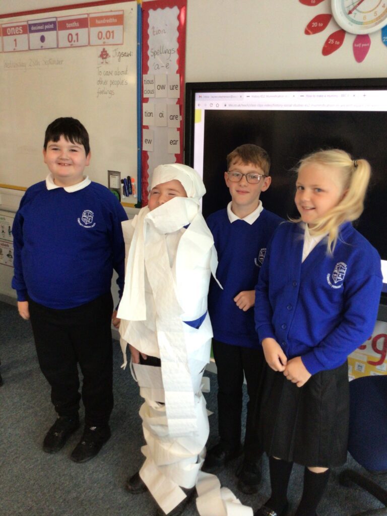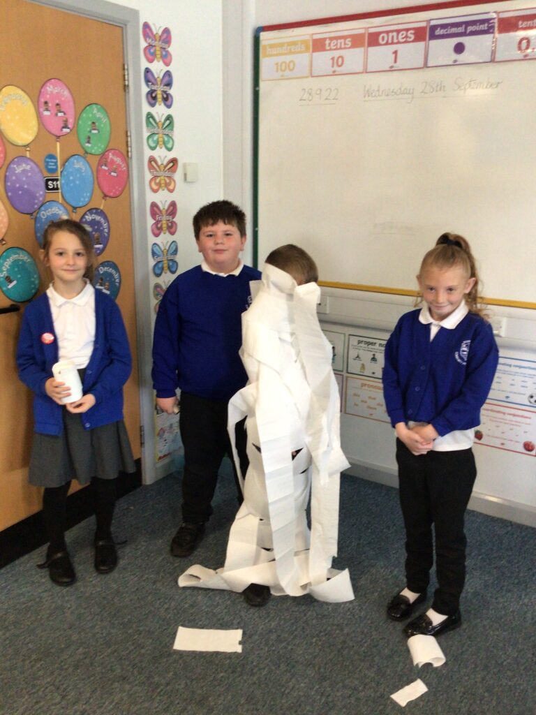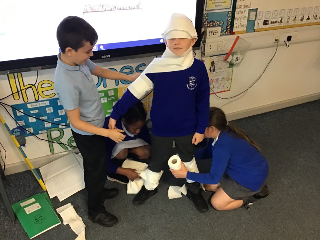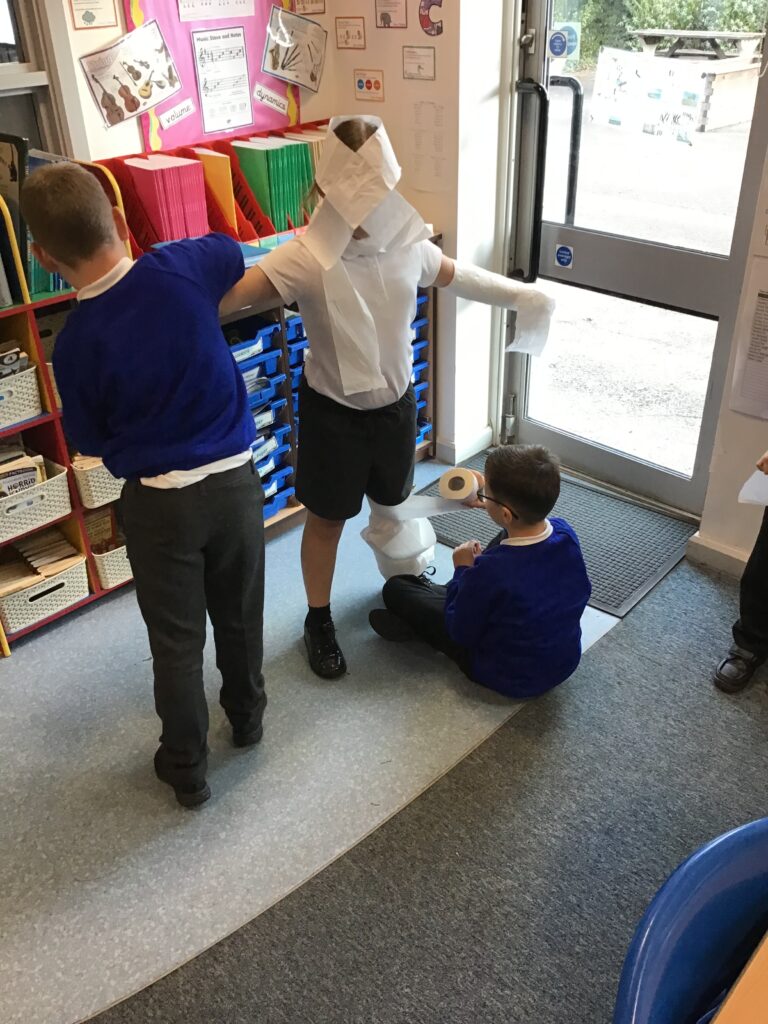 As part of our Ancient Egyptian topic, we have been learning about the process of mummification. The children found it very interesting! We even had a go at mummifying our friends.