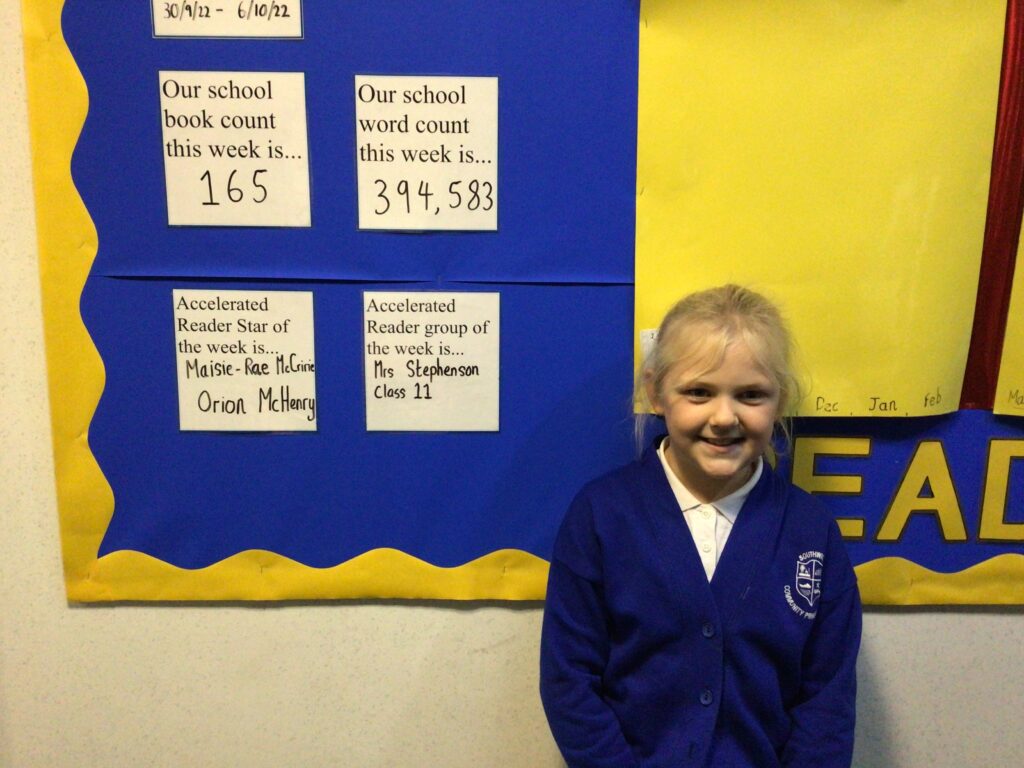 This week, Class 11 won the Accelerated Reader challenge as they read the most books in the whole school. Maisie McCririe was also a winner, reading more books than anyone else in the school. Well done Maisie!
