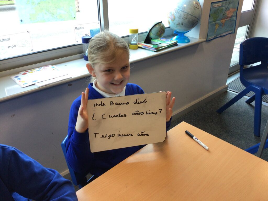 Year 4 have been practising their Spanish speaking and writing this afternoon. We have been working hard to embed the Spanish greetings and the children are very confident with these now so we have moved onto ages. The children have been learning how to ask ‘How old are you?’ and then to answer this question in Spanish. We discussed how words in Spanish are pronounced differently to how they may look. Take a look at our Spanish conversations.