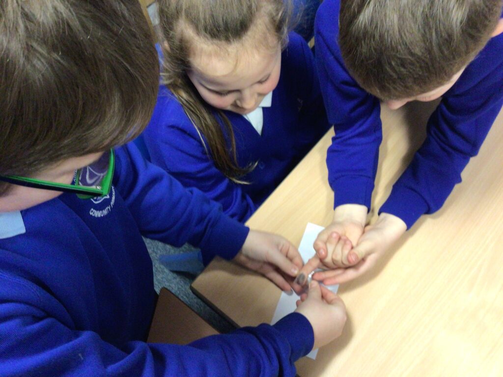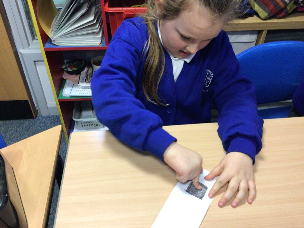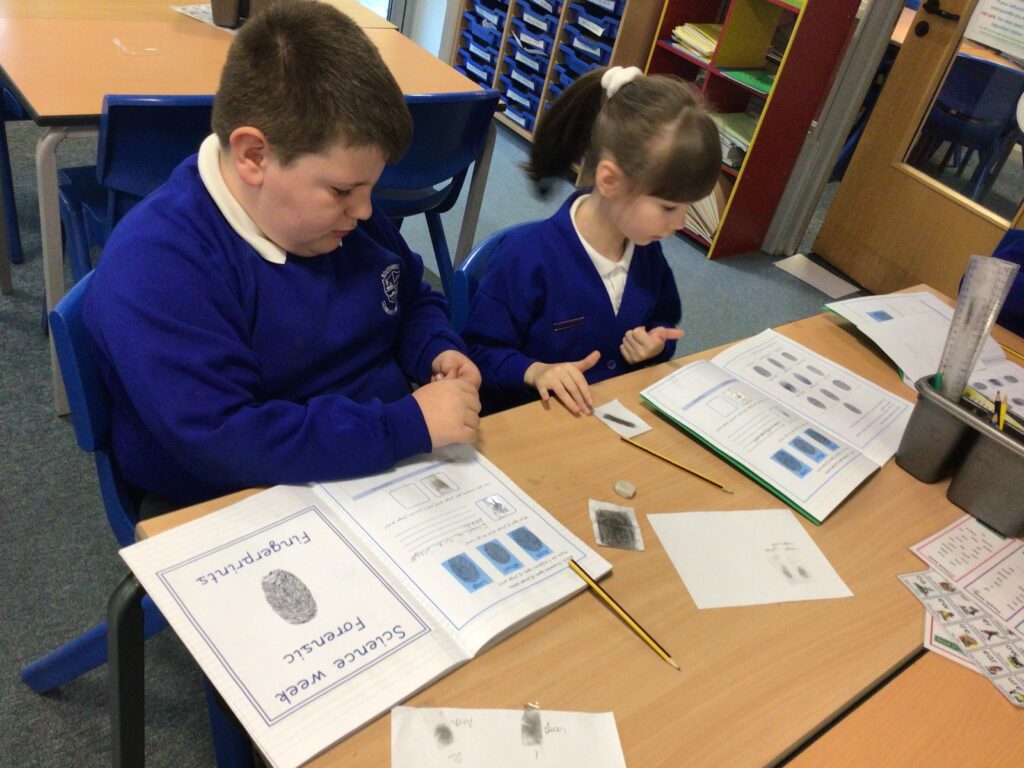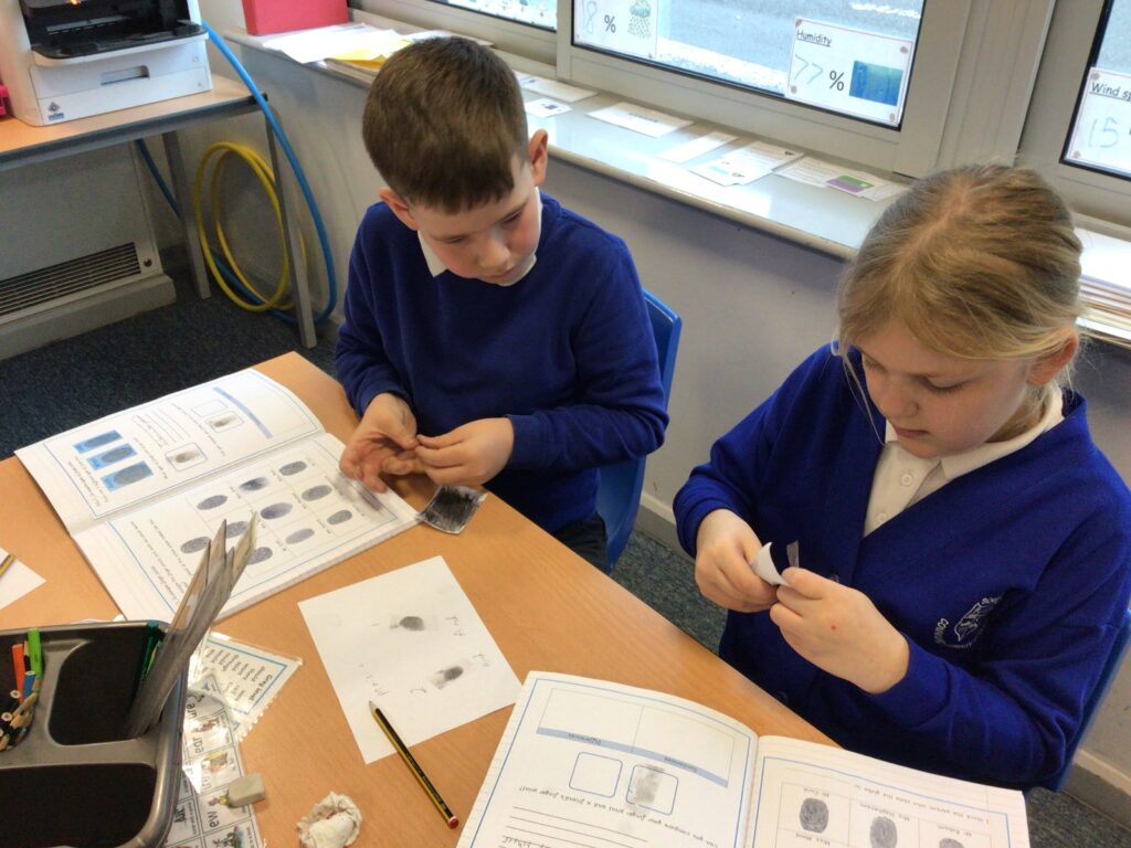 Year 4 are focusing on the finger print that was left behind by the thief. We have learned all about finger prints, including why and when they are used. Before investigating the finger prints, we read the various witness statements from the different suspects and then made a prediction about which member of staff we believed to be the thief.