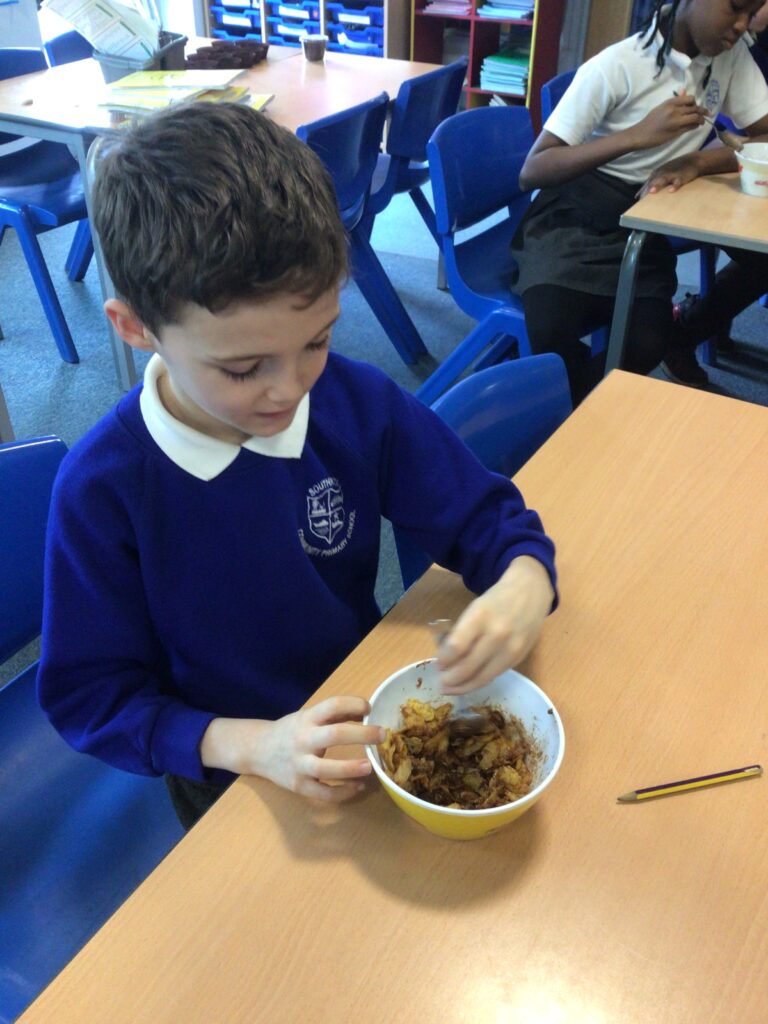 As part of our history topic, we made our very own Ancient Egyptian bread. We worked together to weight the ingredients and follow the recipe carefully. Some of our chose to flavour our bread with honey and/or dates. It was so much fun but very messy.