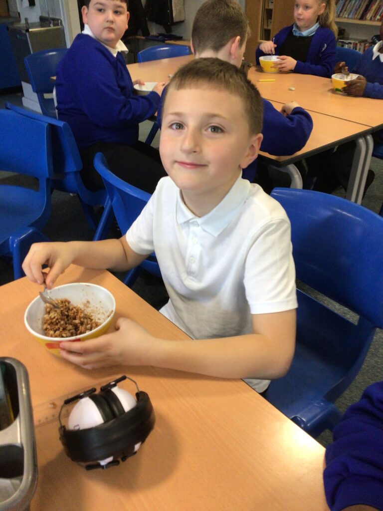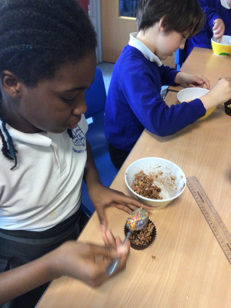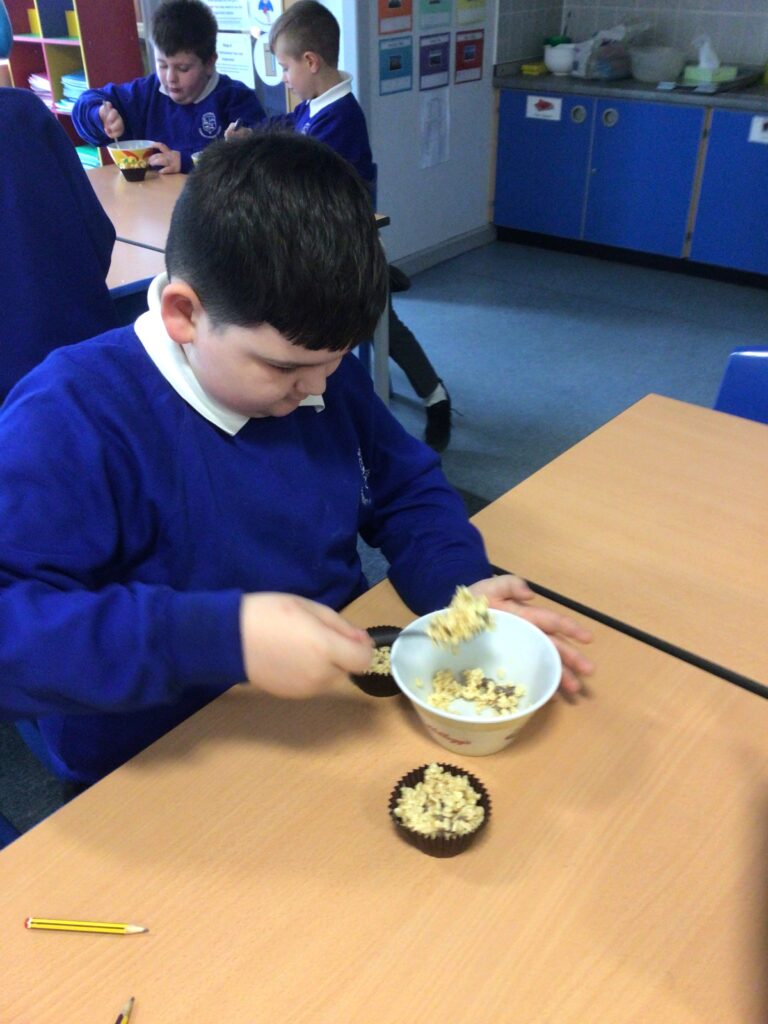 Mrs Stephenson’s literacy group have been completing a tasty project! They have designed their very own chocolate crispy cake and then written a persuasive advert to persuade people to buy their cake. They learnt all about what should be included within a persuasive advert and why. We then included these features and created our very own advert and packaging for our cakes.