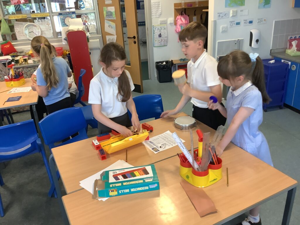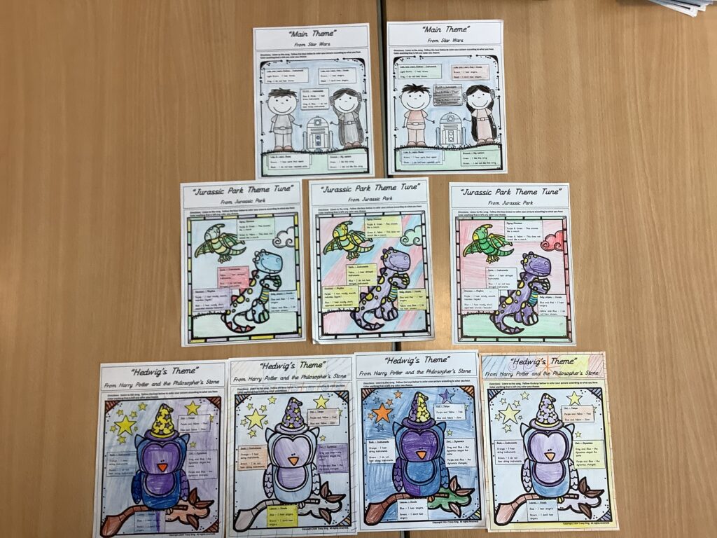 Year 4 learned about the modern day composer John Williams. He is not only a famous composer but a conductor and pianist too. Did you know he has been composing for over 70 years? We discovered that he has composed many movie scores over the years – many of which we recognised. He works in ‘leitmotifs’ which means themes. He assigns a musical score to different characters in movies, he sets the scene using music to create mystery, suspense, magic, love etc. We explored many pieces of his music, we listened and appraised, created emotion art focussing on his leitmotifs for Star Wars characters and discussed how the music changed and why. We then composed a musical rap assigning a leitmotif to the character names we used. Some of us also created a double page spread about him in Literacy. Here is some of the work we produced: