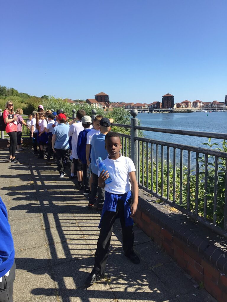 Today, Year 4 walked along the River Wear observing the structure. We have recently learned all about rivers; what they are, their structure and their uses. The children began their walk at Roker therefore they were able to observe the mouth of the river. As we walked on past The National Glass Centre we were also able to observe meanders.