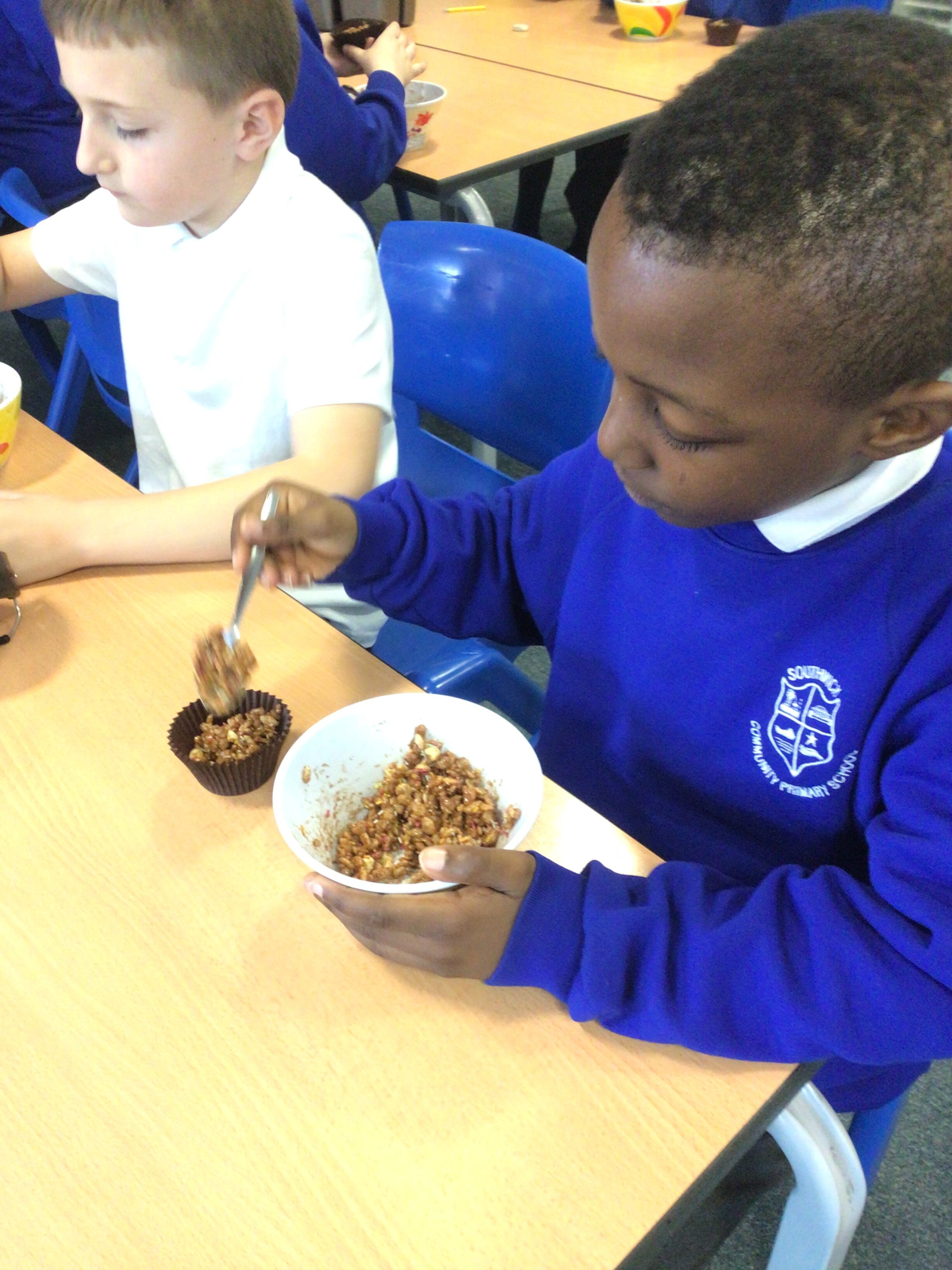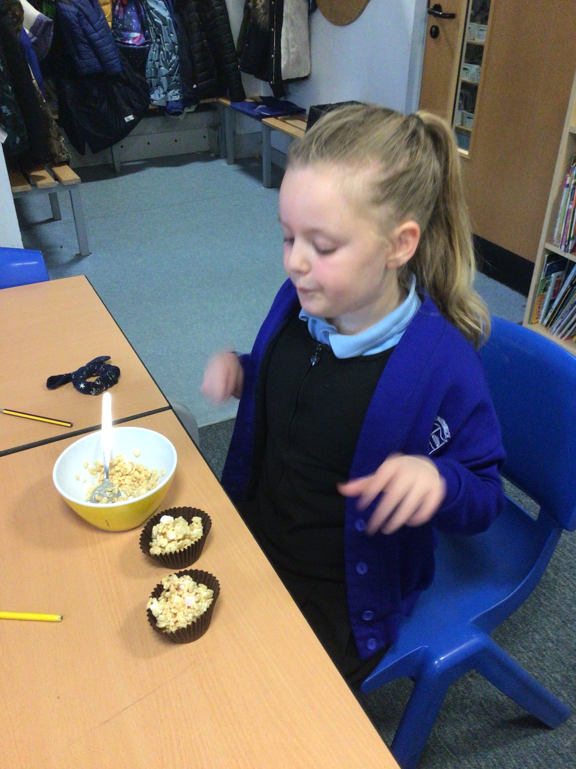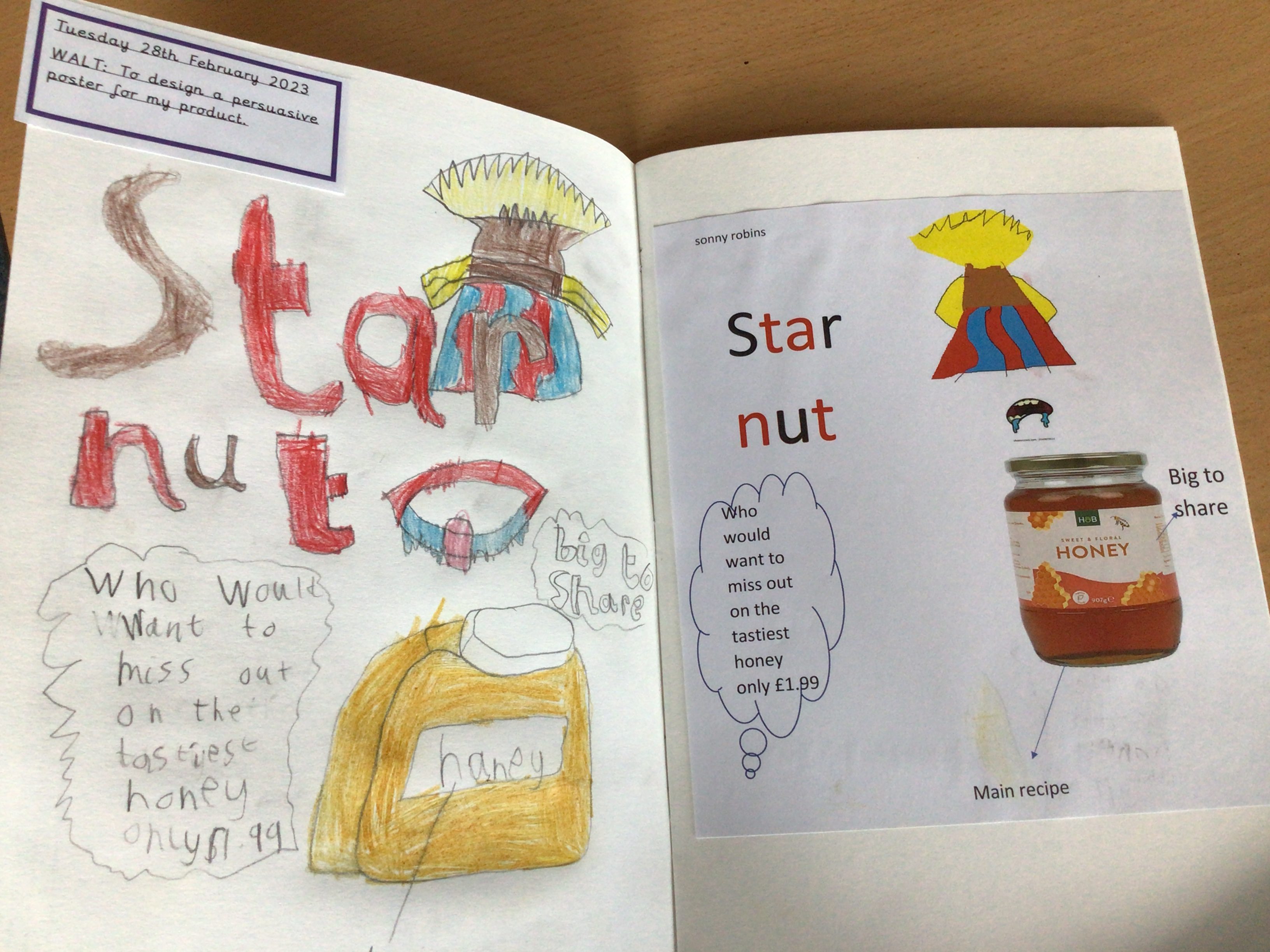 Mrs Stephenson’s literacy group have been completing a tasty project! They have designed their very own chocolate crispy cake and then written a persuasive advert to persuade people to buy their cake. They learnt all about what should be included within a persuasive advert and why. We then included these features and created our very own advert and packaging for our cakes.