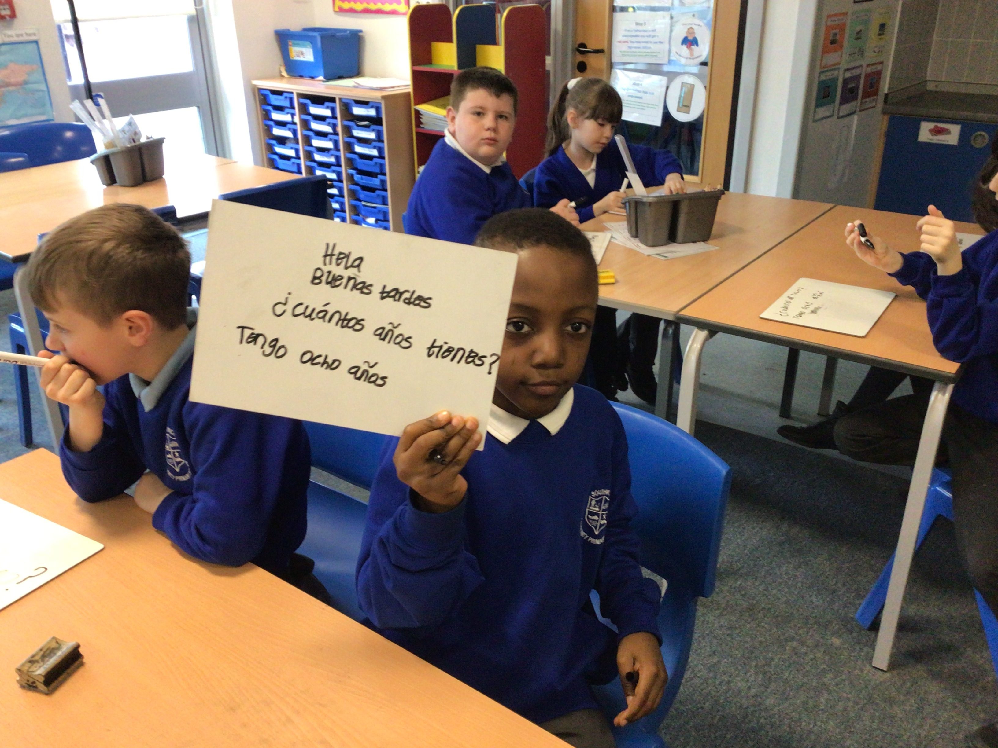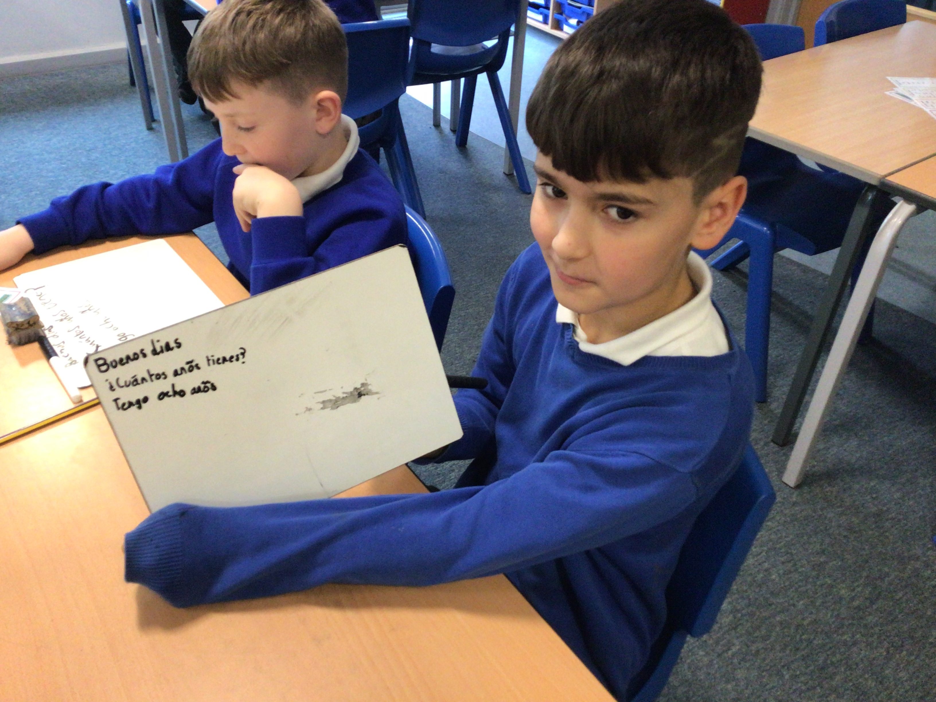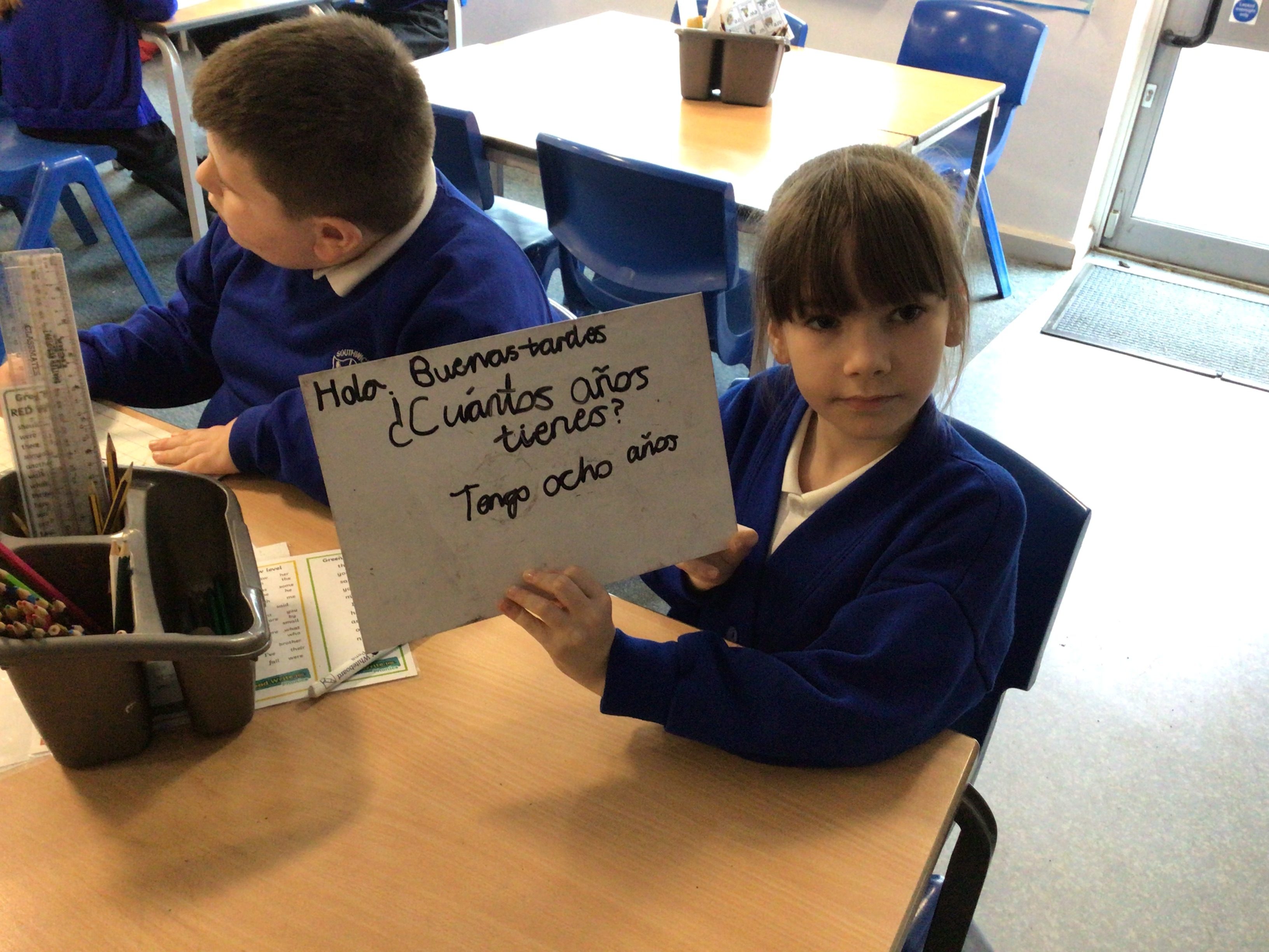 Year 4 have been practising their Spanish speaking and writing this afternoon. We have been working hard to embed the Spanish greetings and the children are very confident with these now so we have moved onto ages. The children have been learning how to ask ‘How old are you?’ and then to answer this question in Spanish. We discussed how words in Spanish are pronounced differently to how they may look. Take a look at our Spanish conversations.