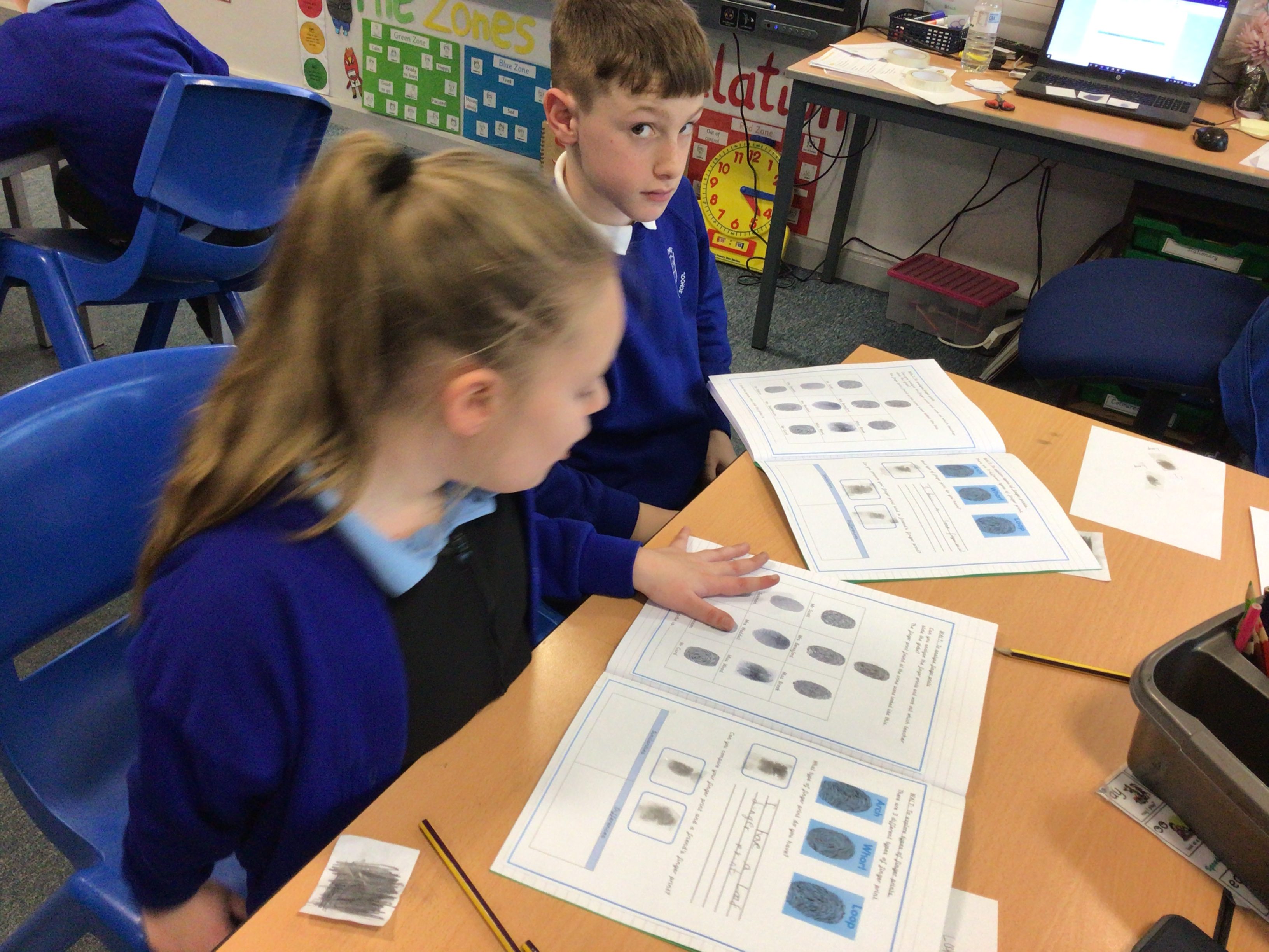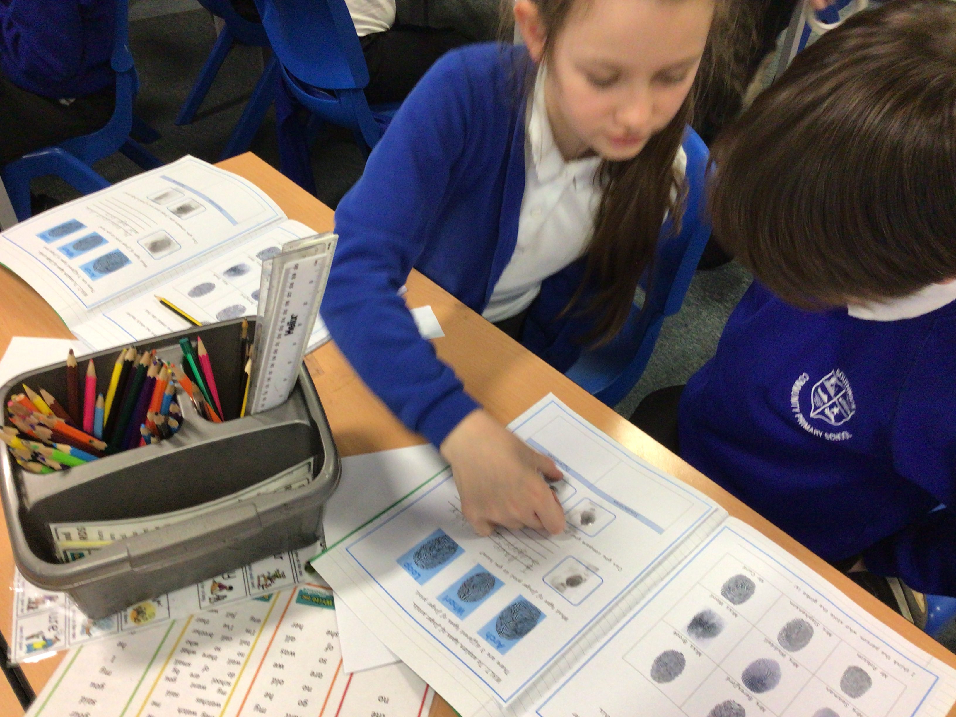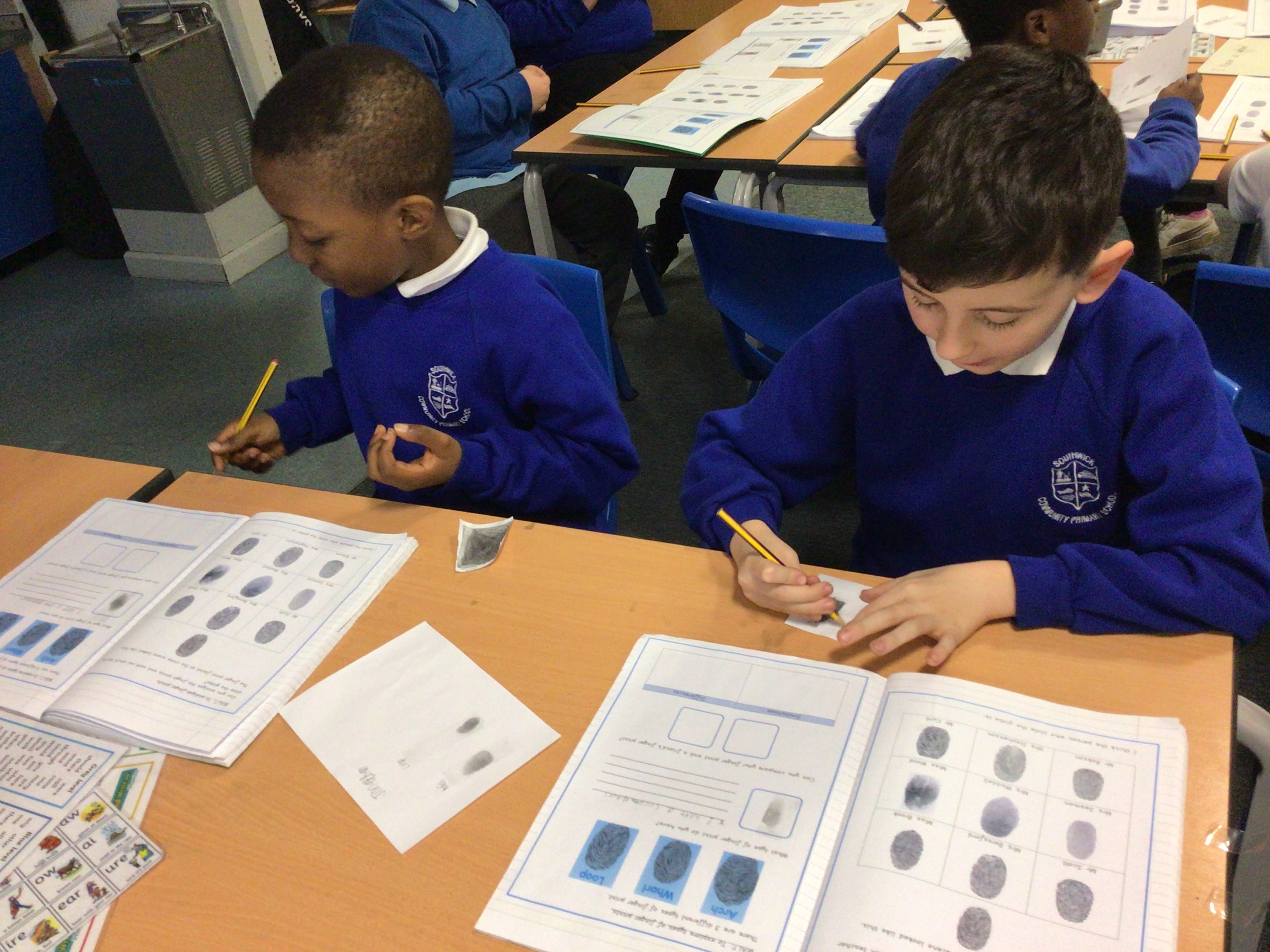 Year 4 are focusing on the finger print that was left behind by the thief. We have learned all about finger prints, including why and when they are used. Before investigating the finger prints, we read the various witness statements from the different suspects and then made a prediction about which member of staff we believed to be the thief.