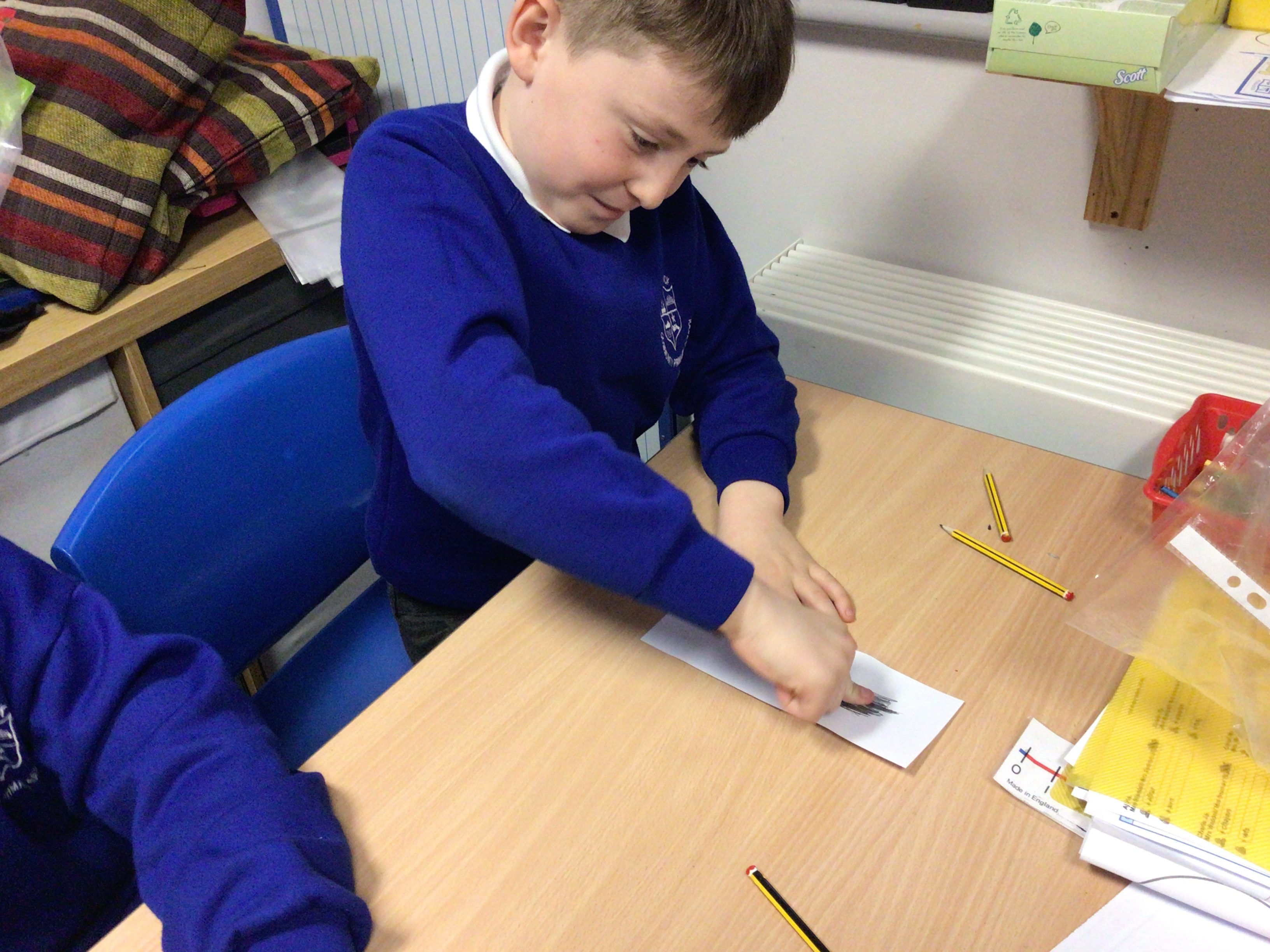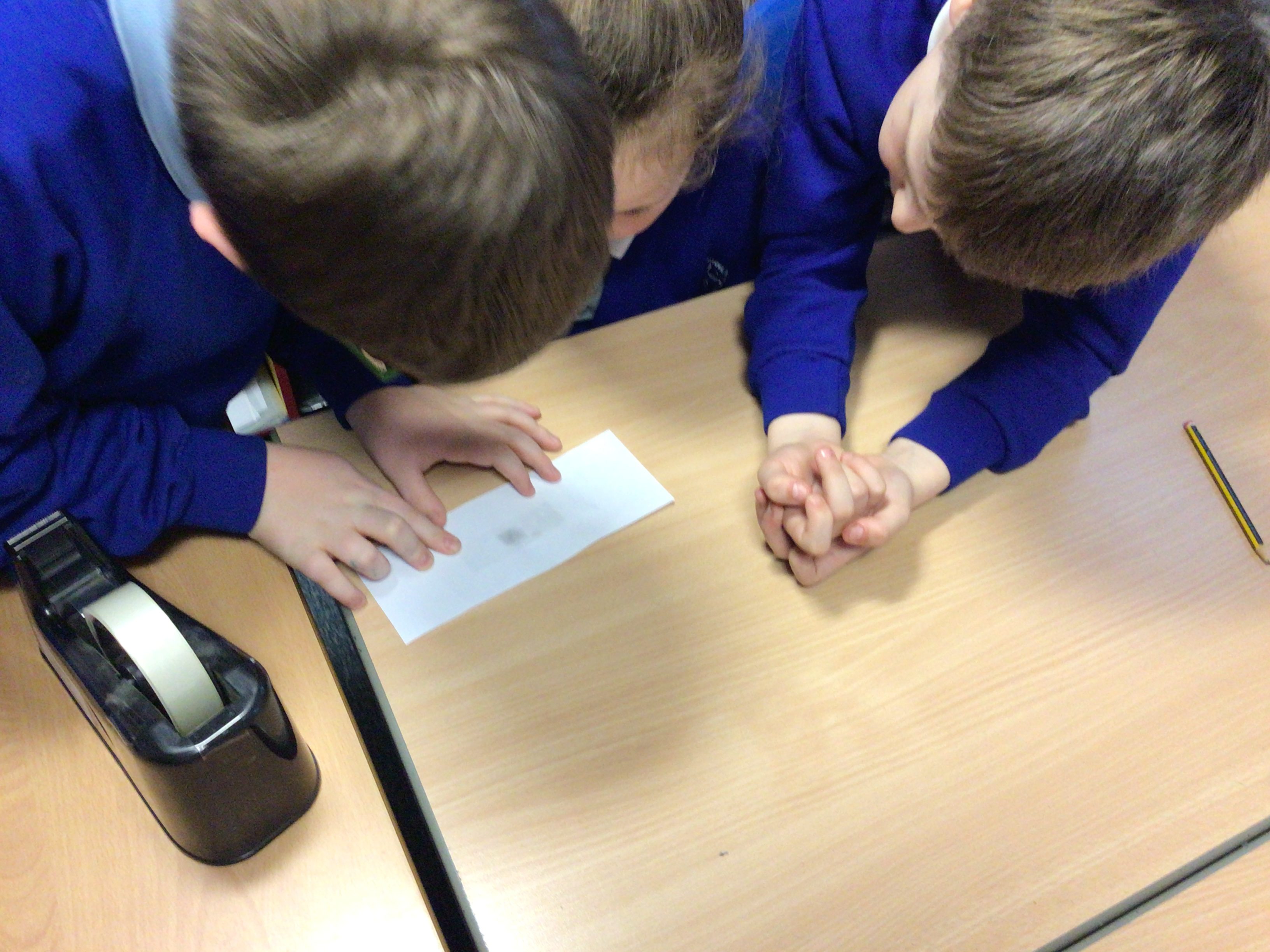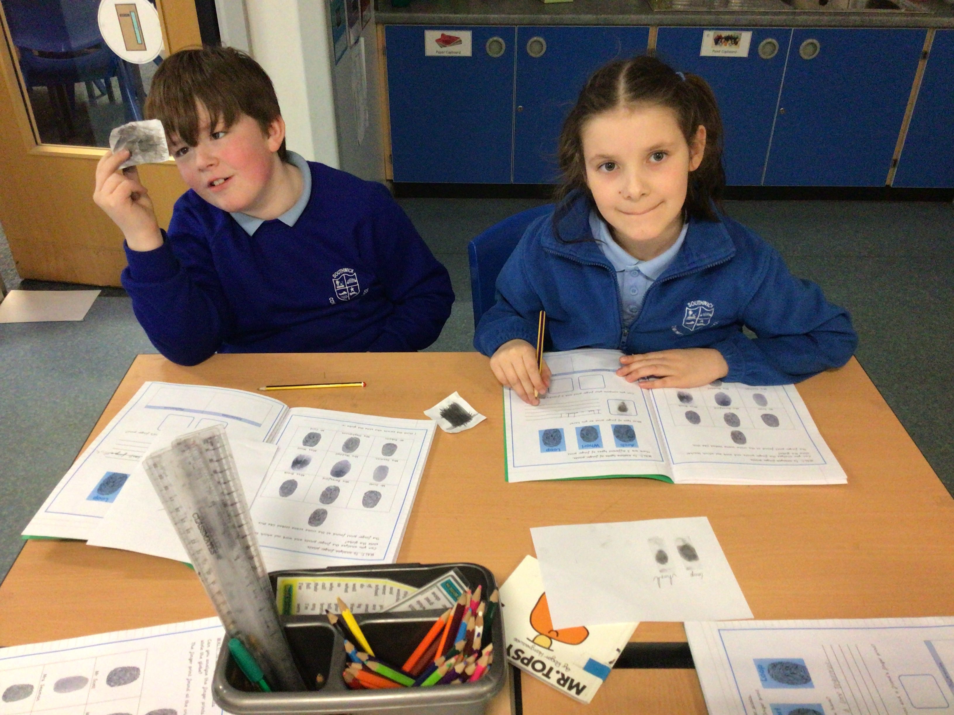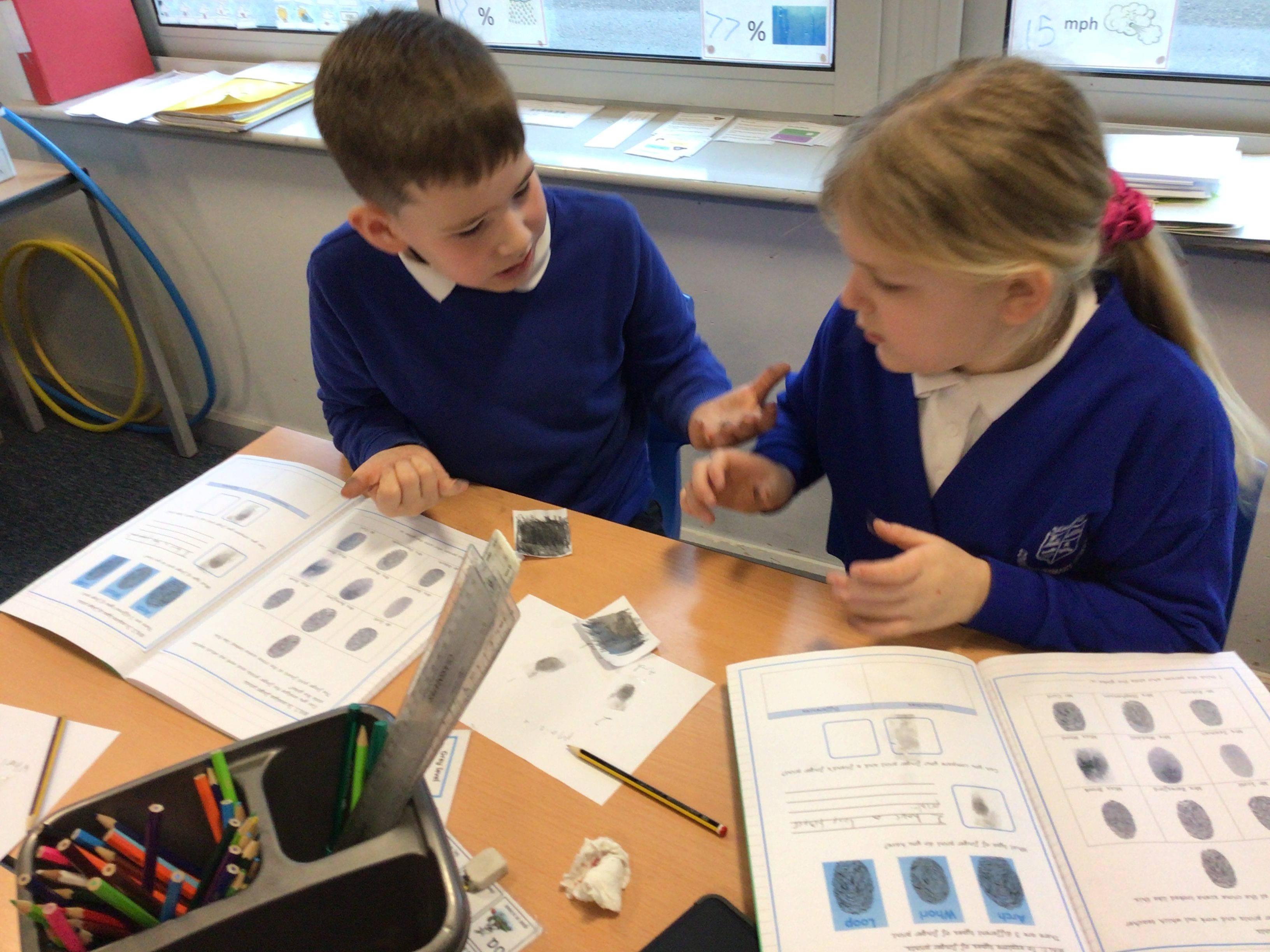 Year 4 are focusing on the finger print that was left behind by the thief. We have learned all about finger prints, including why and when they are used. Before investigating the finger prints, we read the various witness statements from the different suspects and then made a prediction about which member of staff we believed to be the thief.