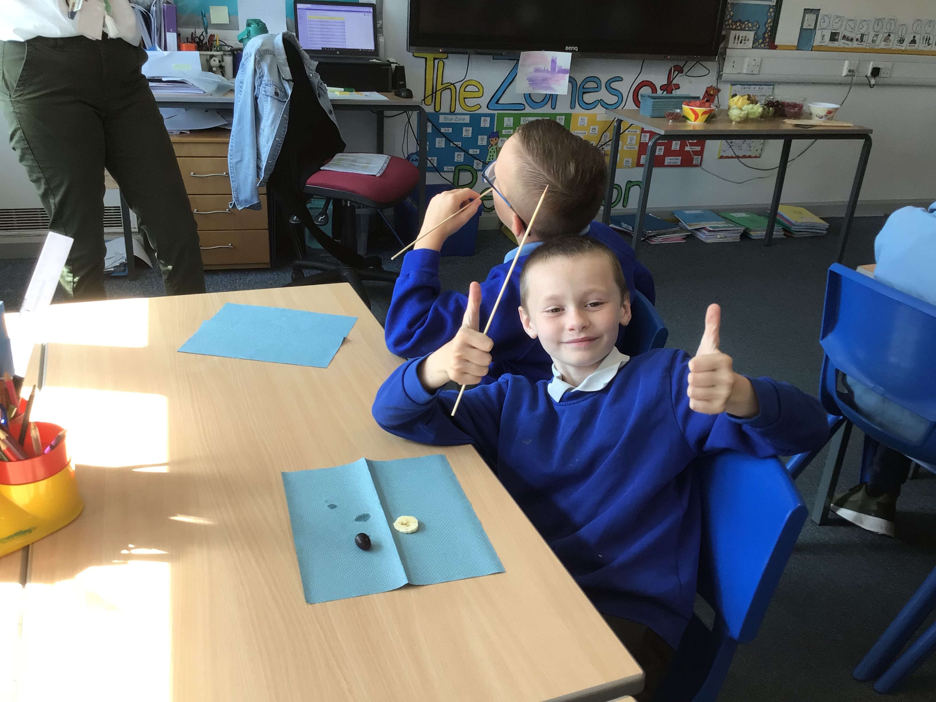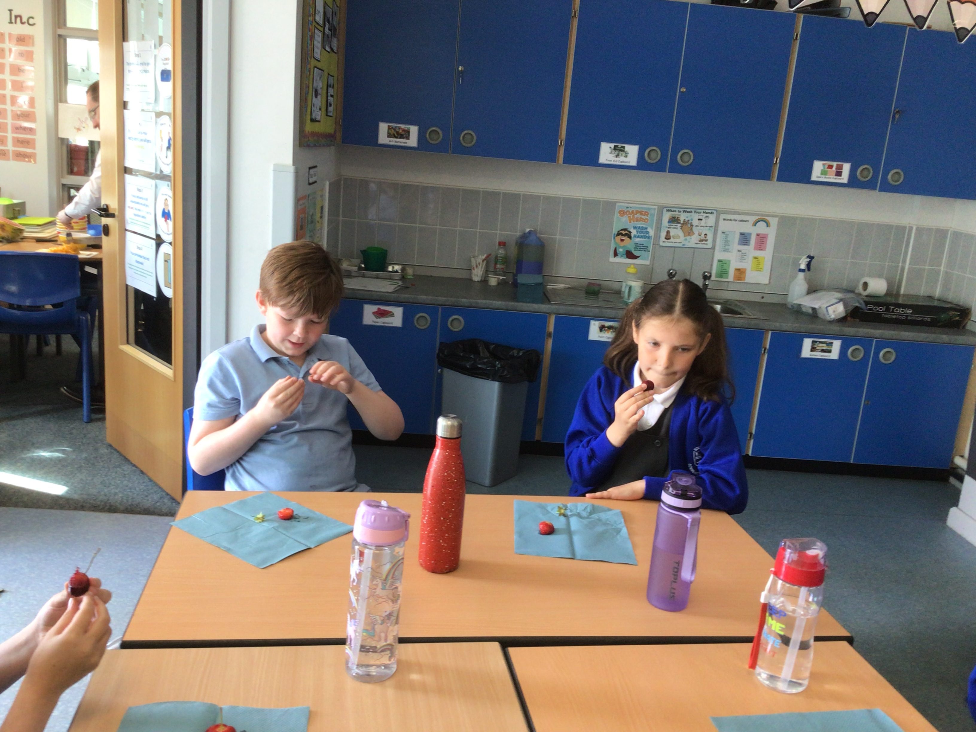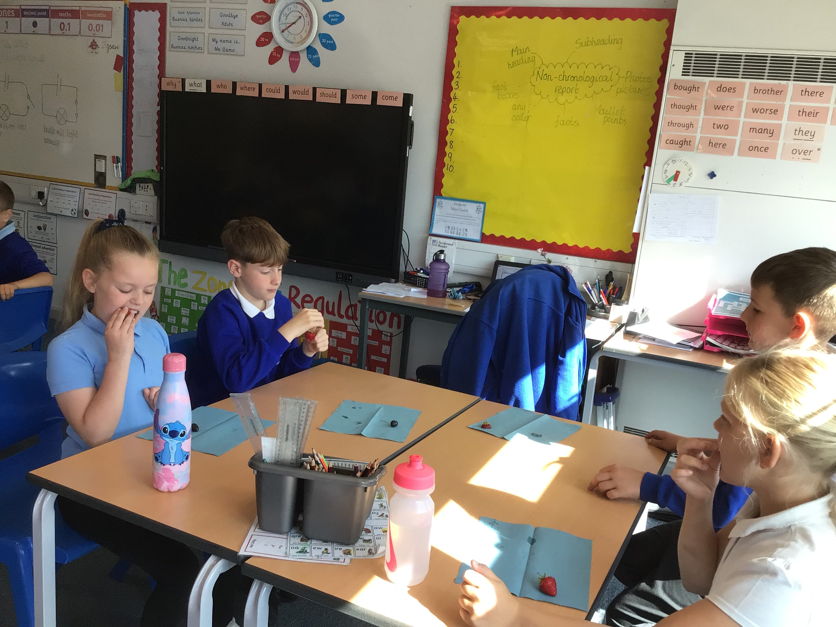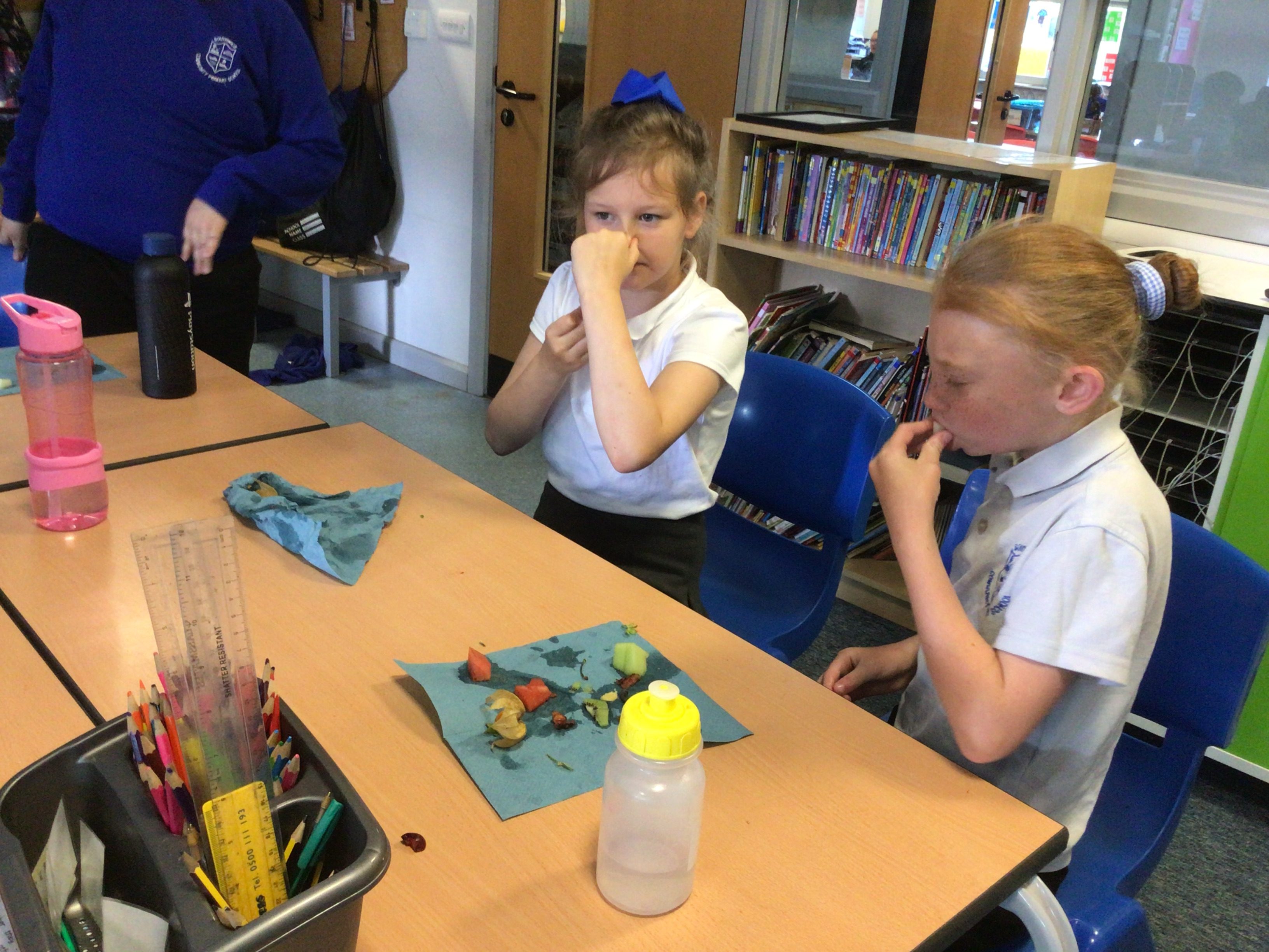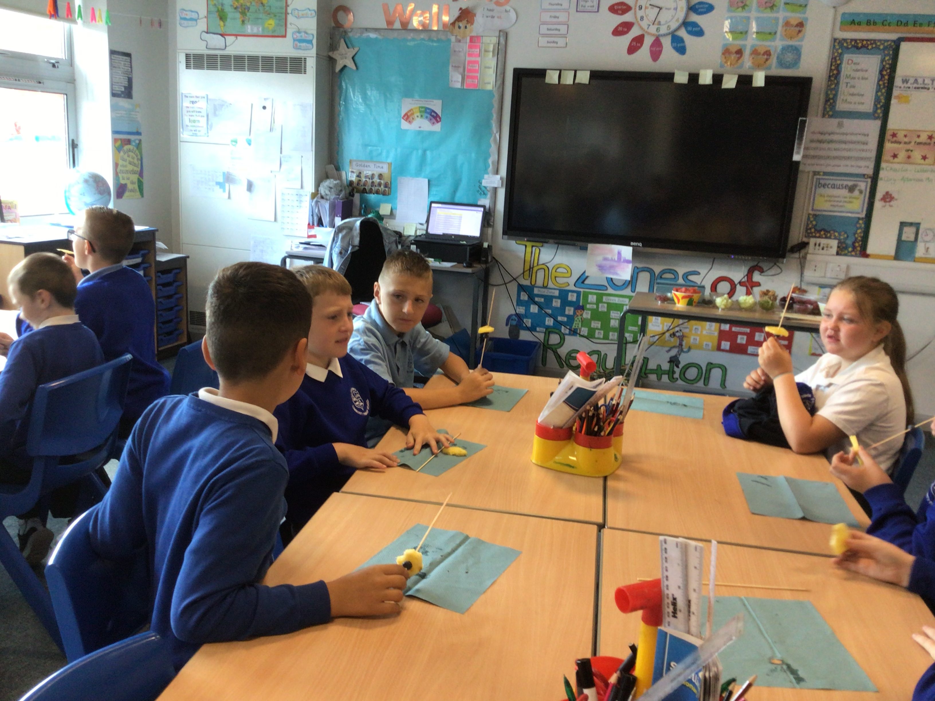 Today, we applied our mummification knowledge in another context. We are investigating the effectiveness of mummification using tomatoes. We mummified one tomato using salt and toilet roll but didn’t mummify the other. We are going to observe the tomatoes over the next few weeks to see what happens.