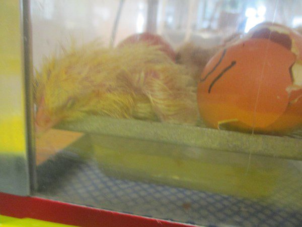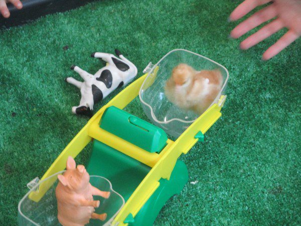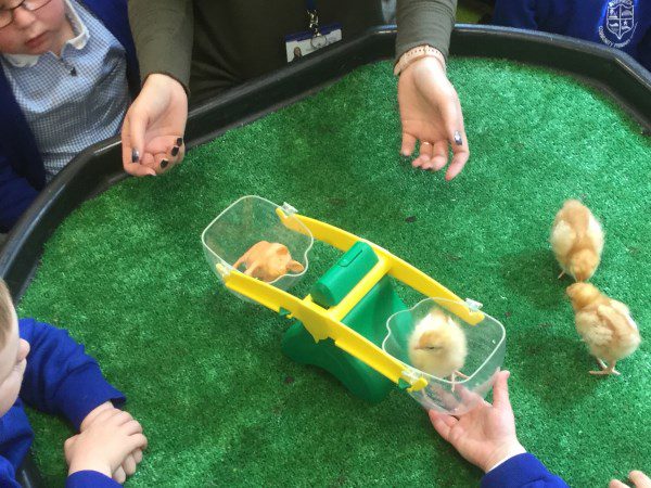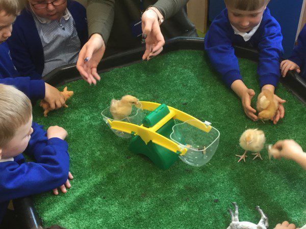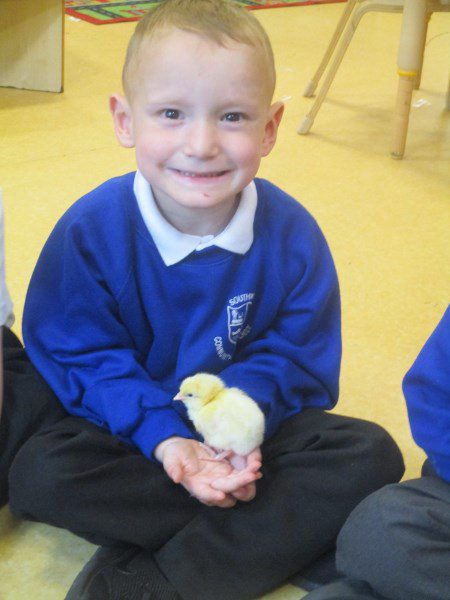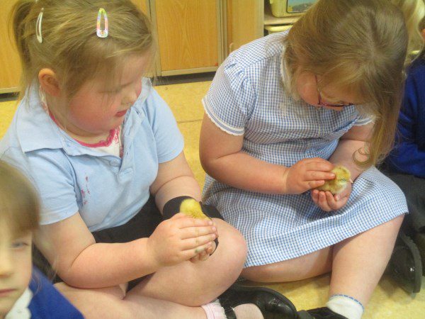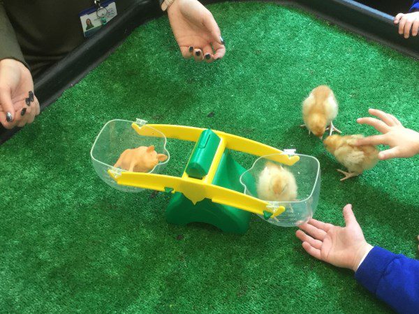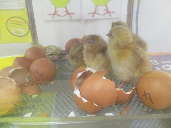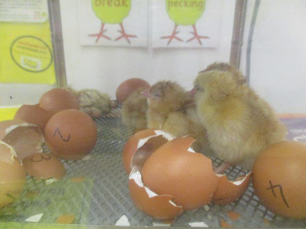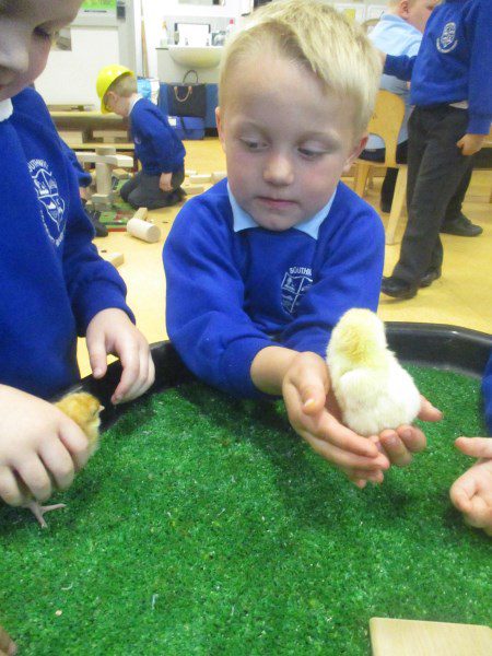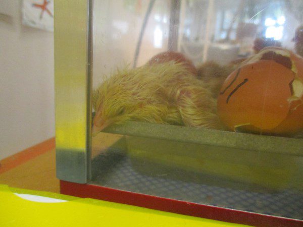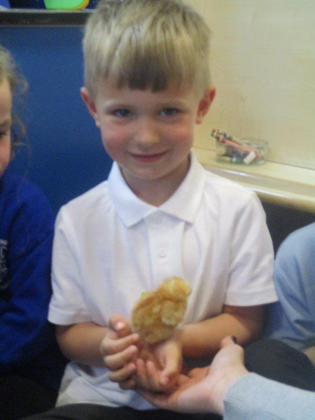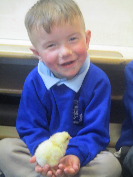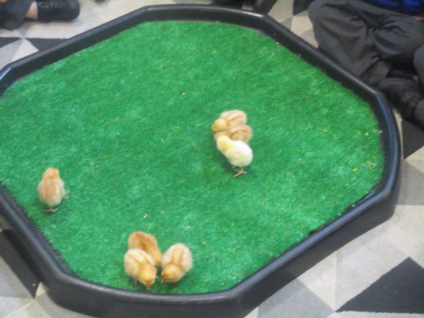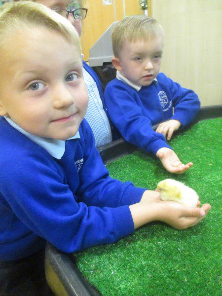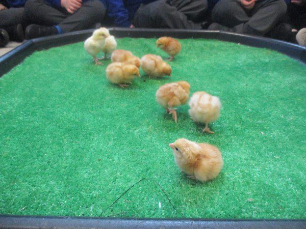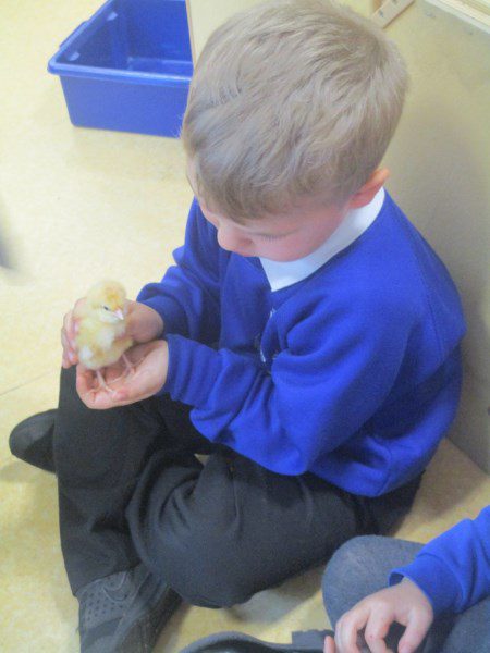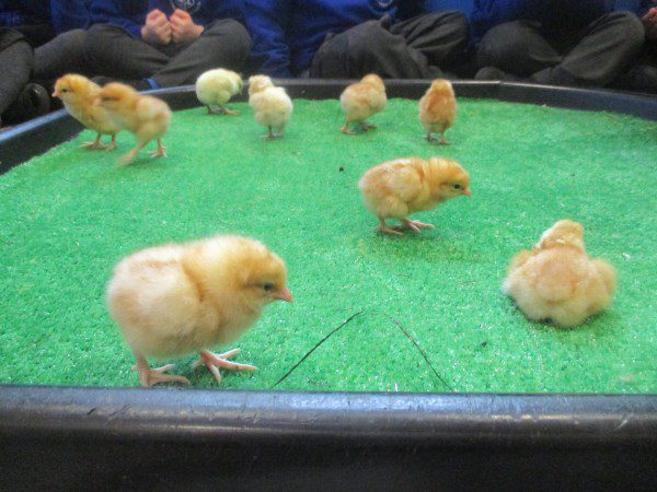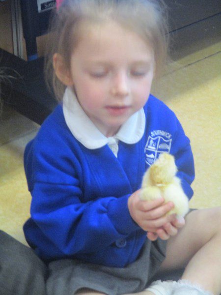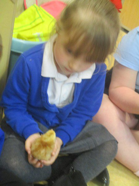 The children were shocked to see how small and tired they were when they were first born– so they took it in turns to take care of baby chicks.