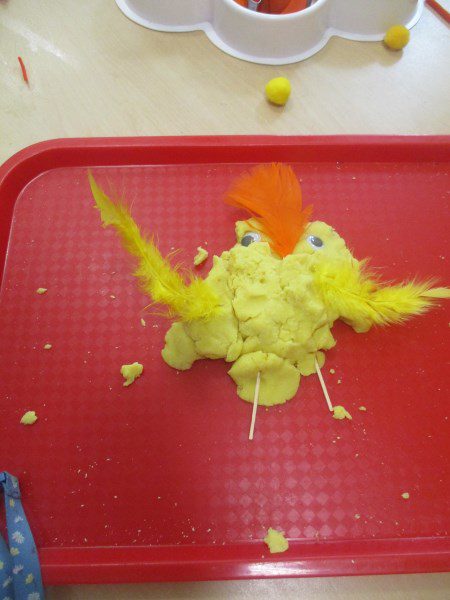 The children also painted their own chicks and used the dough to make some chicks. The children took part in lots chick counting activities too.