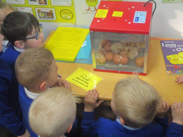 Nursery have had a really busy few weeks which began with the arrival of some eggs. The children were immediately enthused and couldn’t wait to see what popped out.