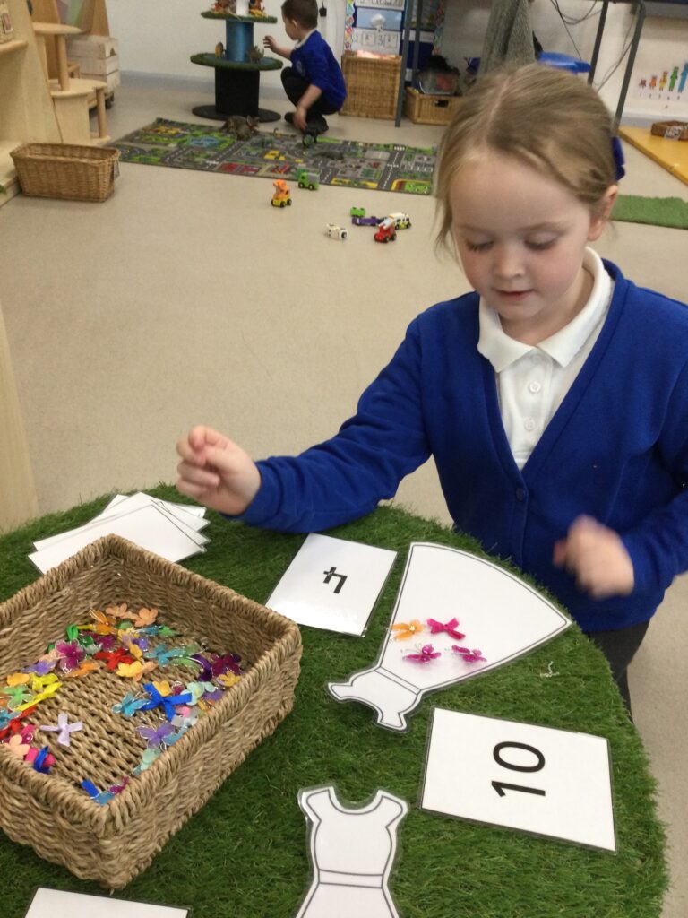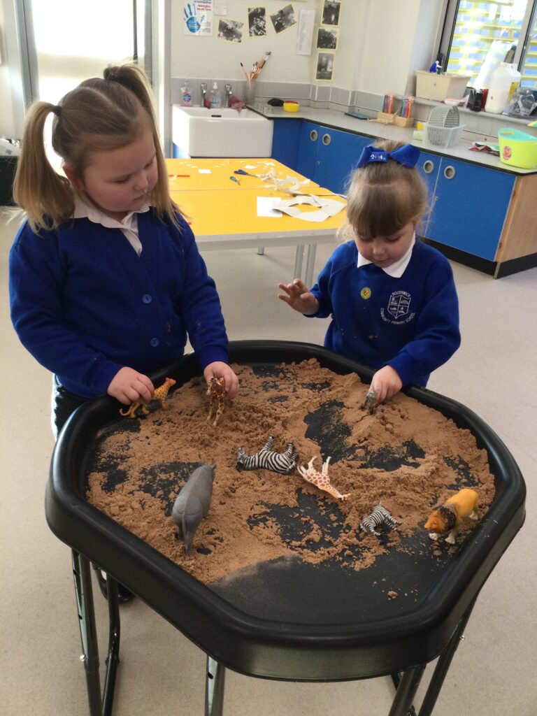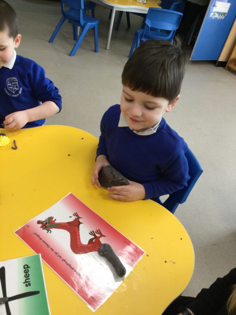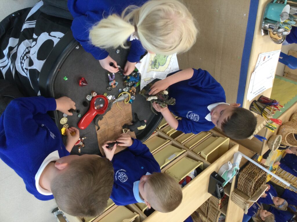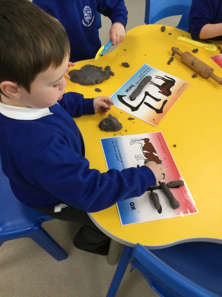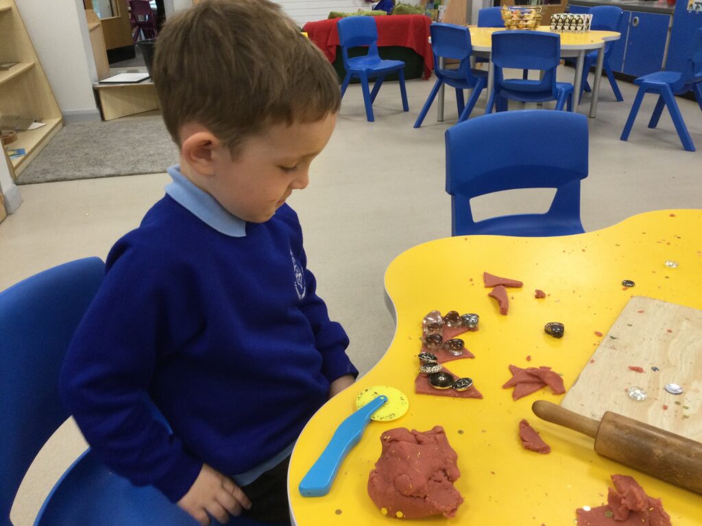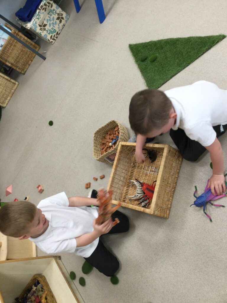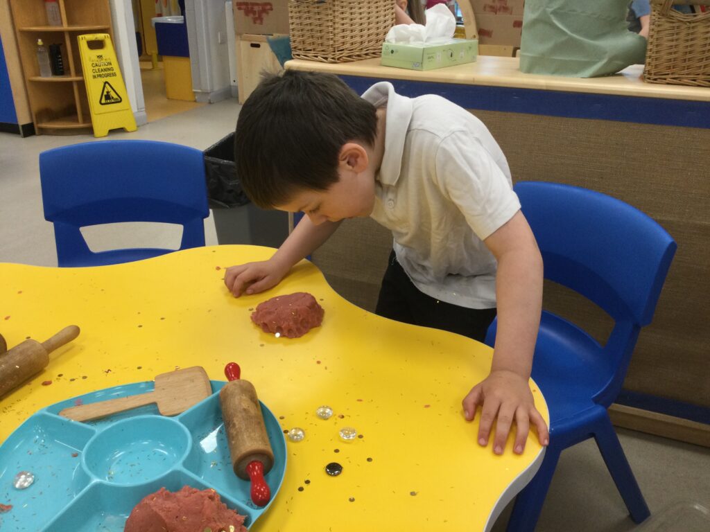 In Reception we have been learning about Dinosaurs. We have been learning about the different kind of dinosaurs that existed and researching which dinosaurs were Carnivores and which were Herbivores. We have been exploring and searching for dinosaur fossils, using the playdough to make our own dinosaurs and working on our counting skills and number recognition in the maths area. We have been playing with the dinosaurs in the small world area and exploring artifacts in the understanding the world area.