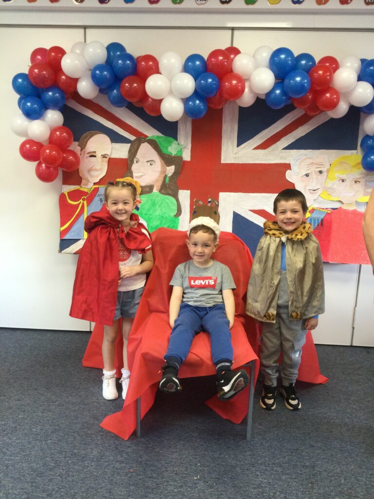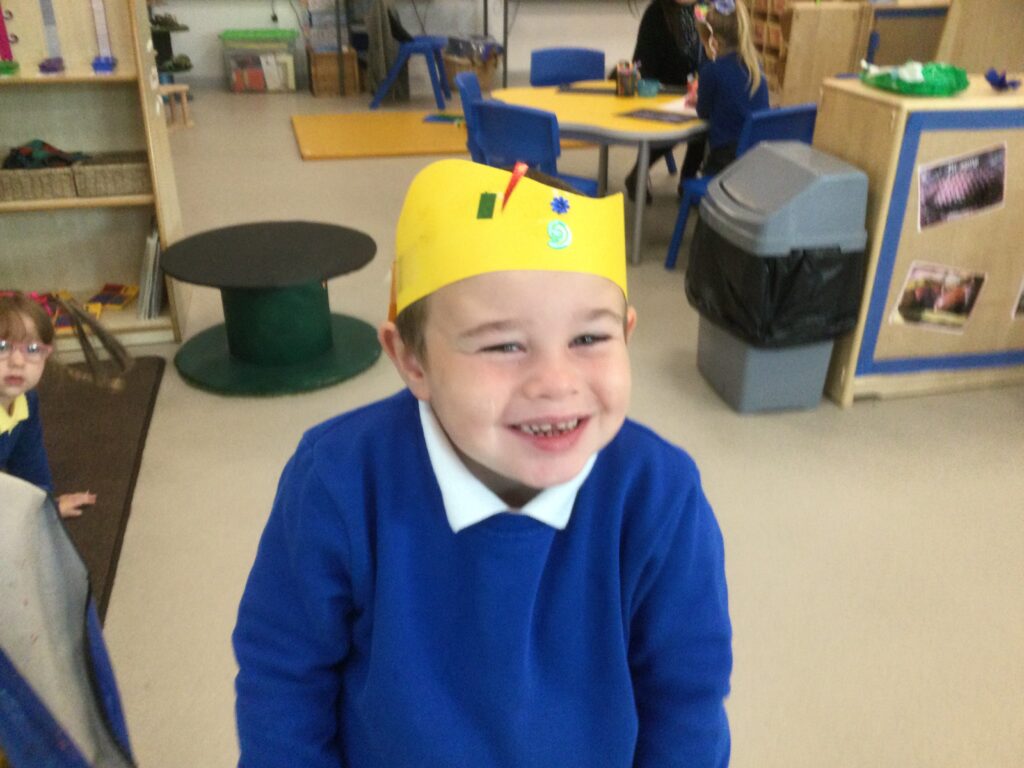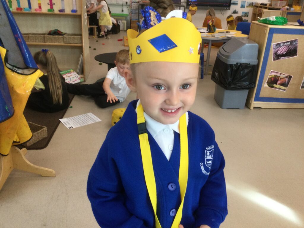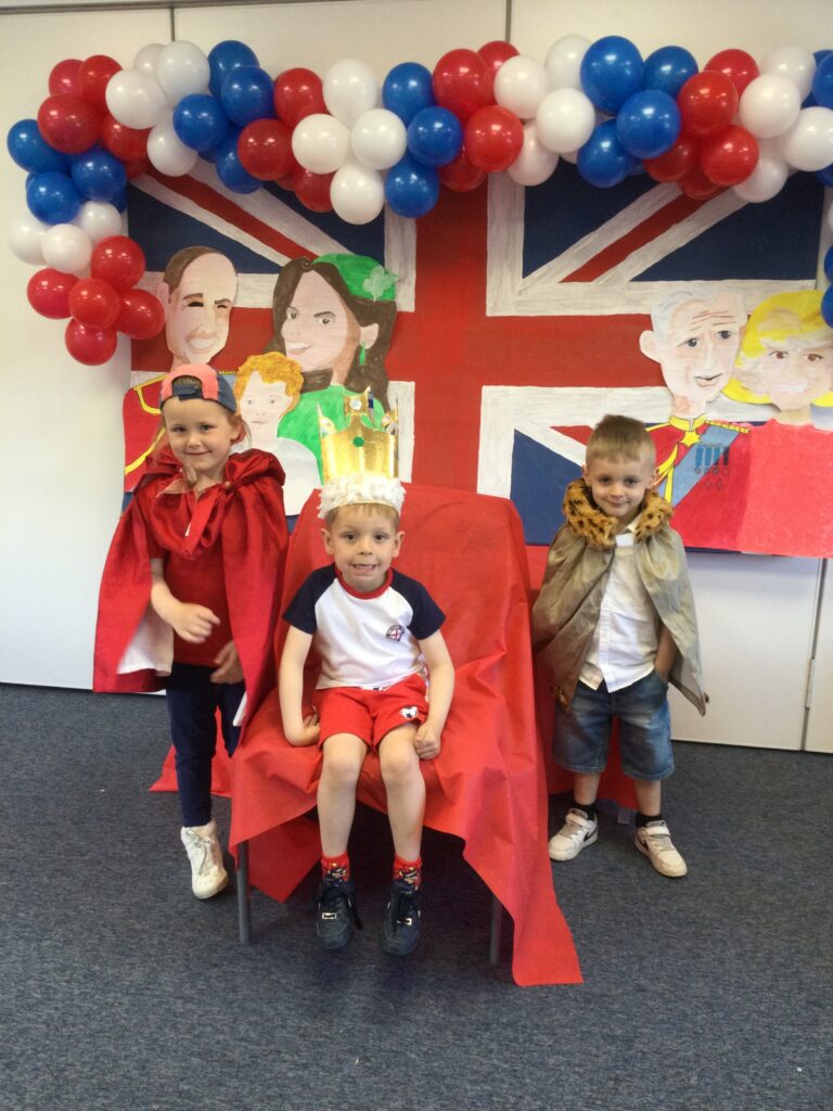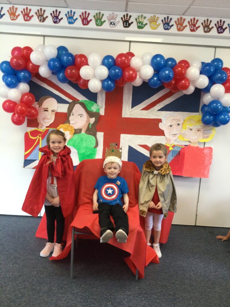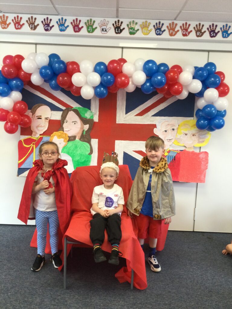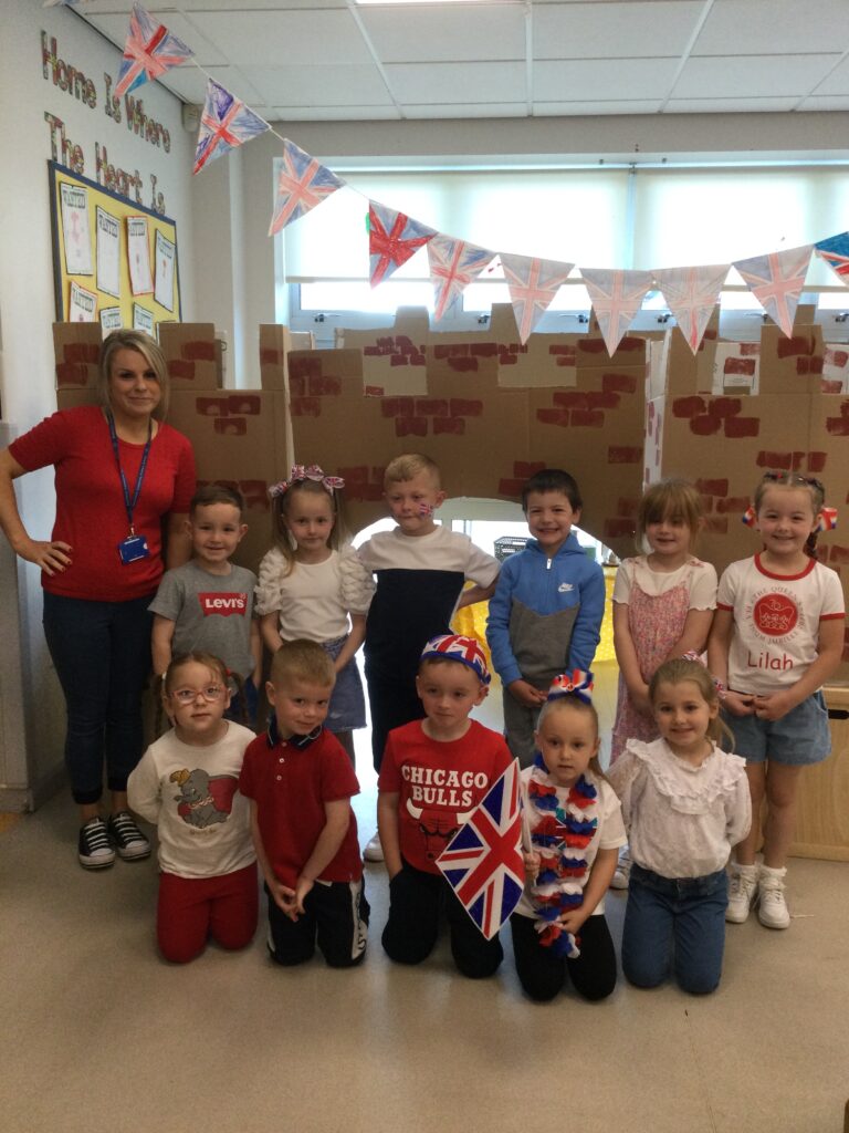 In Reception we have been learning all about the Platinum Jubilee and preparing for the upcoming celebration. We have made and turned our role play area into a royal castle. We have been dressing up as royalty and using this to inspire our role play narrative. We have also been learning all about the Queen and her role as Queen. We have researched and learned all about the history of the Queen and her family, and have also been looking at money and how the Queen face is present on this. We have made flags of the united Kingdom to hold and wave at our Jubilee party. We have also designed and made our very own crowns, paper chains and bunting which we have decorated our classroom with. Outside we have decorated our fence by weaving red , blue and white ribbon to represent the colours of the United kingdom. We have also used stamps to create portraits of the Queen, using our cutting skills to create these. In the construction area we have been using the resources to build models of castles, we have also been doing this in the malleable area using the playdough to create models of crowns, Buckingham Palace and Windsor Castle.