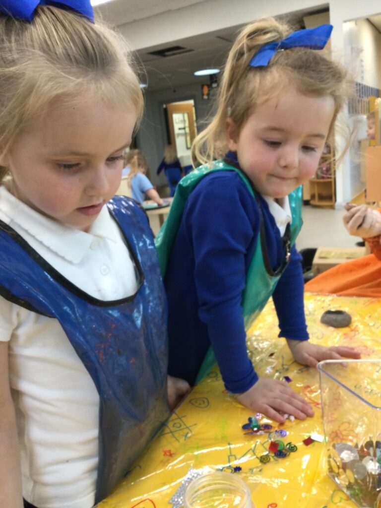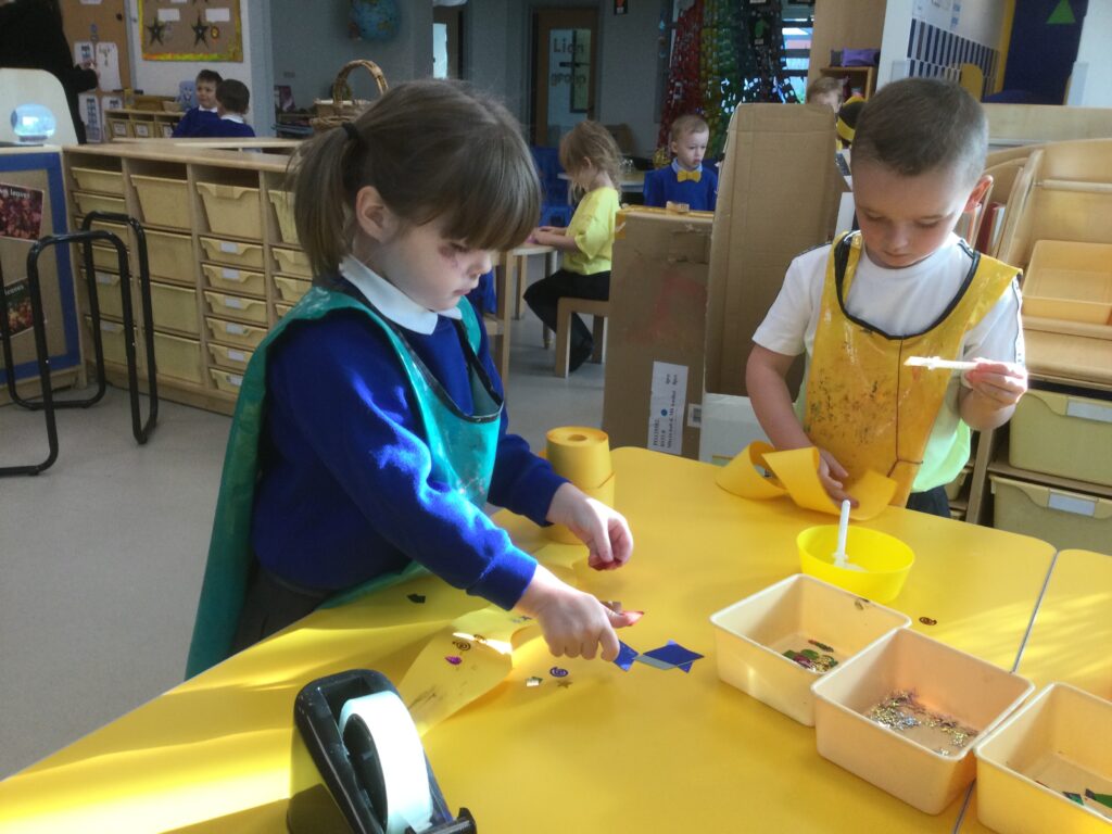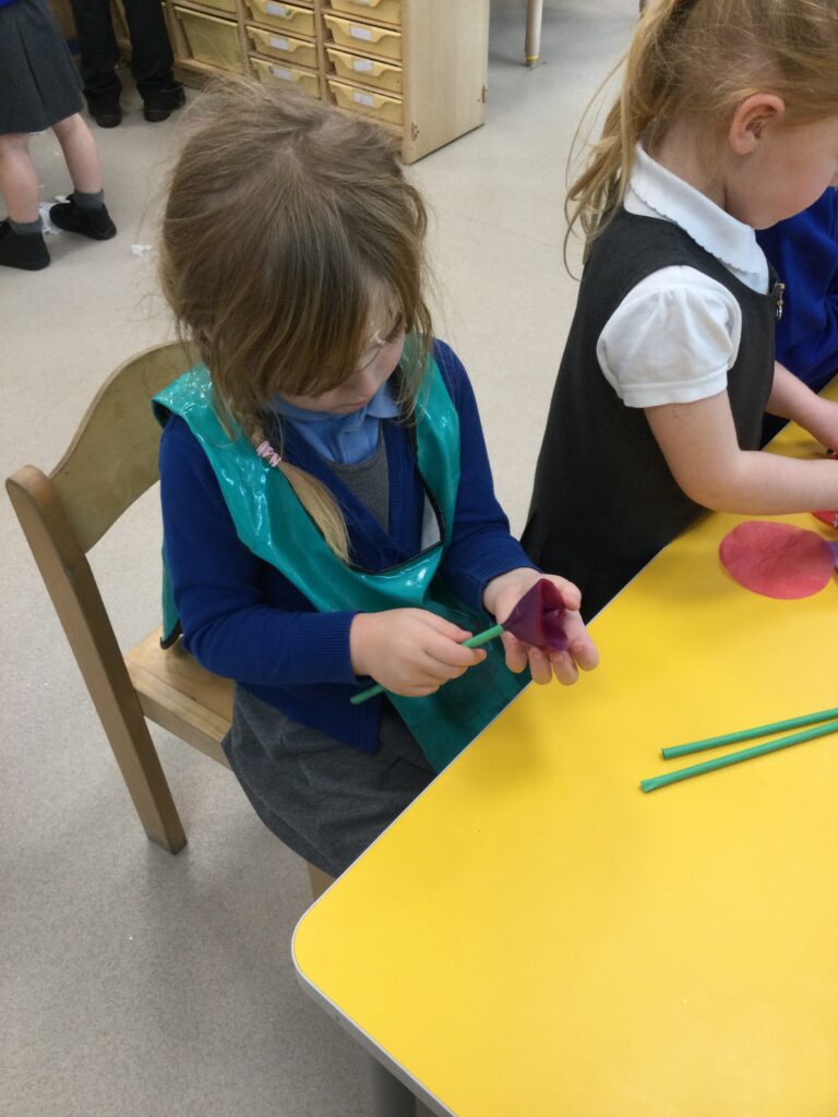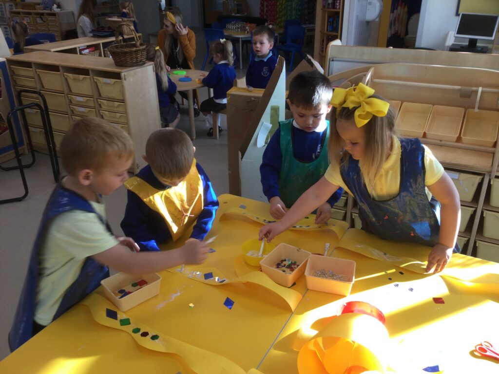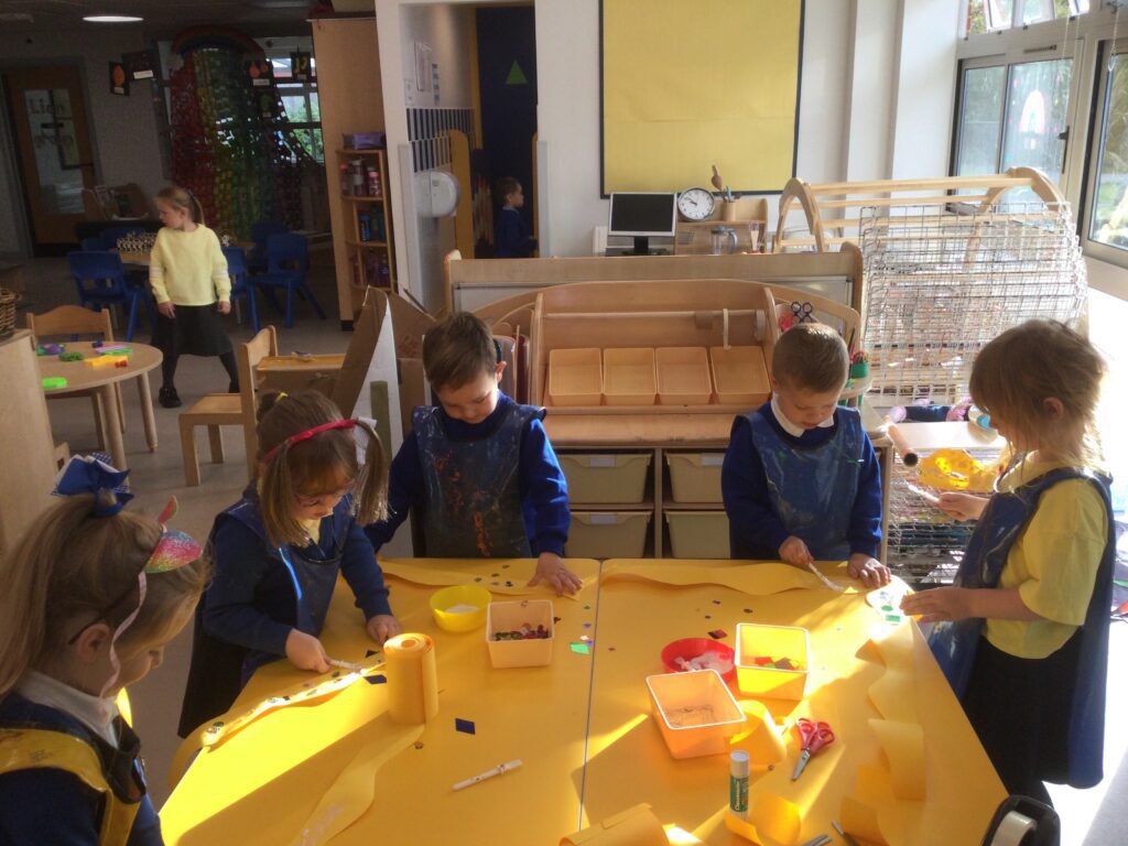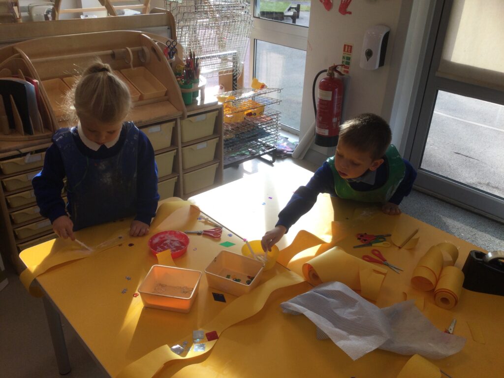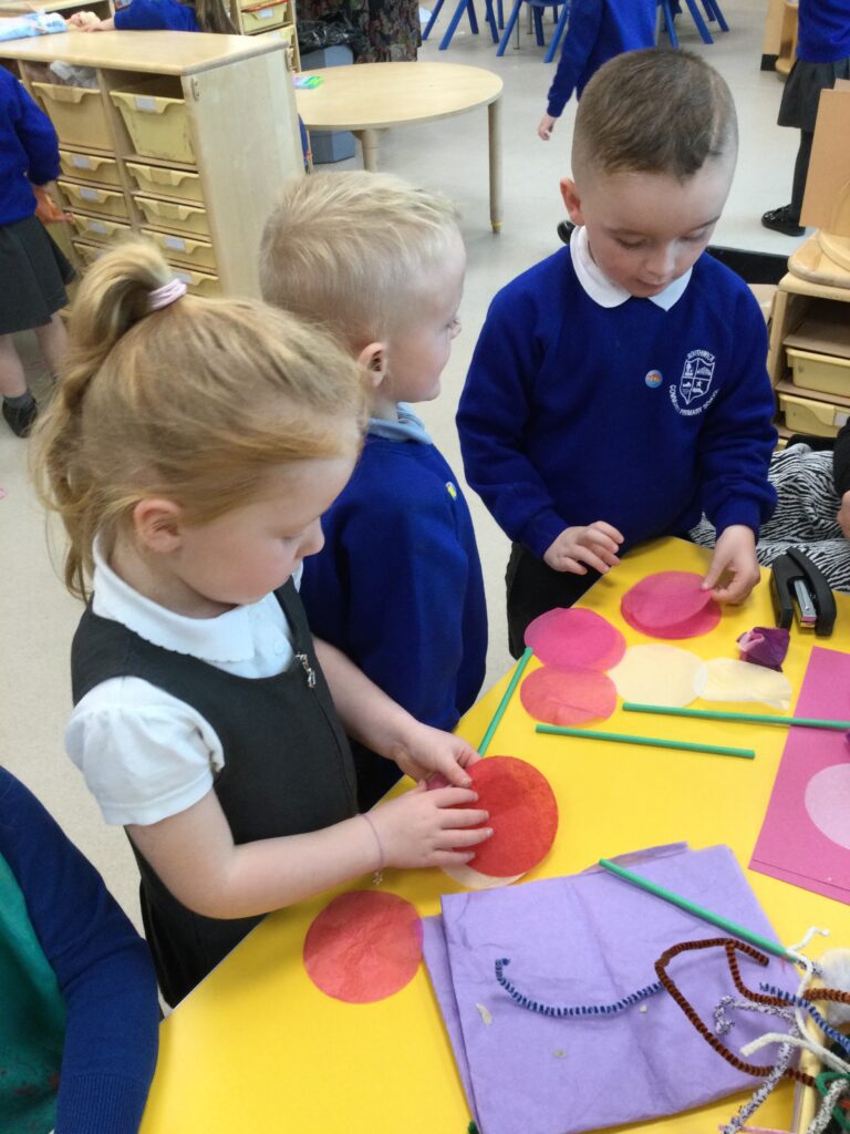 This week we have been learning all about Hindu weddings and traditions. We watched video clips of different Hindu weddings, read books, and learned lots of new facts in topic groups. In the creative area we made our own flowers using different materials. We looked at images of a range of flowers to inspire our work and then used these flowers to decorate our role play area arch and turn it into a canopy of flowers , as we learned this is a key tradition of a Hindu wedding. Once our Canopy was complete we wore Saree’s and traditional Hindu wedding clothes to act out our own Hindu wedding. In the malleable area we manipulated the play dough to create,decorate and design our own Hindu wedding cake’s whilst looking and comparing how they are similar and different to Christian wedding cakes. We also designed,decorated and drew our own Mehndi patterns as we learned Mehndi parties are a key tradition that a Hindu bride takes part in. We explored real Hindu wedding artifacts including traditional wedding clothing.