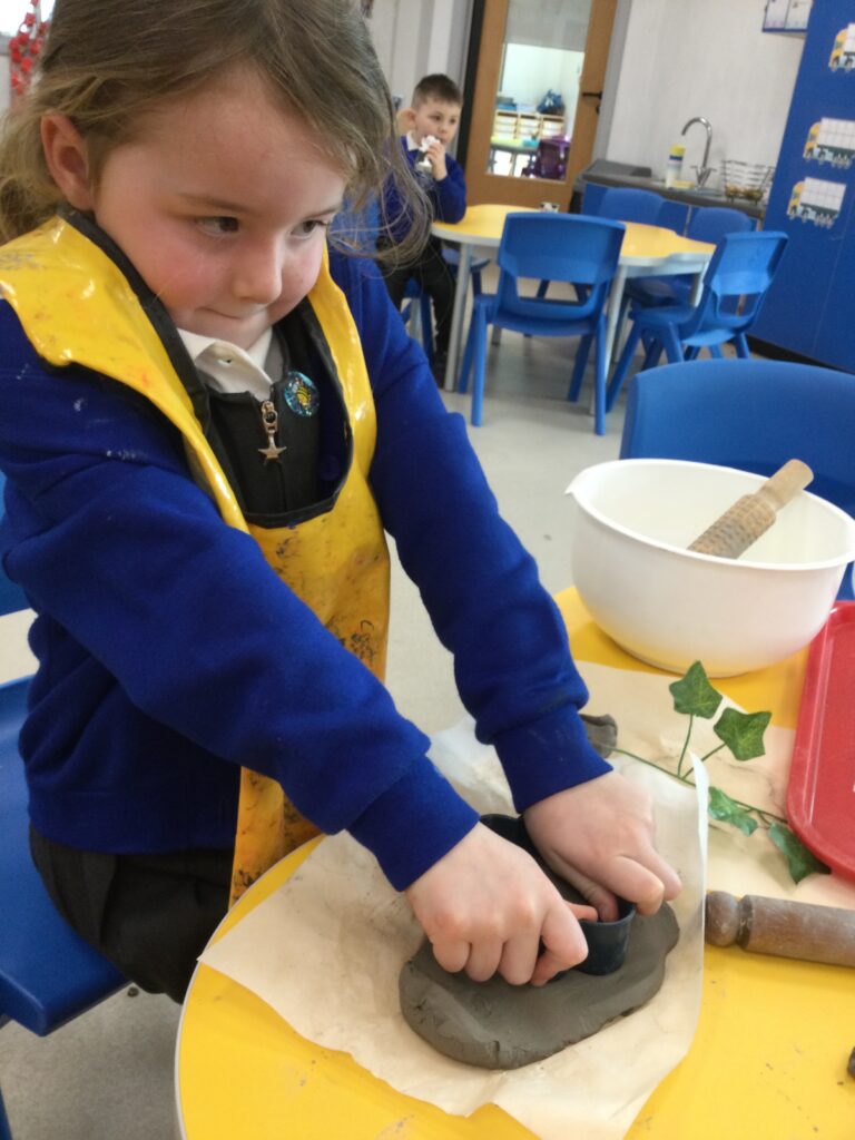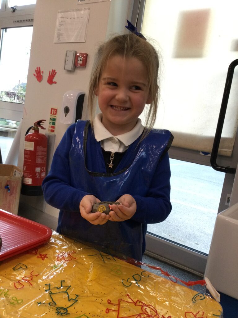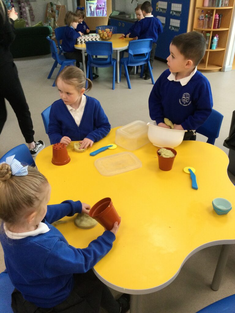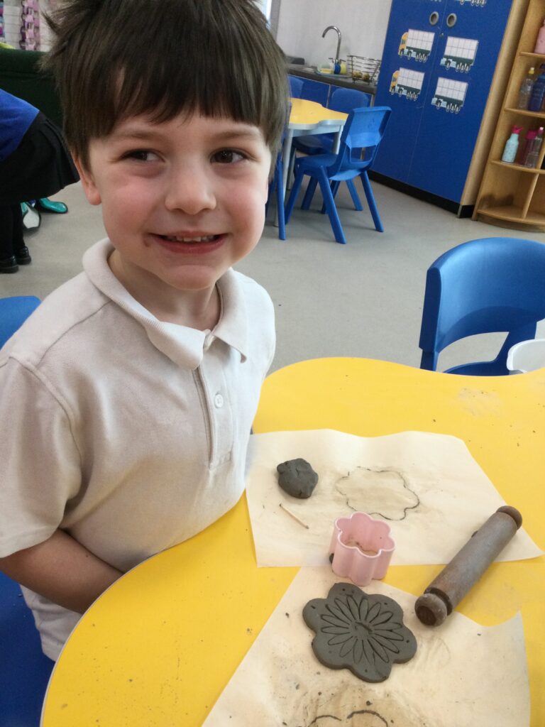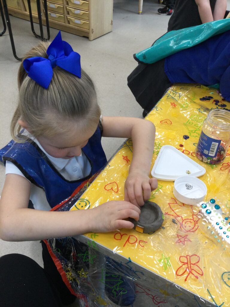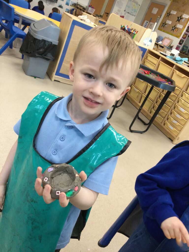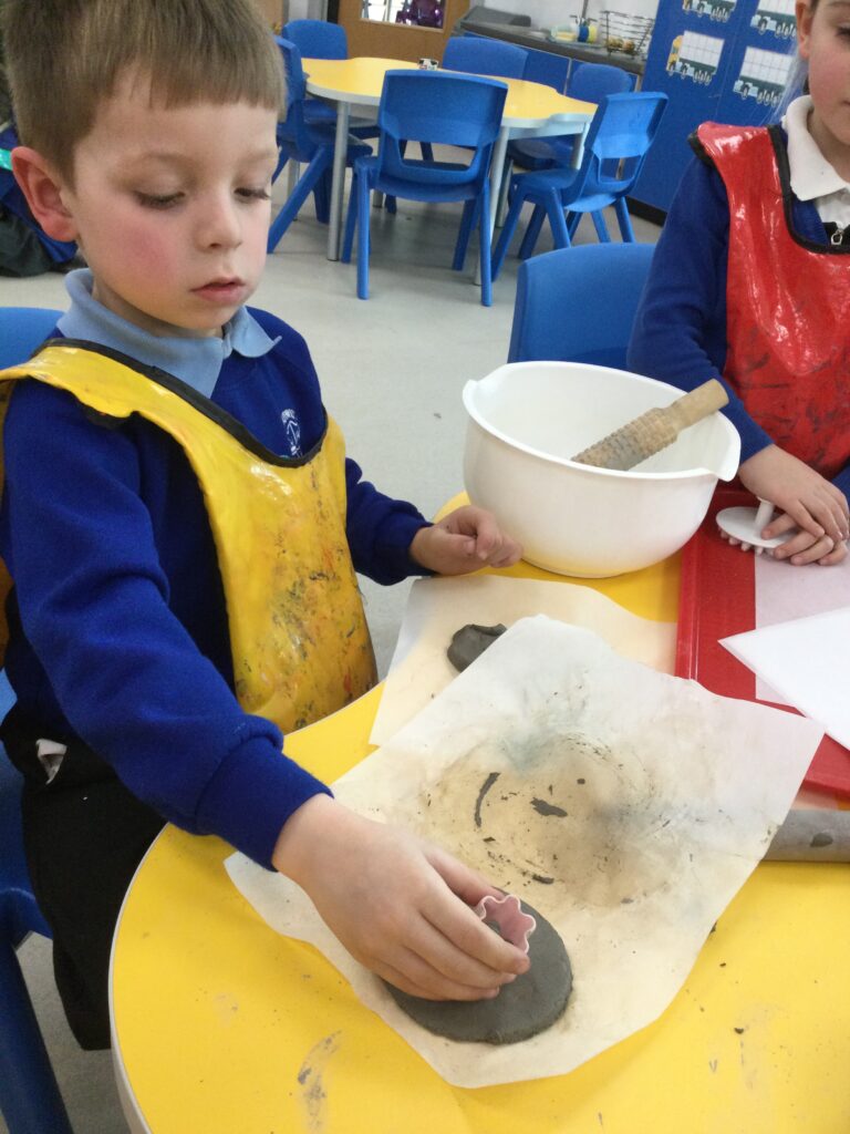 In Reception we have been making mothers day gifts and cards. We created a farm themed card as we have been learning all about the farm in our topic work. We used our cutting skills when making the card and also our fantastic writing skills when writing the card inserts. We enjoyed making them aswell as learning all about mothers day and why we celebrate it. We also made clay coasters as a gift for our Mam’s. We rolled and cut out the clay into the shape we wanted to use. We then used different tools to design patters onto our coasters. Once dried we then painted them choosing from a range of different colours. Once finished and dried we sealed them into a small gift bag with a tea bag alongside it. We had so much fun making and giving these gifts to our Mam’s as a thankyou for everything they do for us.
