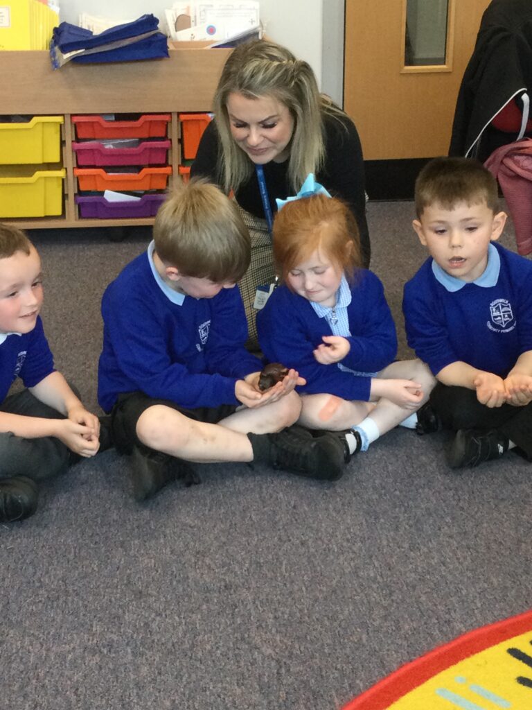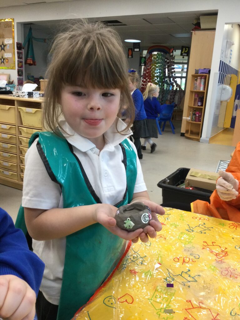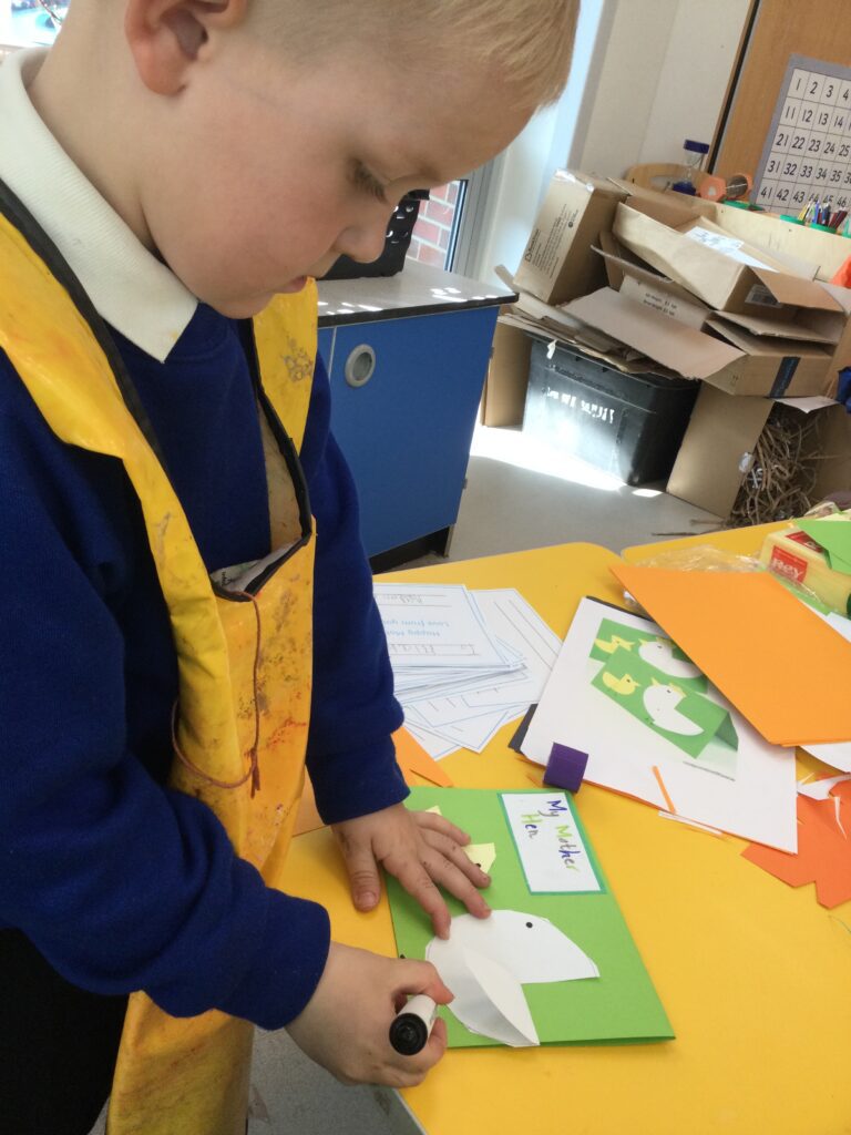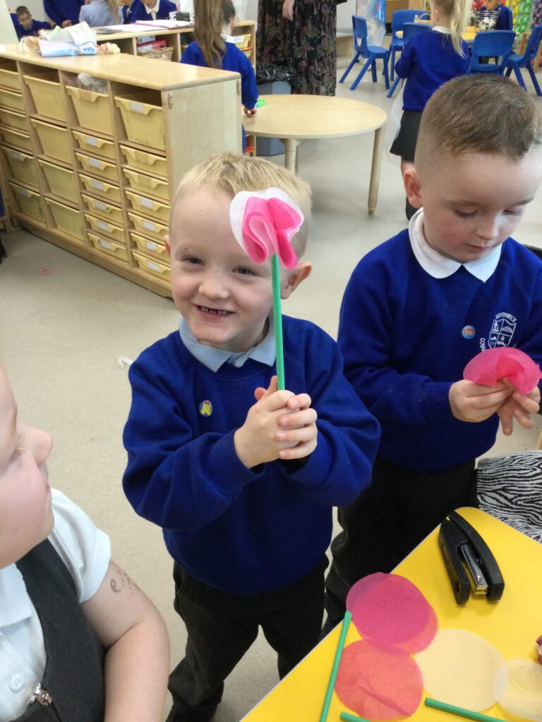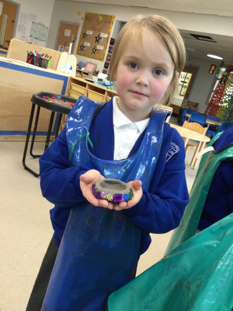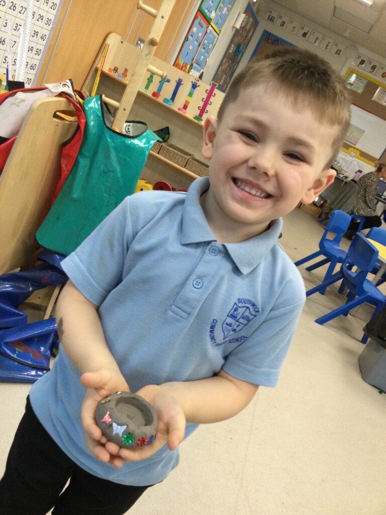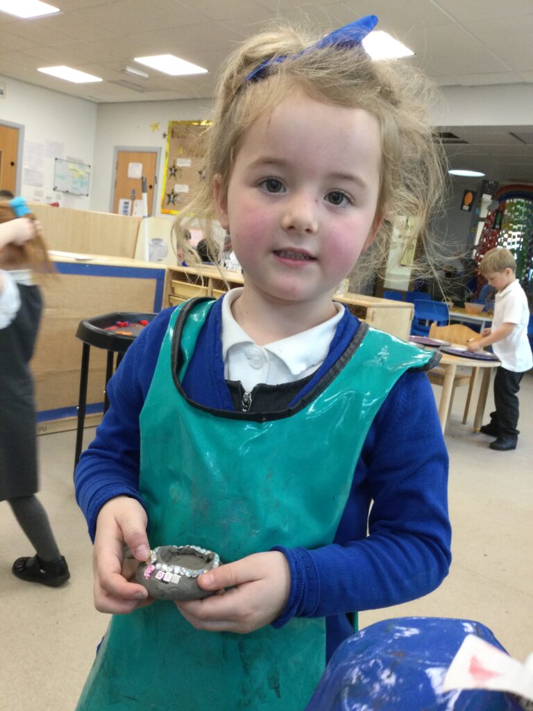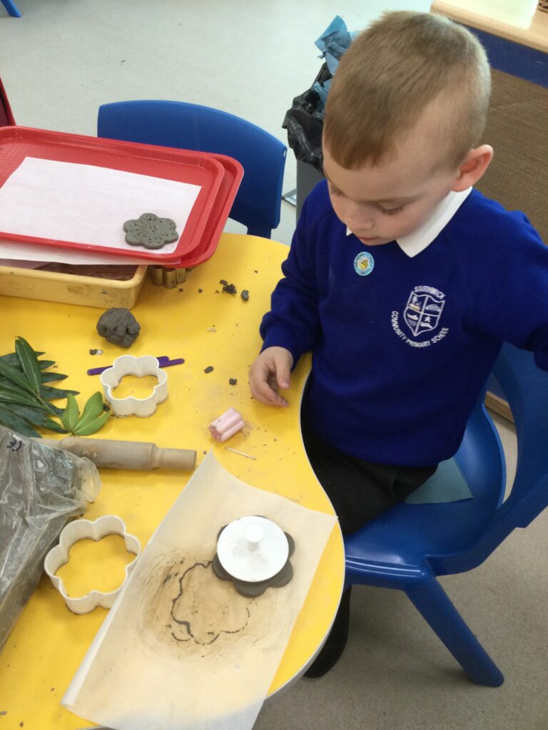In Reception we have been making mothers day gifts and cards. We created a farm themed card as we have been learning all about the farm in our topic work. We used our cutting skills when making the card and also our fantastic writing skills when writing the card inserts. We enjoyed making them aswell as learning all about mothers day and why we celebrate it. We also made clay coasters as a gift for our Mam’s. We rolled and cut out the clay into the shape we wanted to use. We then used different tools to design patters onto our coasters. Once dried we then painted them choosing from a range of different colours. Once finished and dried we sealed them into a small gift bag with a tea bag alongside it. We had so much fun making and giving these gifts to our Mam’s as a thankyou for everything they do for us.