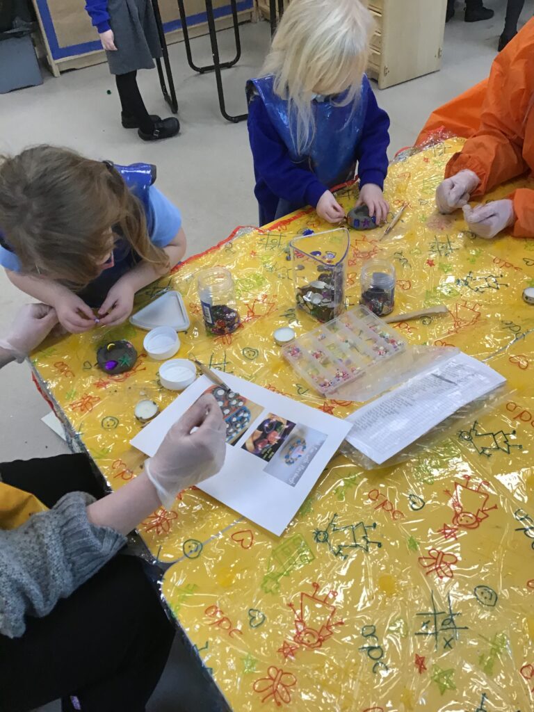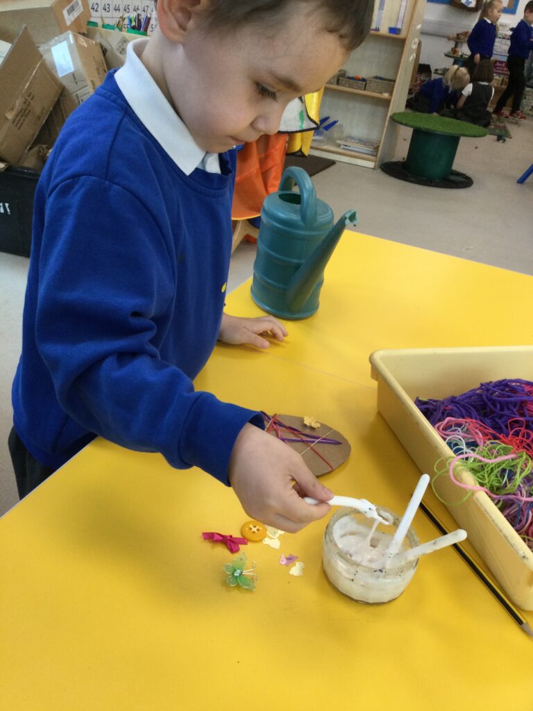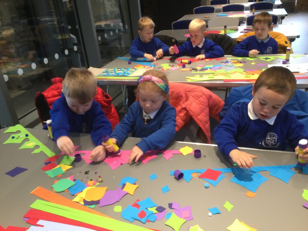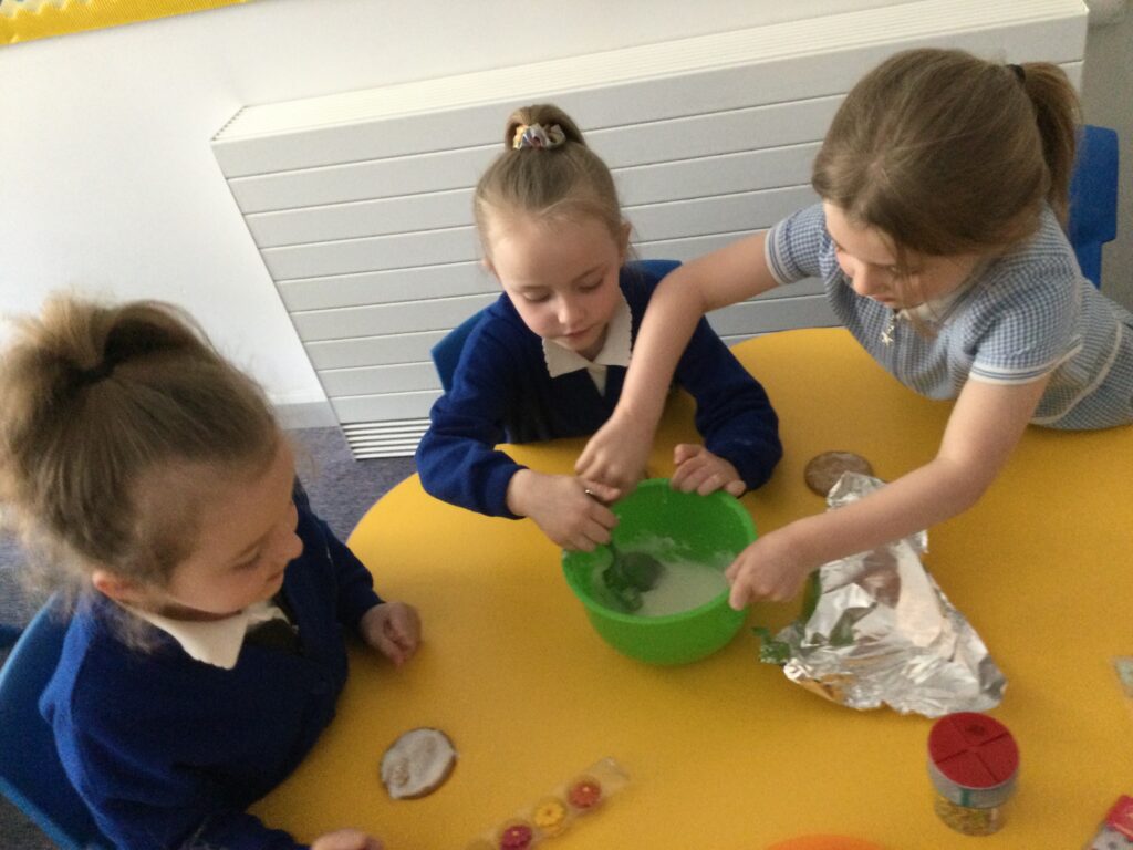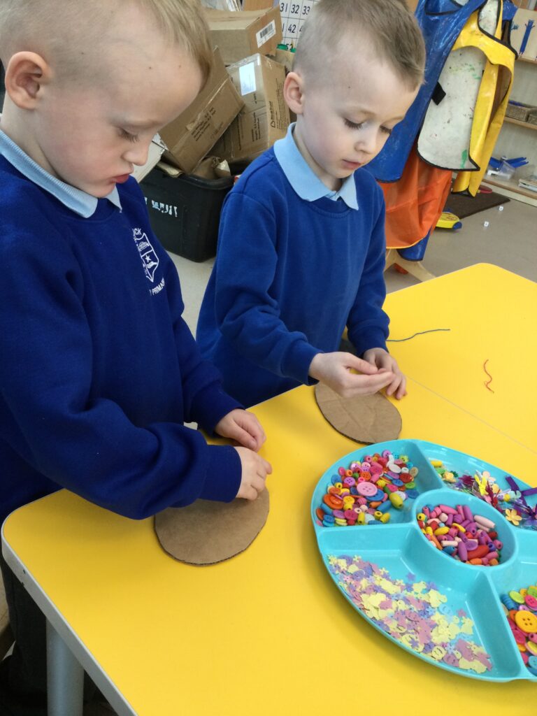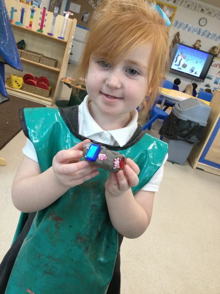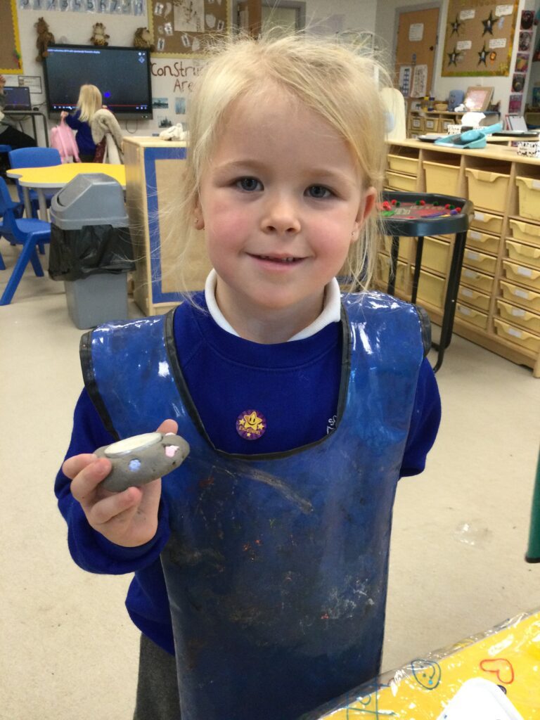 In Reception we have been making mothers day gifts and cards. We created a farm themed card as we have been learning all about the farm in our topic work. We used our cutting skills when making the card and also our fantastic writing skills when writing the card inserts. We enjoyed making them aswell as learning all about mothers day and why we celebrate it. We also made clay coasters as a gift for our Mam’s. We rolled and cut out the clay into the shape we wanted to use. We then used different tools to design patters onto our coasters. Once dried we then painted them choosing from a range of different colours. Once finished and dried we sealed them into a small gift bag with a tea bag alongside it. We had so much fun making and giving these gifts to our Mam’s as a thankyou for everything they do for us.