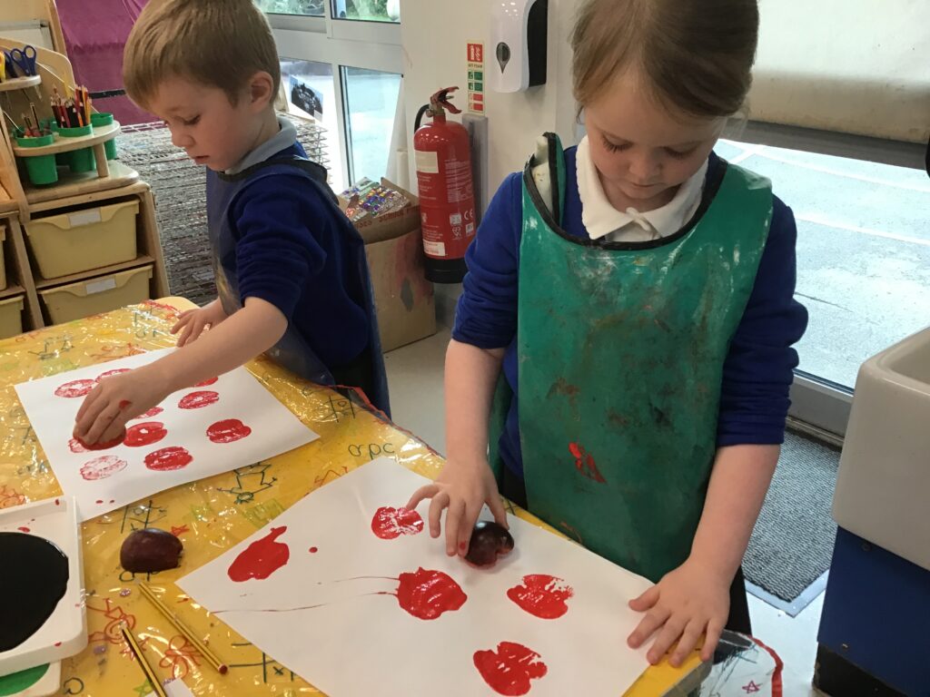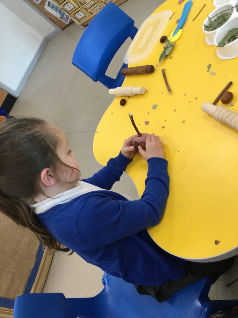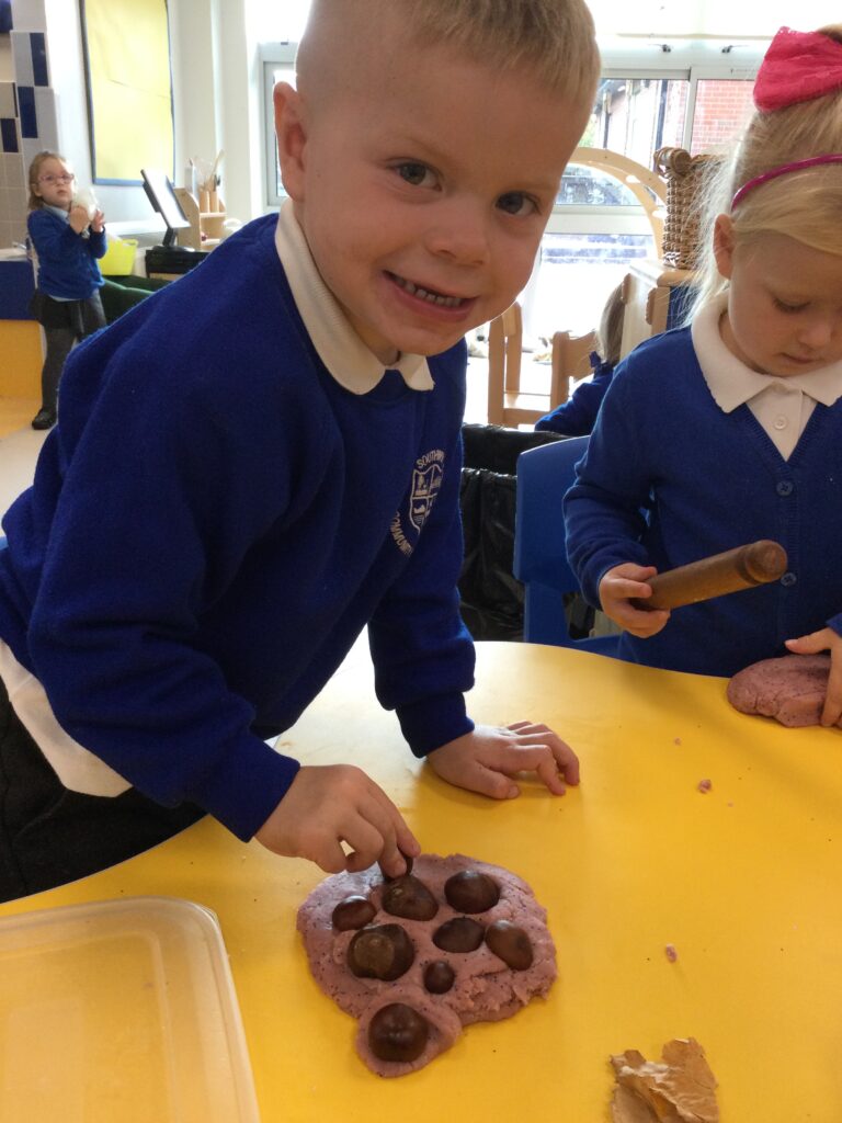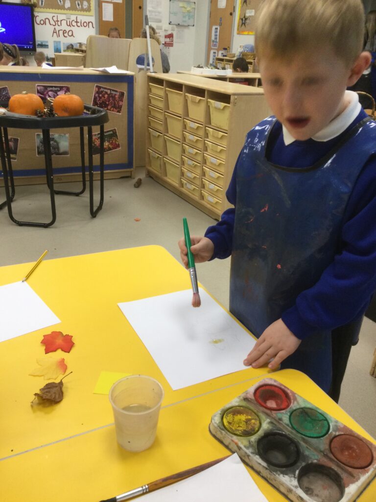 This week we have been learning all about the different seasons with a particular focus on the season Autumn. We have been making our own transient art outside using the natural resources which we collected ourselves. We then used these natural resources we collected such as the leaves to paint them and then print them onto paper in the outdoor writing area. We have also been exploring in our Autumn inspired tough tray with the Pine cones, Conkers and leaves talking all about the texture and appearance of the objects. In Reception this week, we have also been discussing and observing the physical changes between the four Seasons such as the temperature change, the change in the clothes we wear and the change in the environment around us at different points in the year. We have been discussing which animals go into hibernation and also what happens to the flowers and trees at Autumn time.