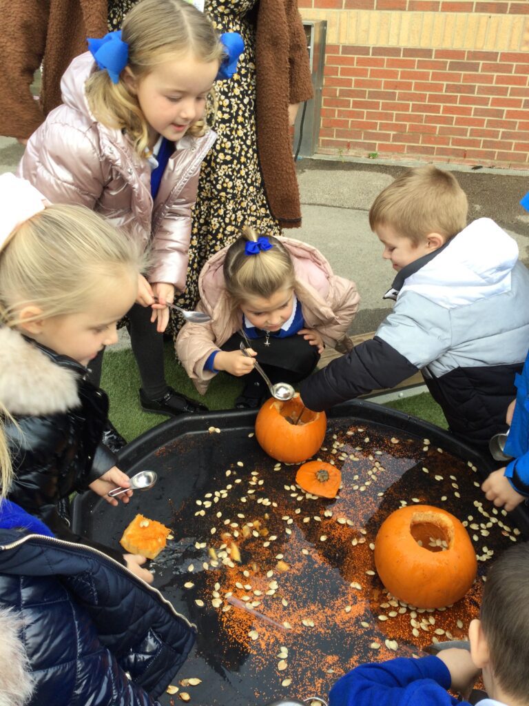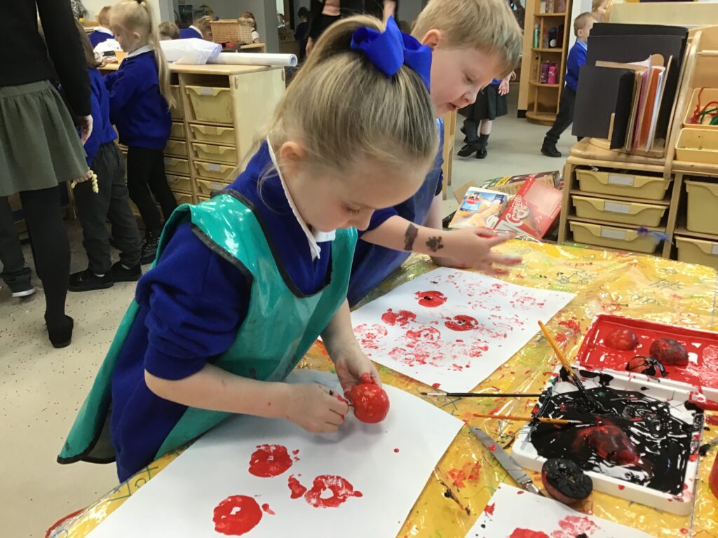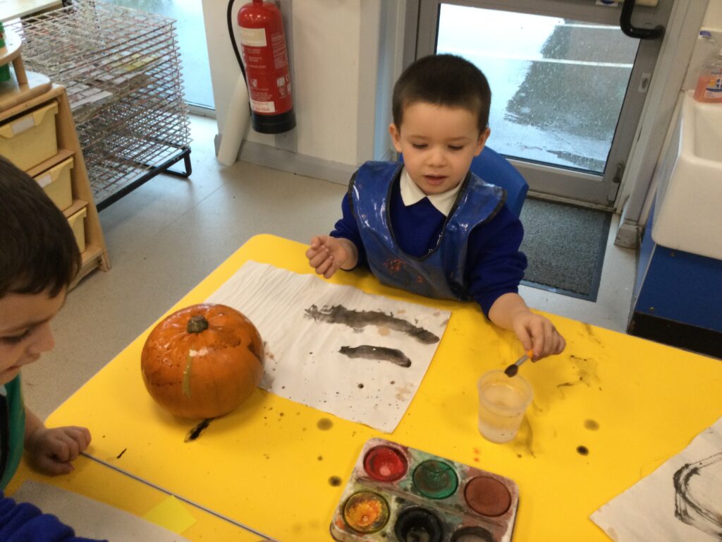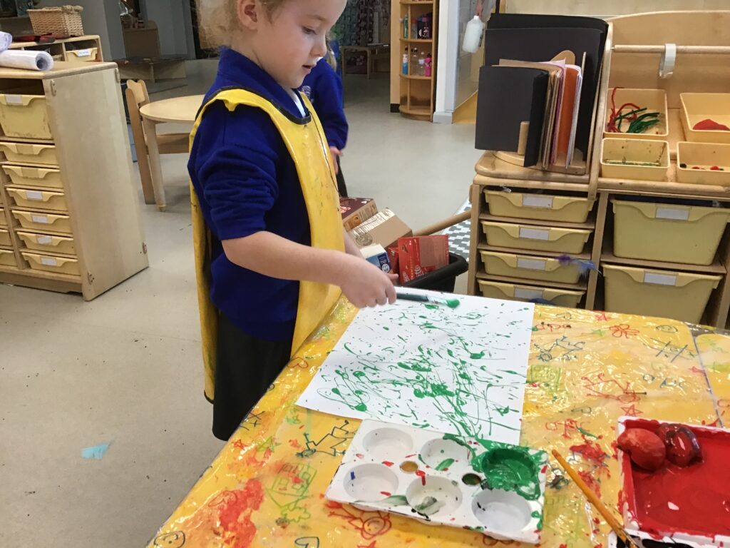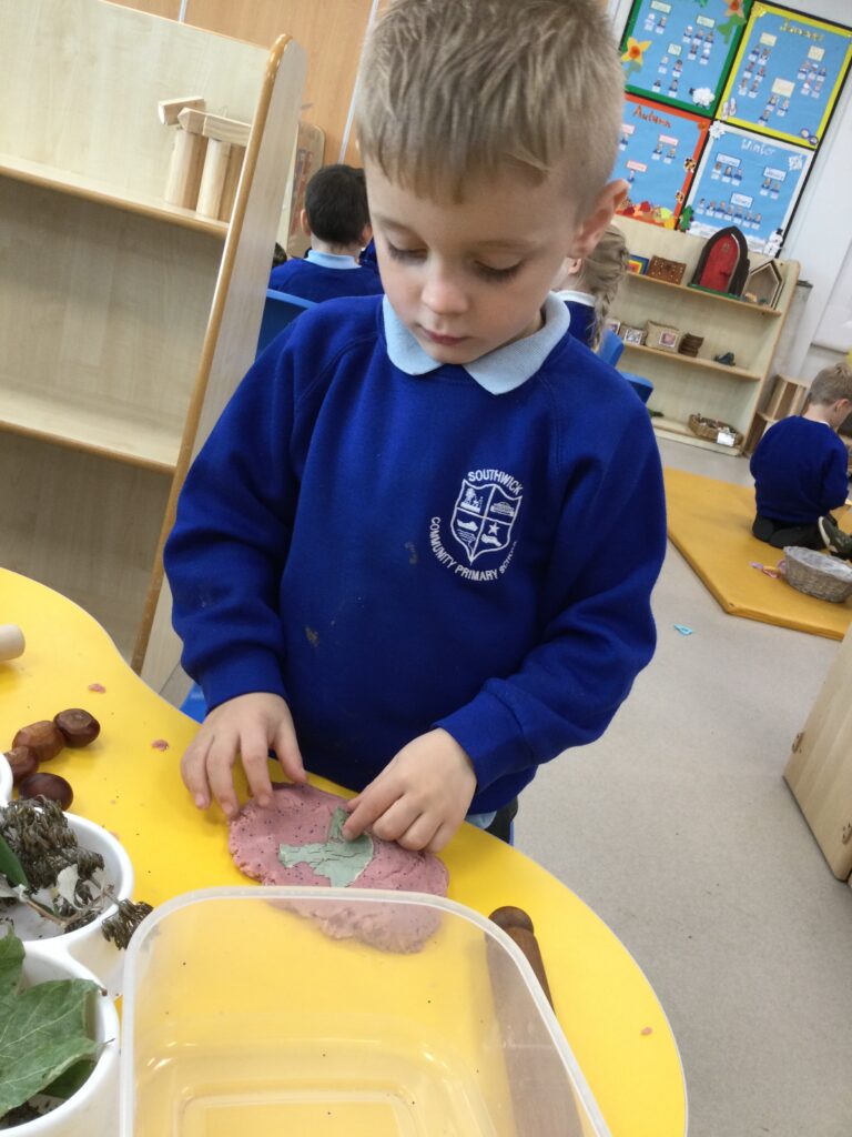 This week we have been learning all about the different seasons with a particular focus on the season Autumn. We have been making our own transient art outside using the natural resources which we collected ourselves. We then used these natural resources we collected such as the leaves to paint them and then print them onto paper in the outdoor writing area. We have also been exploring in our Autumn inspired tough tray with the Pine cones, Conkers and leaves talking all about the texture and appearance of the objects. In Reception this week, we have also been discussing and observing the physical changes between the four Seasons such as the temperature change, the change in the clothes we wear and the change in the environment around us at different points in the year. We have been discussing which animals go into hibernation and also what happens to the flowers and trees at Autumn time.