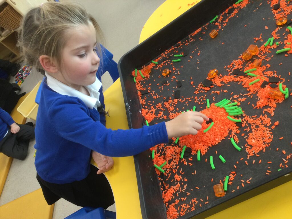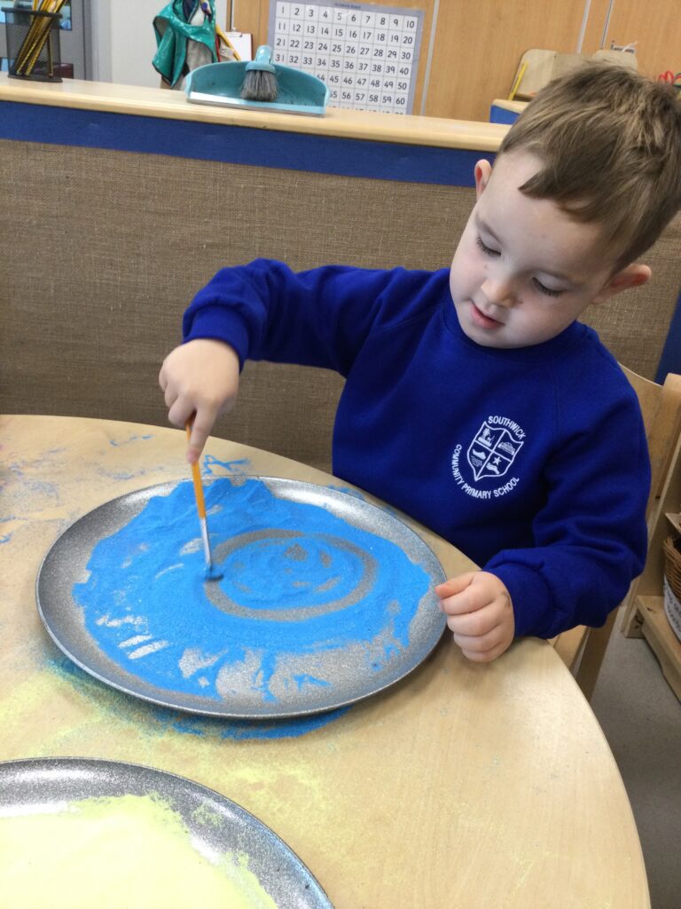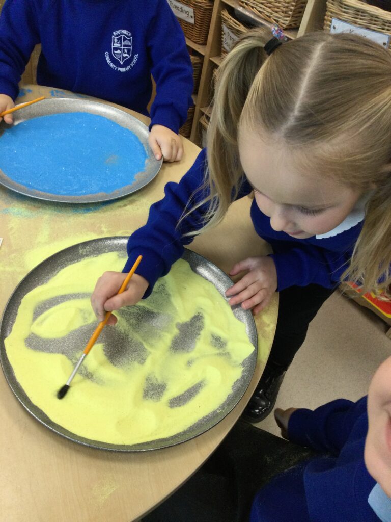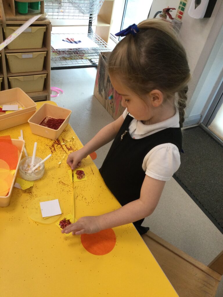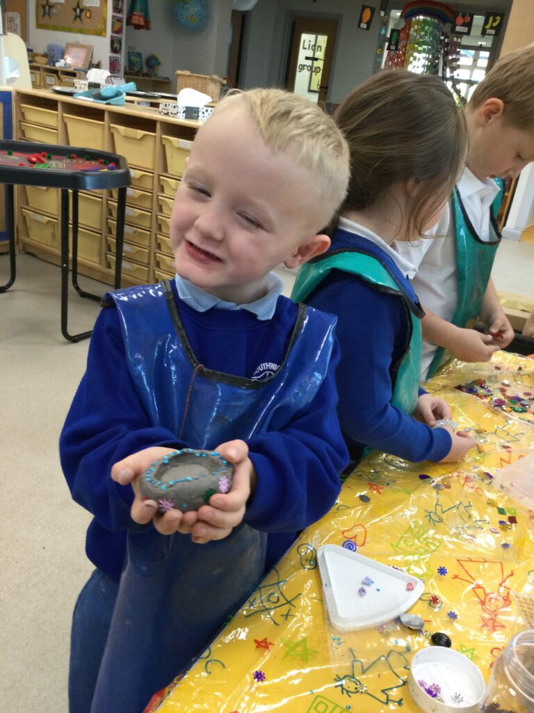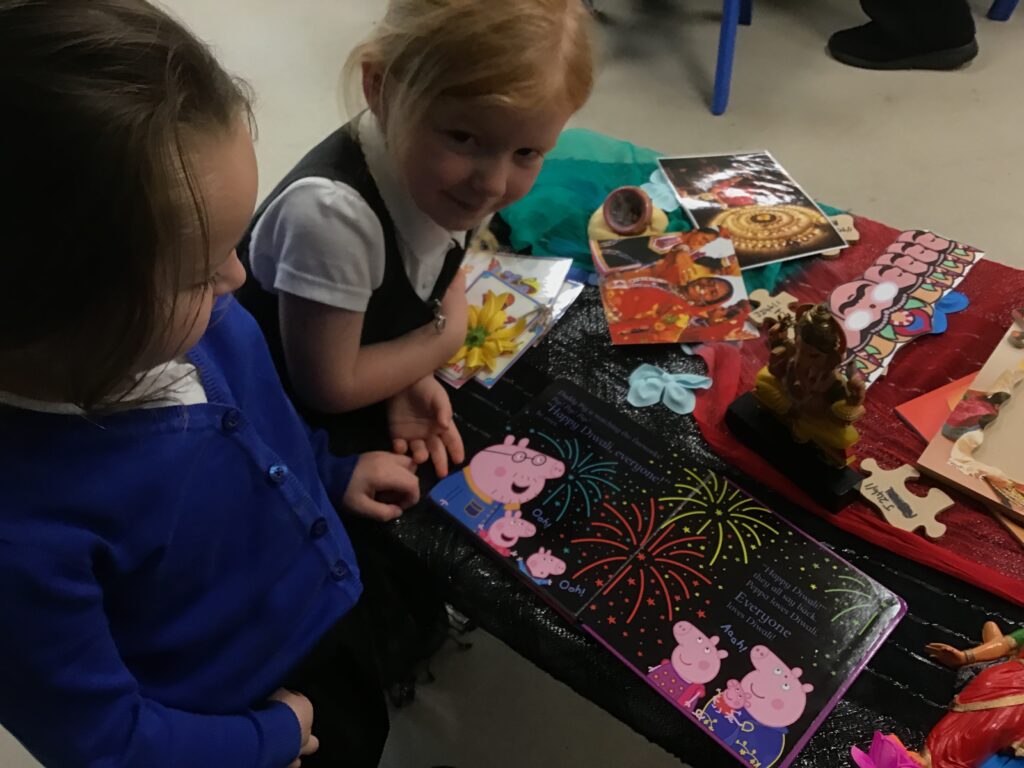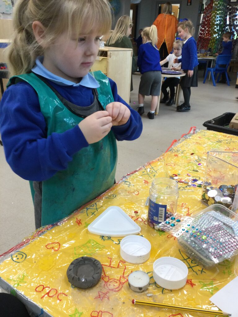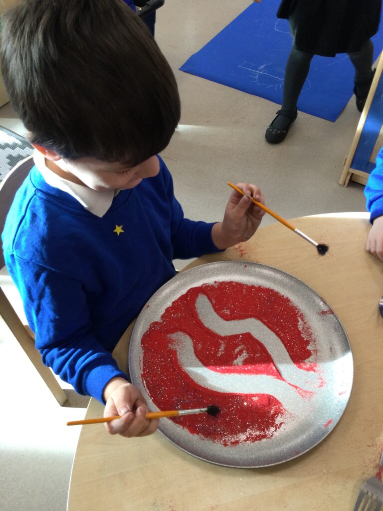 This week in Reception we have been learning all about ‘Diwali’ the festival of light and also Bonfire night. We have been making our very own Rangoli patterns in the glitter sand using tools such as paintbrushes and forks. We have also been making our very own Diya lamps using clay and decorative materials such as beads and sequins. We have been reading stories and watching videos all about the festival and what happens at this special time. We looked at the special clothing wore when celebrating Diwali and the preparation and traditions that Diwali en-tales. We learned about the Gods and Goddesses that Diwali is associated with such as Lakshmi, Rama and Sita.