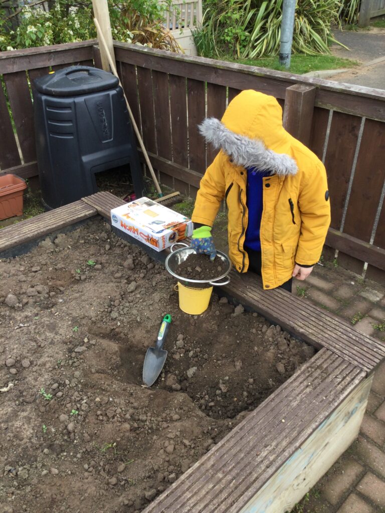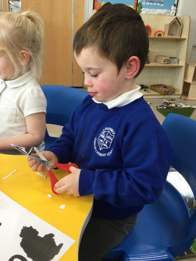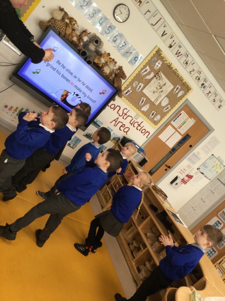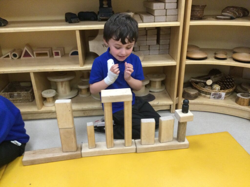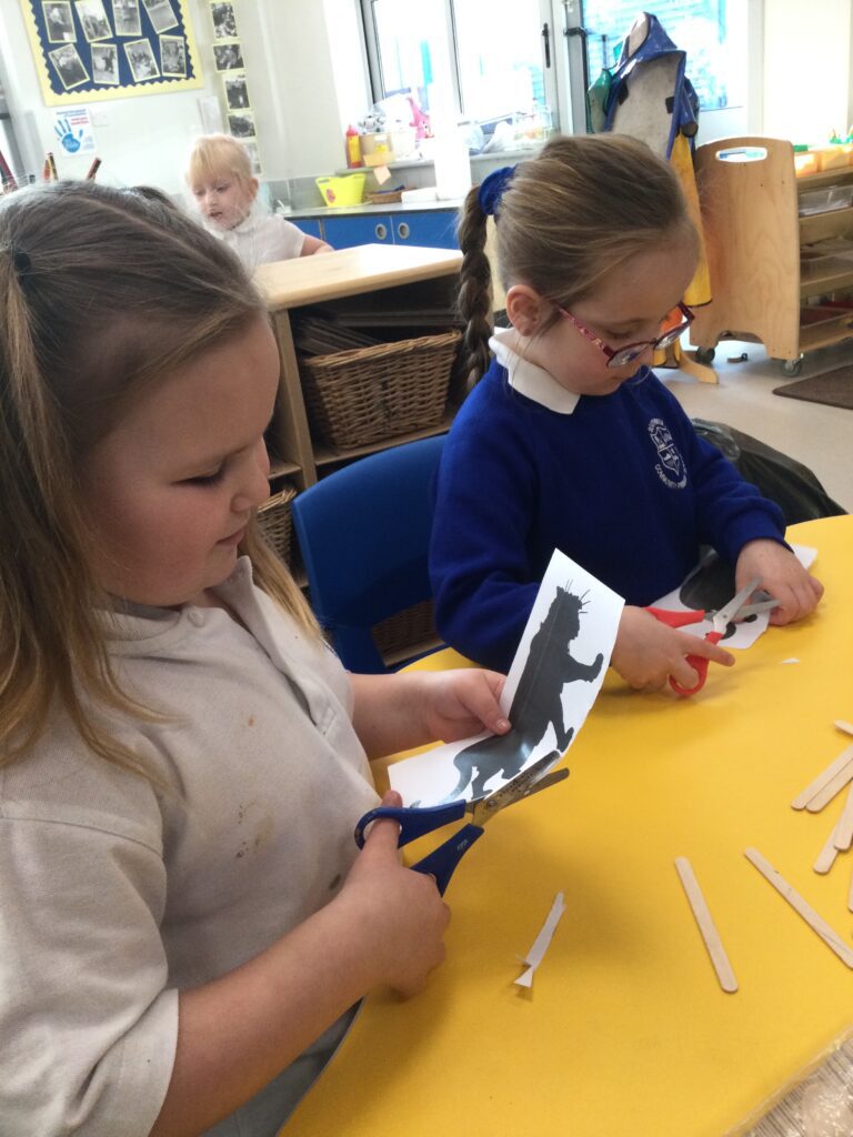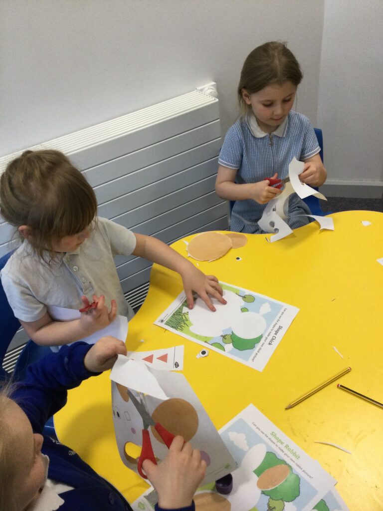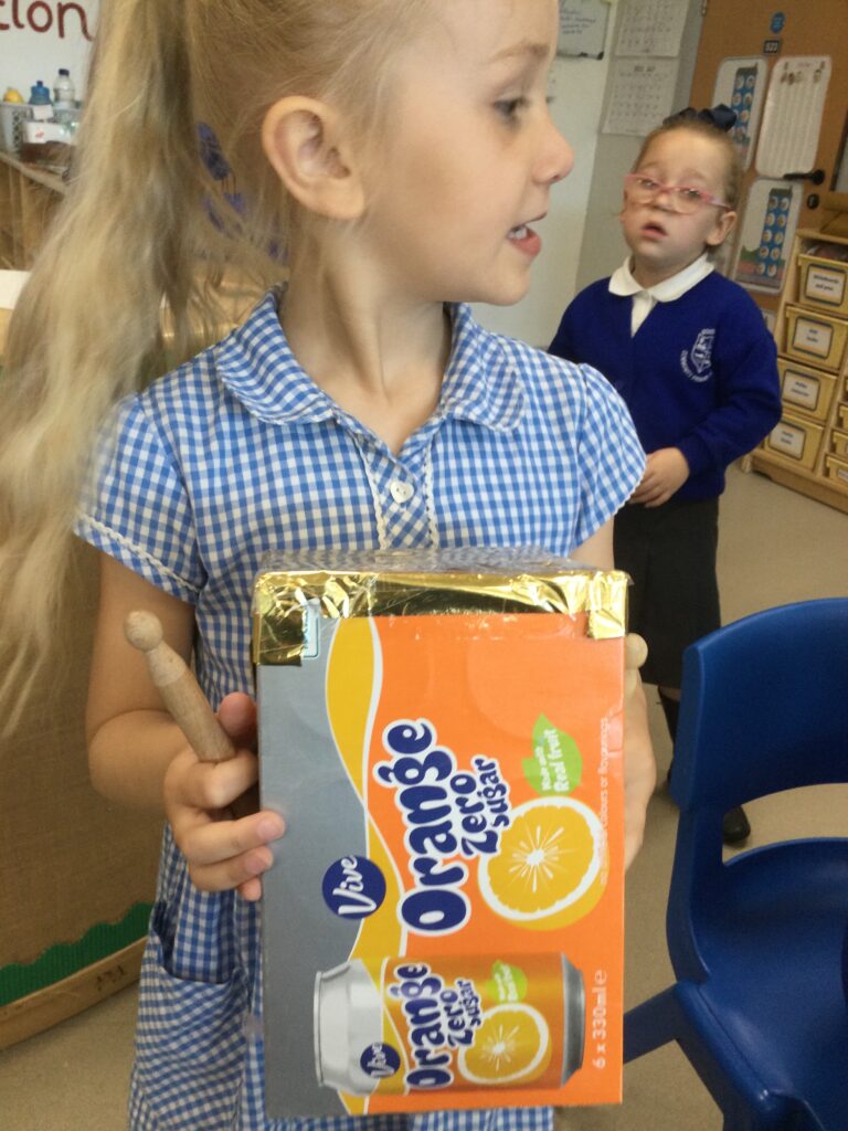 This week in Reception we have been learning all about the traditional tale ‘Jack and the beanstalk’ . We have been using the wooden characters to act out the story and repeat key phrases from the tale. We have turned our role play area into the Giants castle and made our very own beanstalk which we made and put up ourselves. We were very good at using our cutting and drawing skills to make the leaves for the beanstalk. In the tuff tray we explored the soil and different gardening tools, we enjoyed digging the beans out of the soil and exploring the different textures. We also used the story mats to sequence the story into the correct order and retell key events from the tale. We also took part in a singing and dancing activity where we stomped and shouted like the Giant singing ‘Fe Fi Fo Fum’ we were all very good at remembering the actions to the routine and remembering the lyrics.