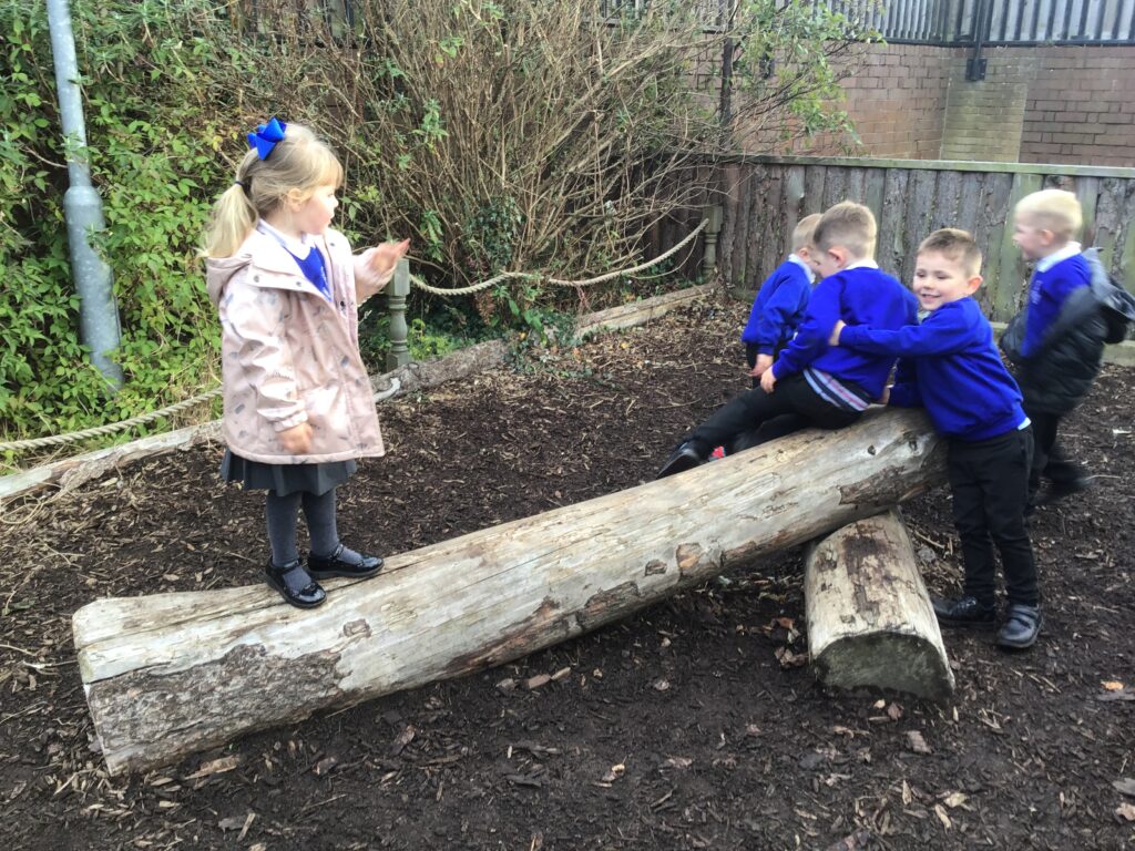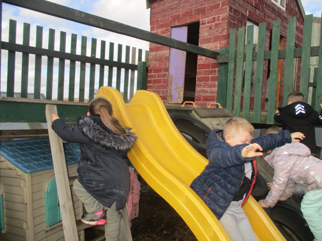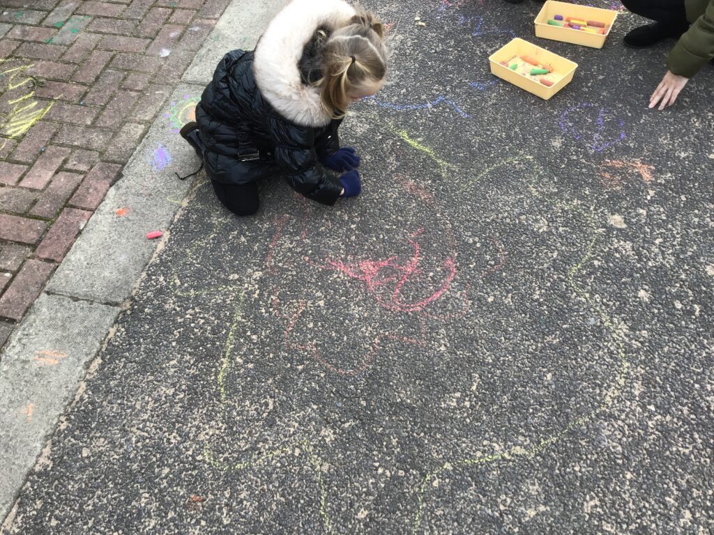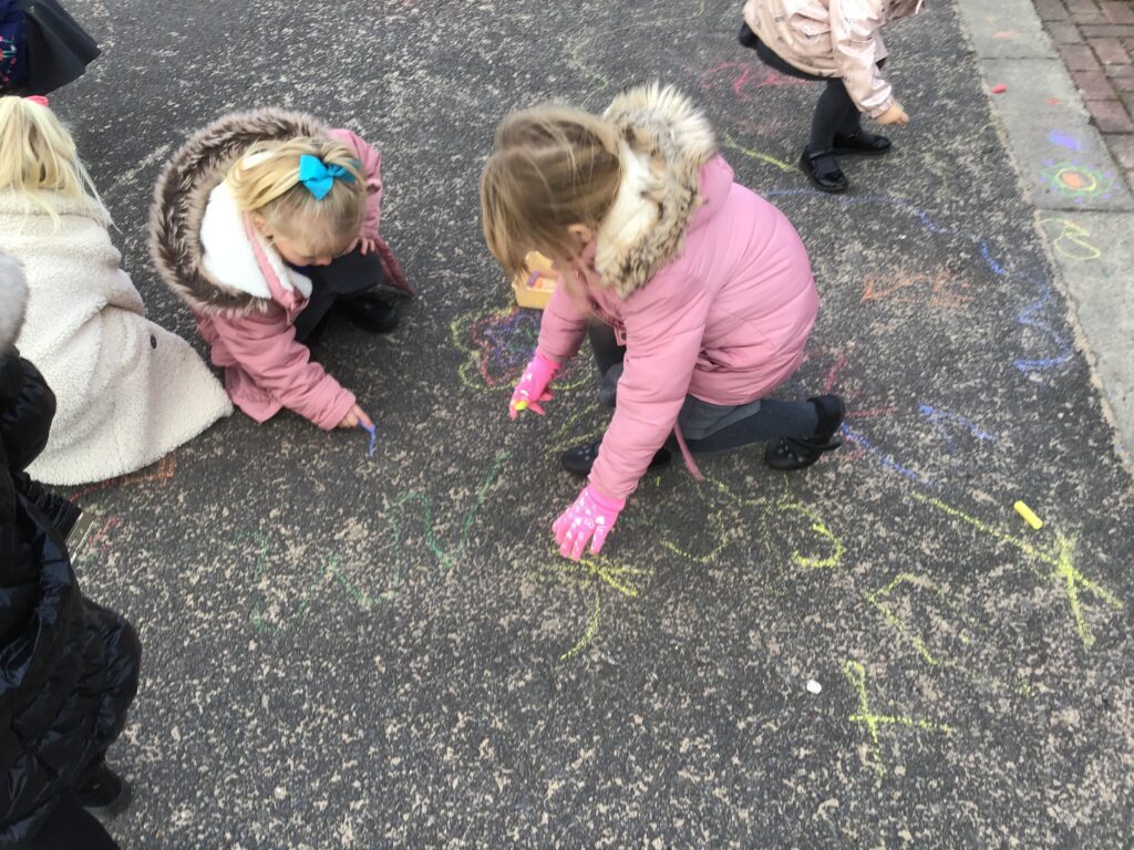 On Thursday the 4th of November 2021 , our school participated in a national Outdoor learning day. This was to help highlight and recognize the importance of learning opportunities outdoors. On this day we took all of our learning and our lessons outdoors. In reception we had lots of fun on our outdoor learning day, we went to the fire pit and Mrs Pattison showed us how putting special chemicals on the fire change the colour, just like fireworks. We climbed trees in our forest area, practiced our balance skills on our logs and ran and jumped on our climbing frame. We also love to explore the water area, seeing which objects can wiz down our track and splash into the pool. Our Maths and Literacy lessons were also outside, in math we practiced our formation in the sand and with chalk, we made our very own tens frame and used objects and us to show different amounts. In literacy we went on a letter hunt trying to identify the initial sounds in words.