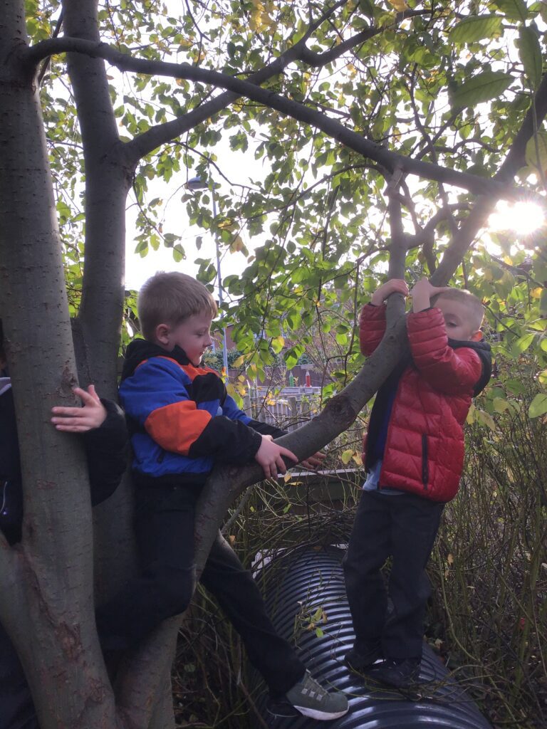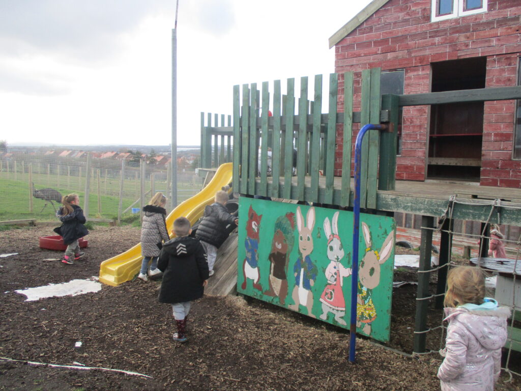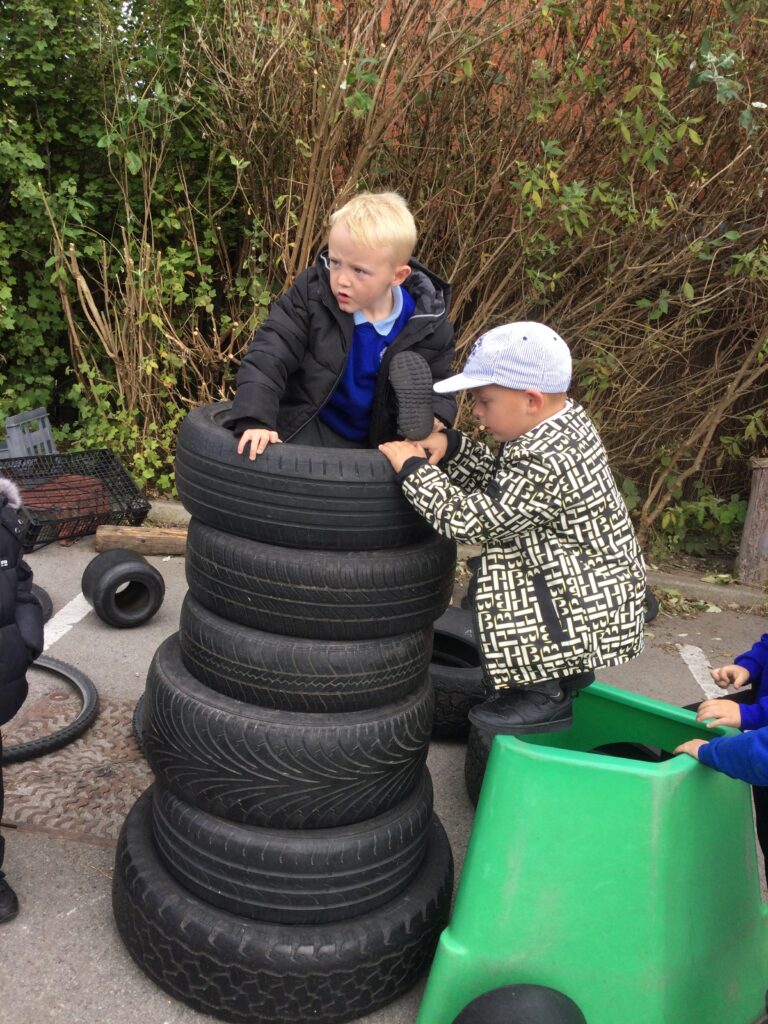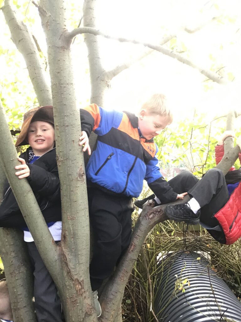 On Thursday the 4th of November 2021 , our school participated in a national Outdoor learning day. This was to help highlight and recognize the importance of learning opportunities outdoors. On this day we took all of our learning and our lessons outdoors. In reception we had lots of fun on our outdoor learning day, we went to the fire pit and Mrs Pattison showed us how putting special chemicals on the fire change the colour, just like fireworks. We climbed trees in our forest area, practiced our balance skills on our logs and ran and jumped on our climbing frame. We also love to explore the water area, seeing which objects can wiz down our track and splash into the pool. Our Maths and Literacy lessons were also outside, in math we practiced our formation in the sand and with chalk, we made our very own tens frame and used objects and us to show different amounts. In literacy we went on a letter hunt trying to identify the initial sounds in words.