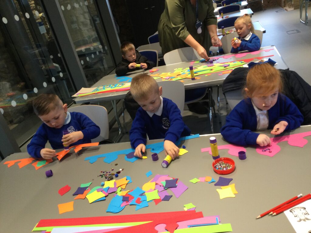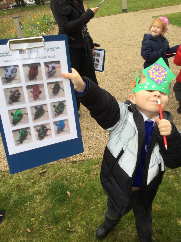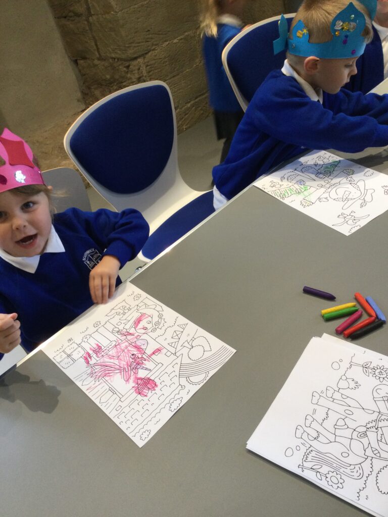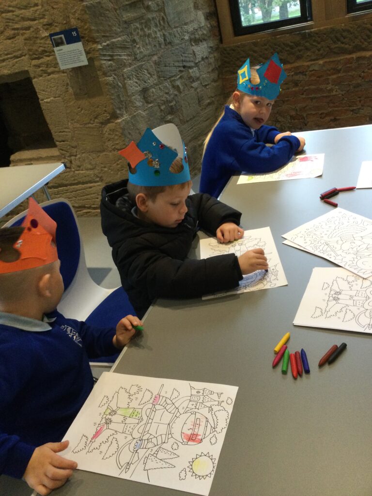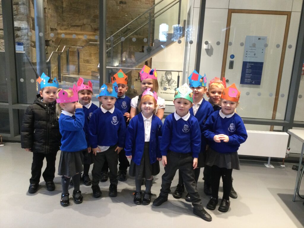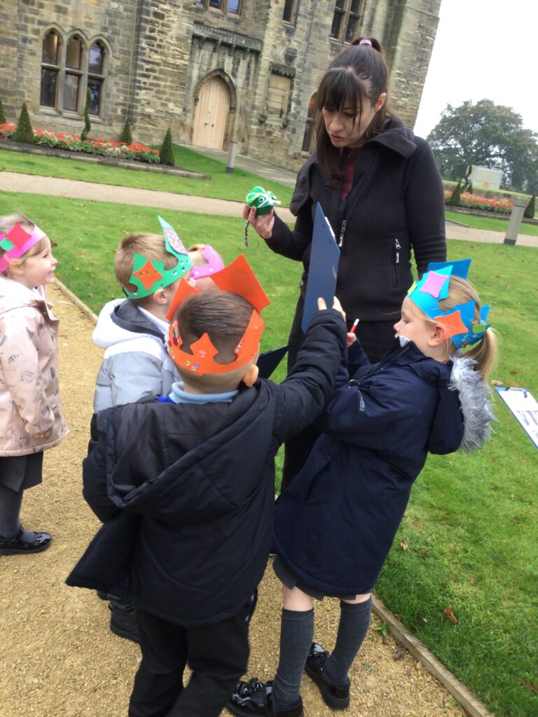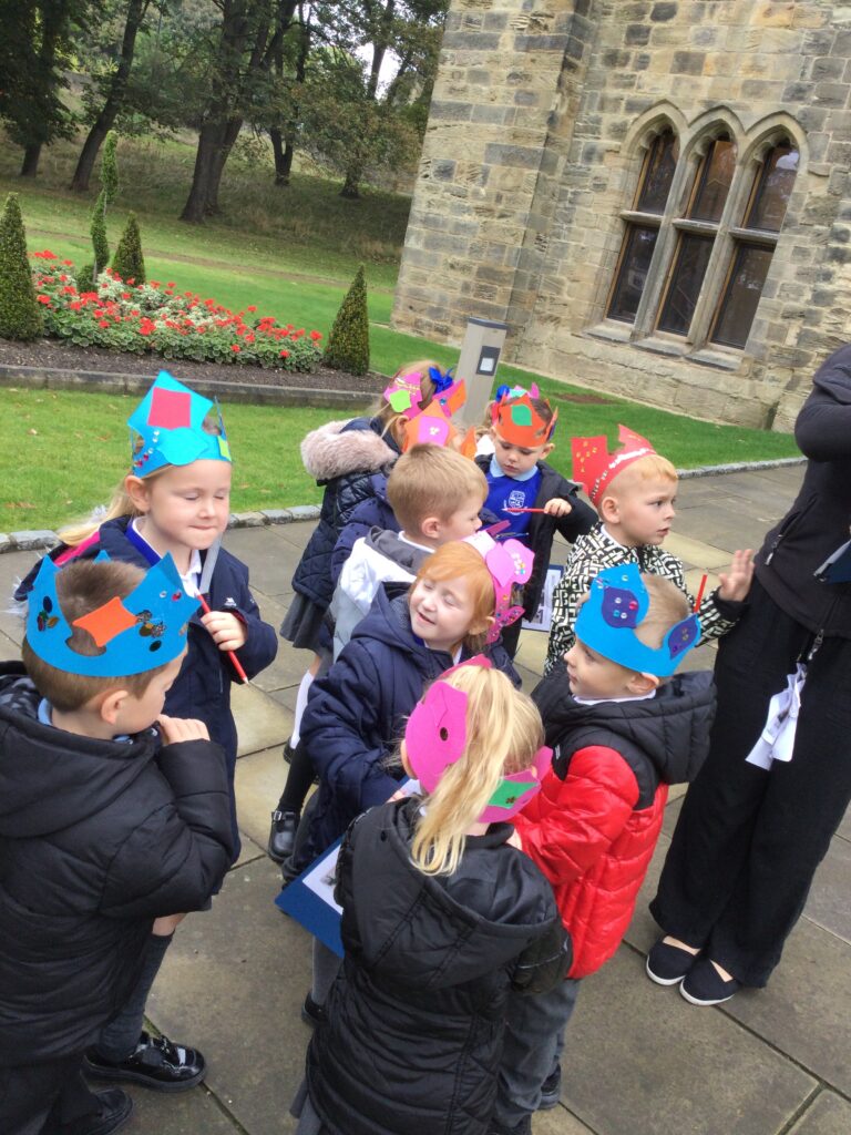 Reception have been on a trip to Hylton Castle! On our trip we participated in multiple activities both inside and outside of the Castle and its grounds. We made and decorated our very own crowns and were given the opportunity to pose like the Kings and Queens of the Castle in the throne. We also went on a hunt with our groups using our very own clip boards to search for the Rats that roam the castle grounds. We used our senses to explore the castle grounds and to listen, feel and touch our surroundings. We also went on our own very special tour of the castle and learned lots of facts about the History of the castle and how different life was then to how we live now.