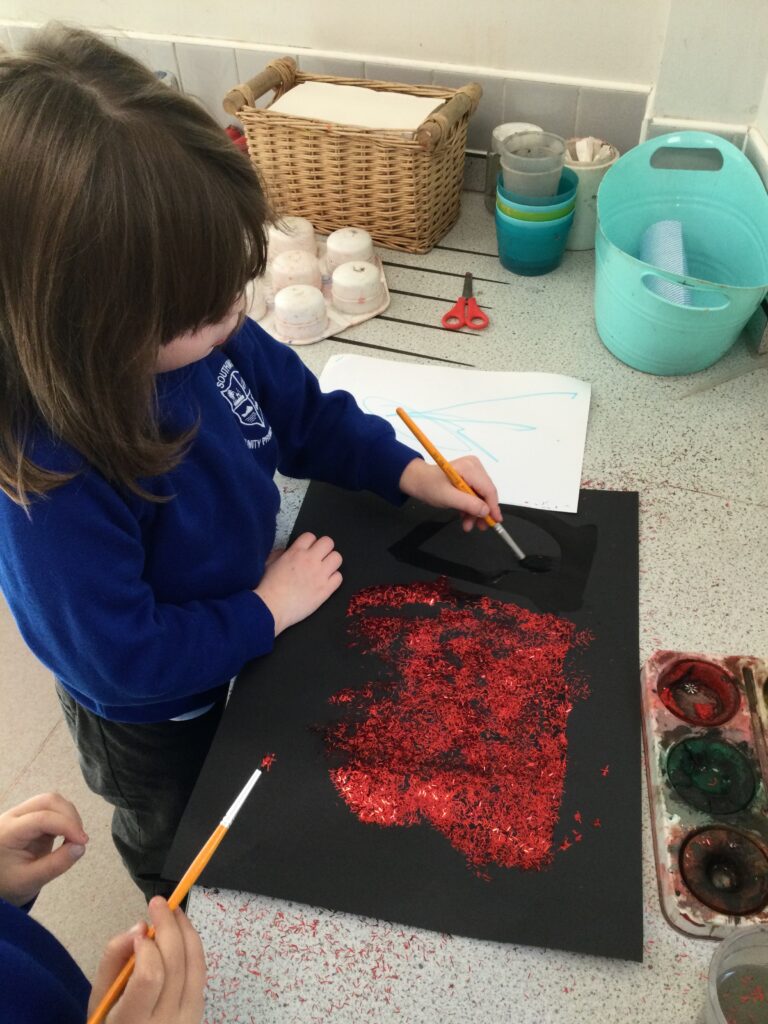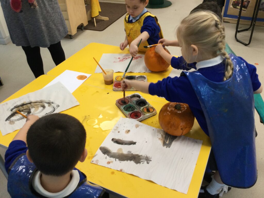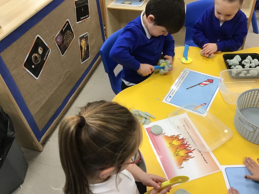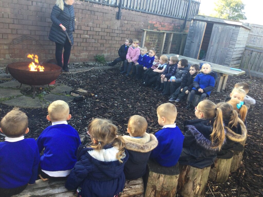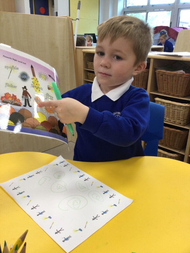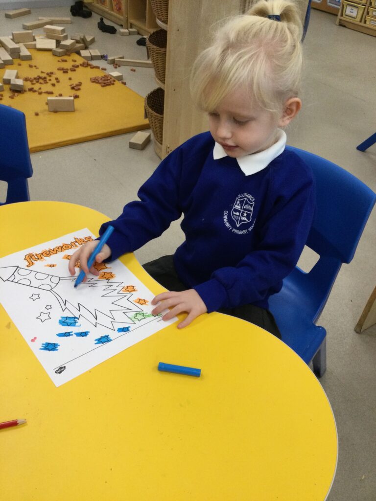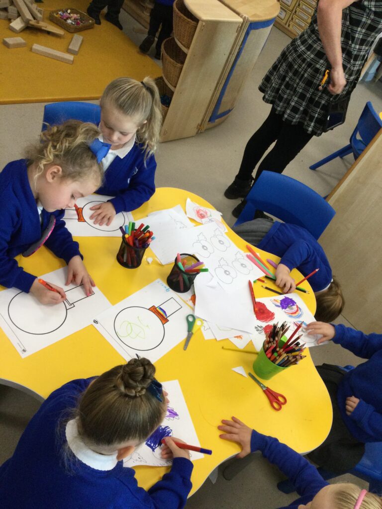 We have also been learning about Bonfire night this week in Reception. We read and learned all about the story of Guy Fawkes and the houses of parliament. We used masks to retell the story and act it out with our peers. We have also been drawing our very own firework pictures using chalk, paints, coloured pens and pencils. We all gathered around the fire pit and used ‘Magical flame’ to make our very own firework . We discussed how the flame changed colour and appearance, we also discussed how we could stay safe when we are around fire and fireworks.