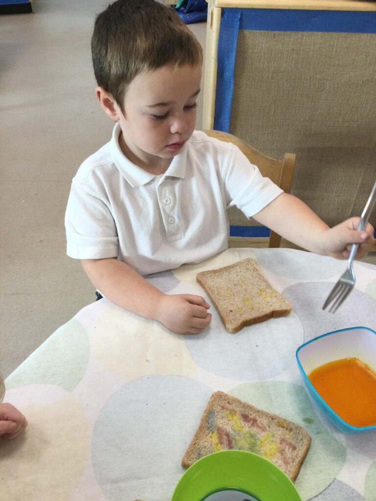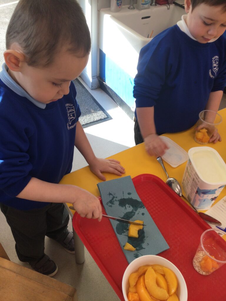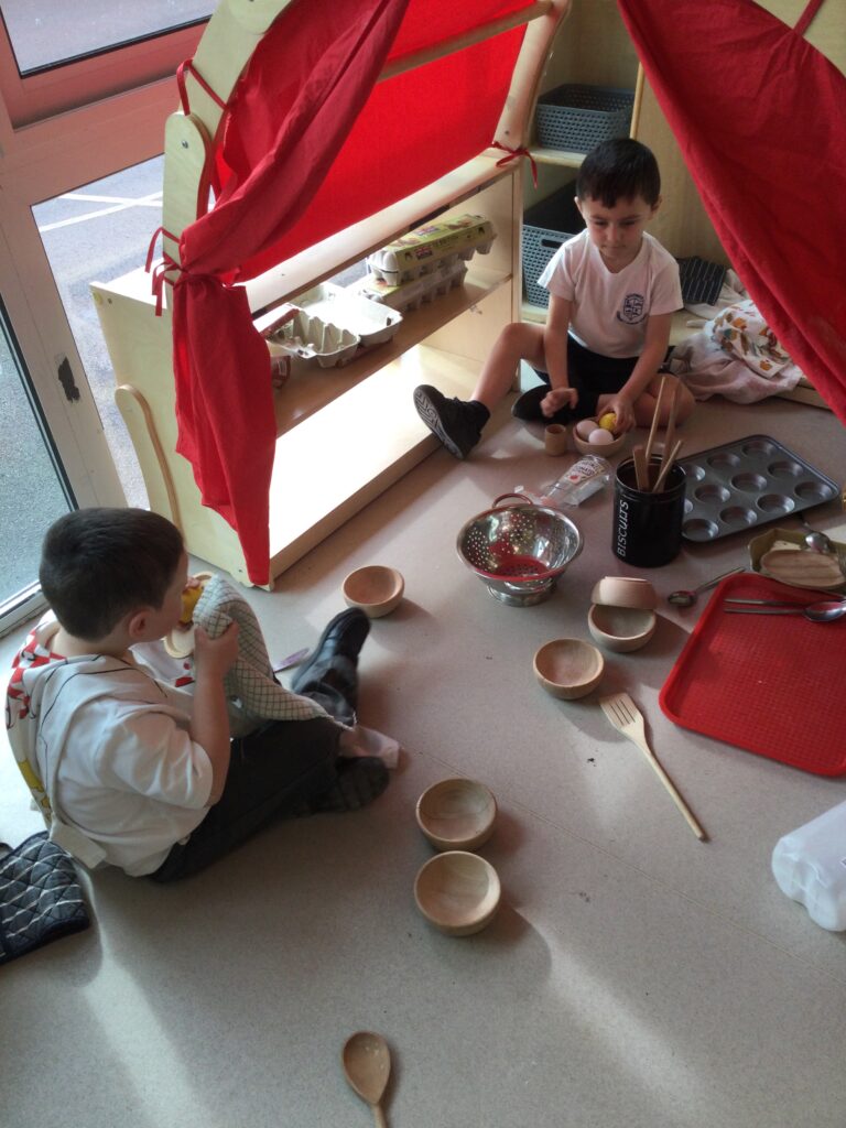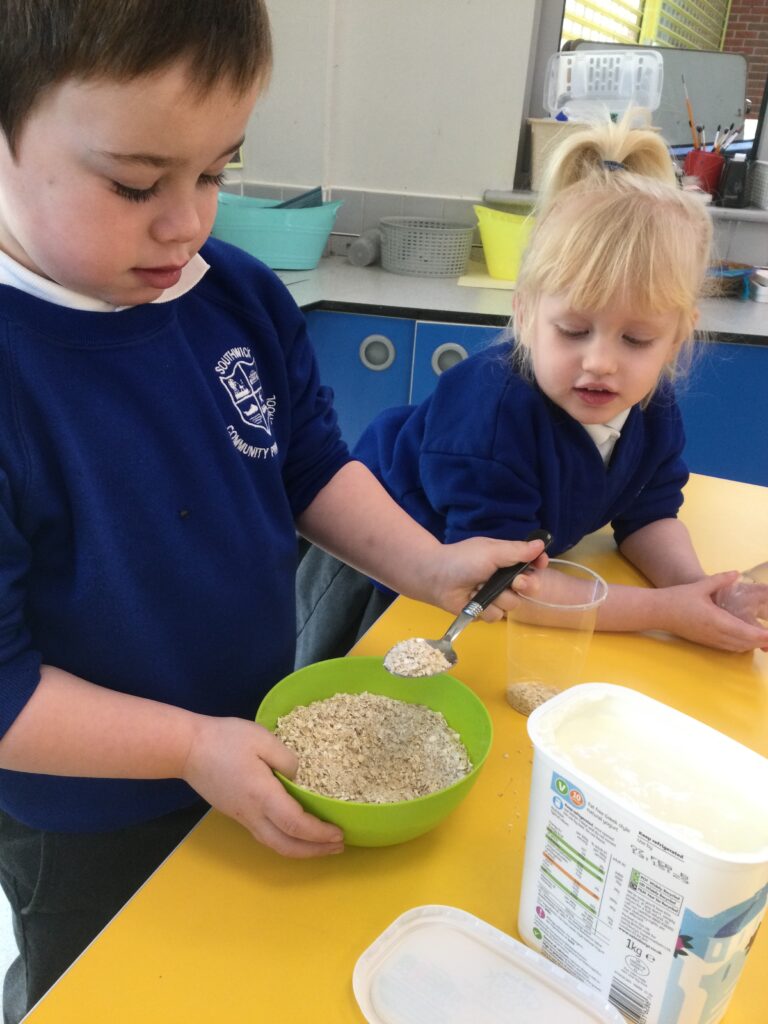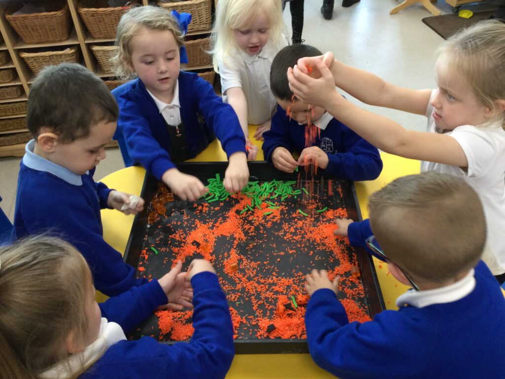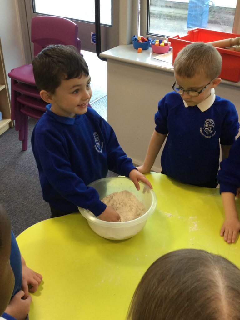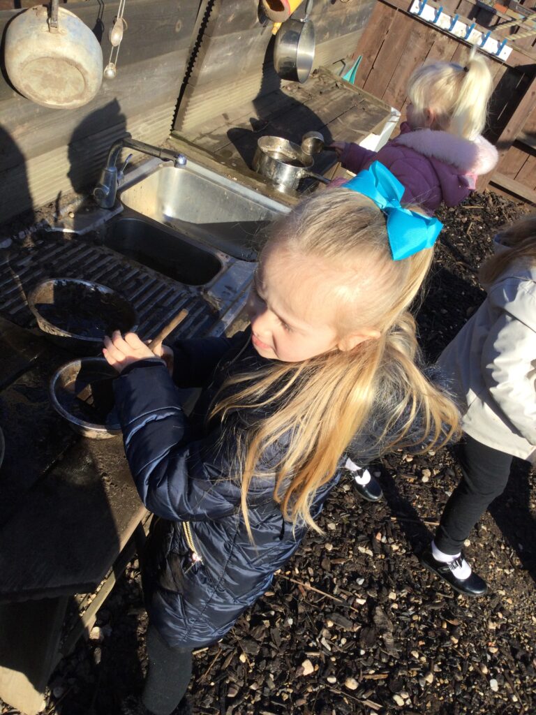 In Reception we have been learning all about the traditional tale ”The Magic porridge pot’ we have been reading the story then completing work and activities all around the tale. We made and taste tested our own porridge. We used our home corner to act out the story using props such as pots and spoons to repeat phrases from the tale. We have also been practicing our number and letter formation in the porridge oats tough tray using the paintbrushes to write them. In the playdough area we made and played with the porridge playdough and used bowls and spoons to serve our friends porridge.