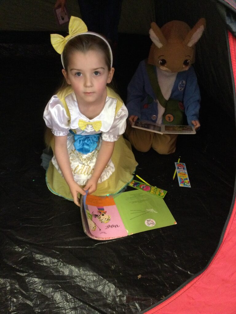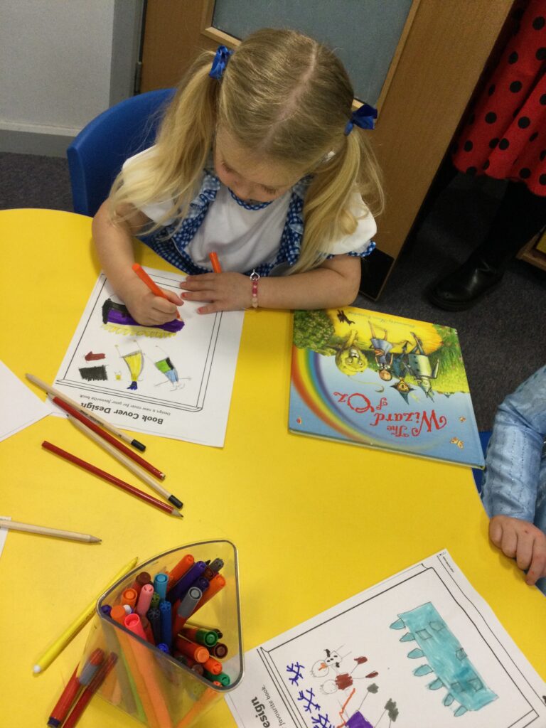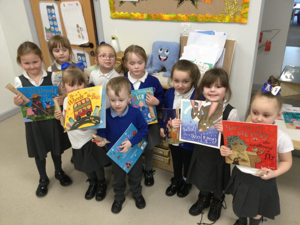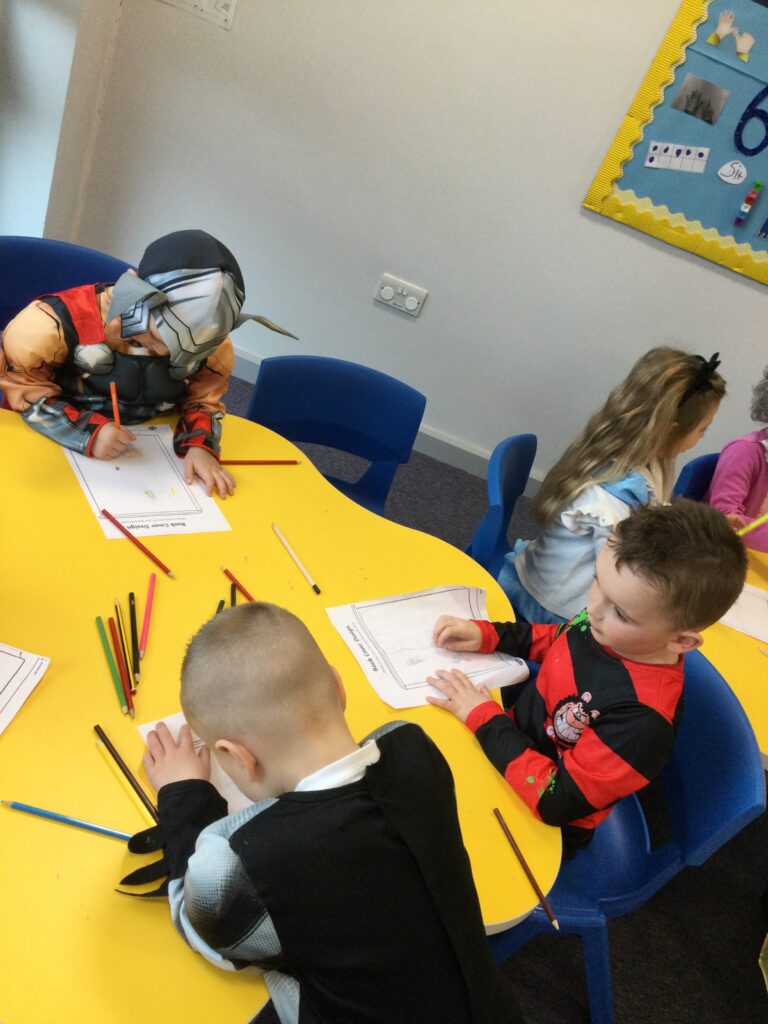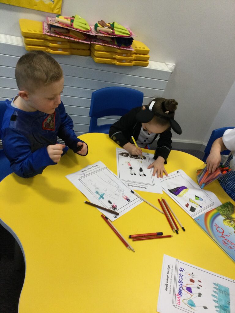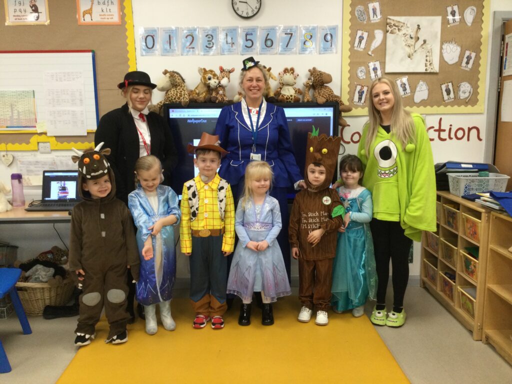 In Reception for World book day we dressed up as a character from our favourite story and brought the book into school to show our friends. Throughout the day we took part in different activities such as drawing and labelling the character we came dressed as, making our own book marks and taking part in story sessions throughout the day. We also read with the year six children, who we very much enjoy spending time with . We went up to the sports hall where there was a ‘world book day fayre’ at the fayre we made and decorated our own biscuits to eat whilst reading books we purchased in the reading den.