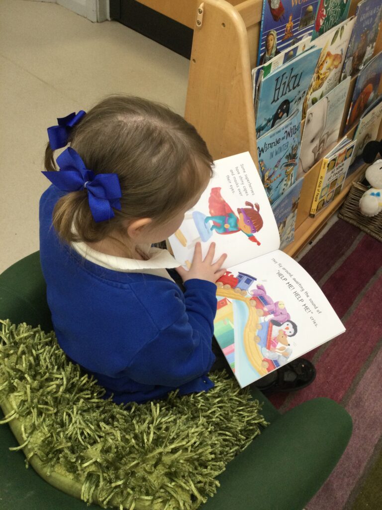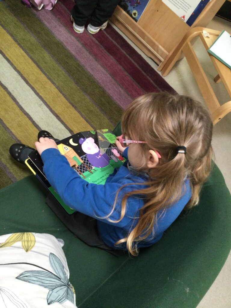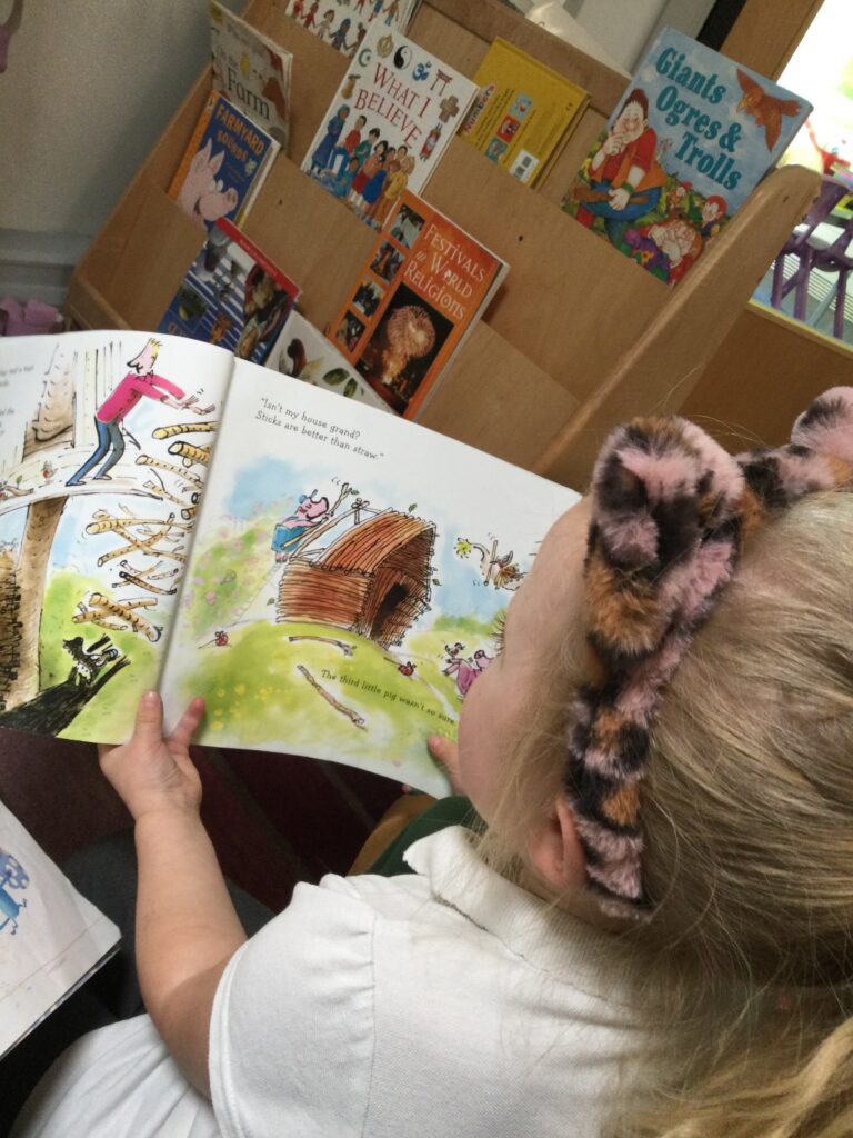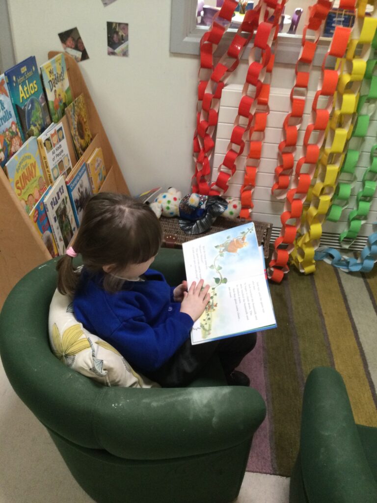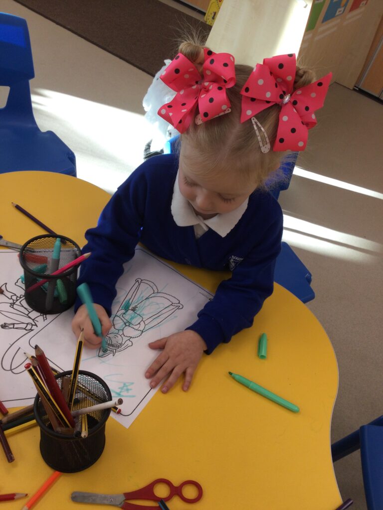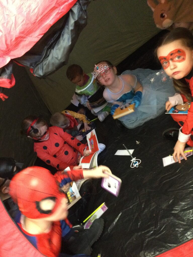 In Reception for World book day we dressed up as a character from our favourite story and brought the book into school to show our friends. Throughout the day we took part in different activities such as drawing and labelling the character we came dressed as, making our own book marks and taking part in story sessions throughout the day. We also read with the year six children, who we very much enjoy spending time with . We went up to the sports hall where there was a ‘world book day fayre’ at the fayre we made and decorated our own biscuits to eat whilst reading books we purchased in the reading den.