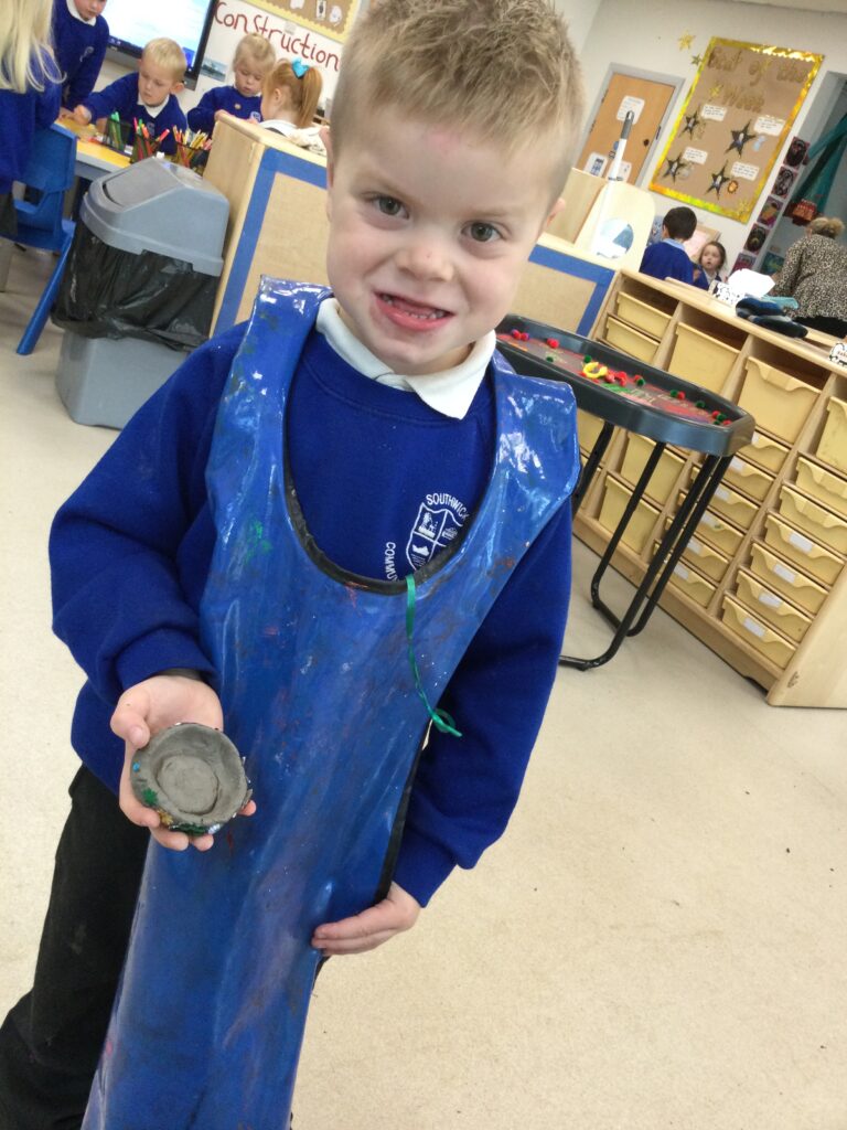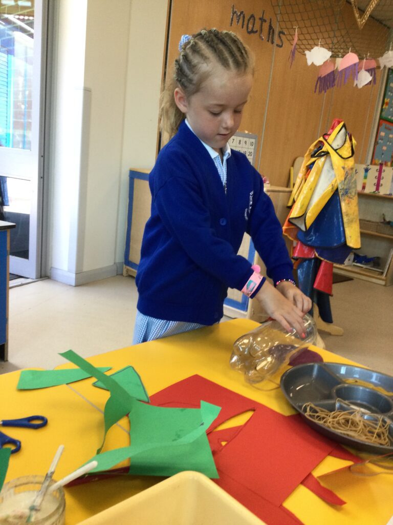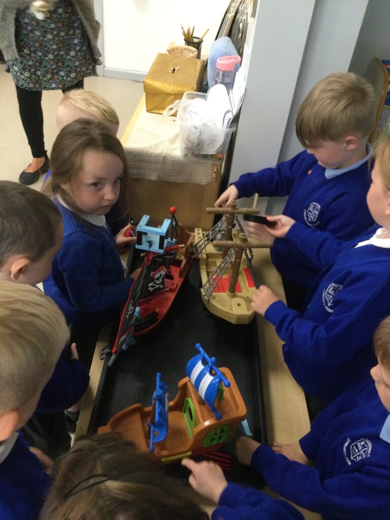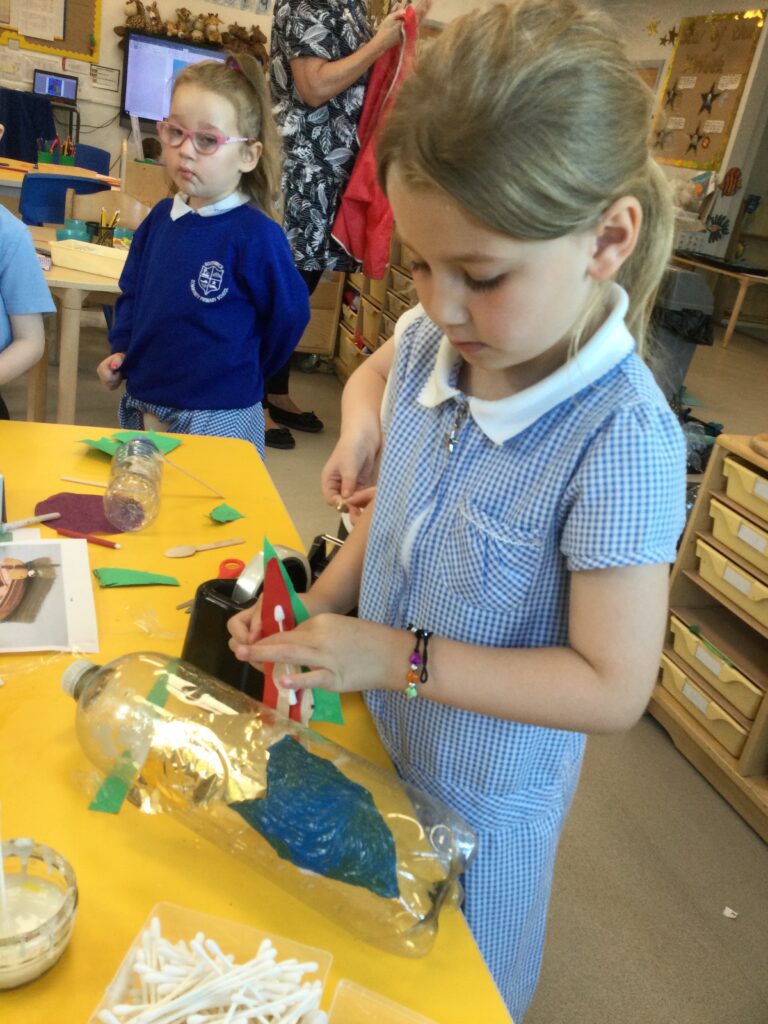 Reception have been learning all about ‘The Tempest’ as part of Shakespeare week. We have been experimenting with different materials and exploring those which are waterproof and those that are not. We have been learning all about William Shakespeare, his life and his work. We have been making our own models of ships using the junk modelling materials and using them to re tell the story of the Tempest. We have been using the small world resources to act out the story of the Tempest and using the story line within our role play narrative.
