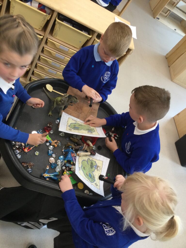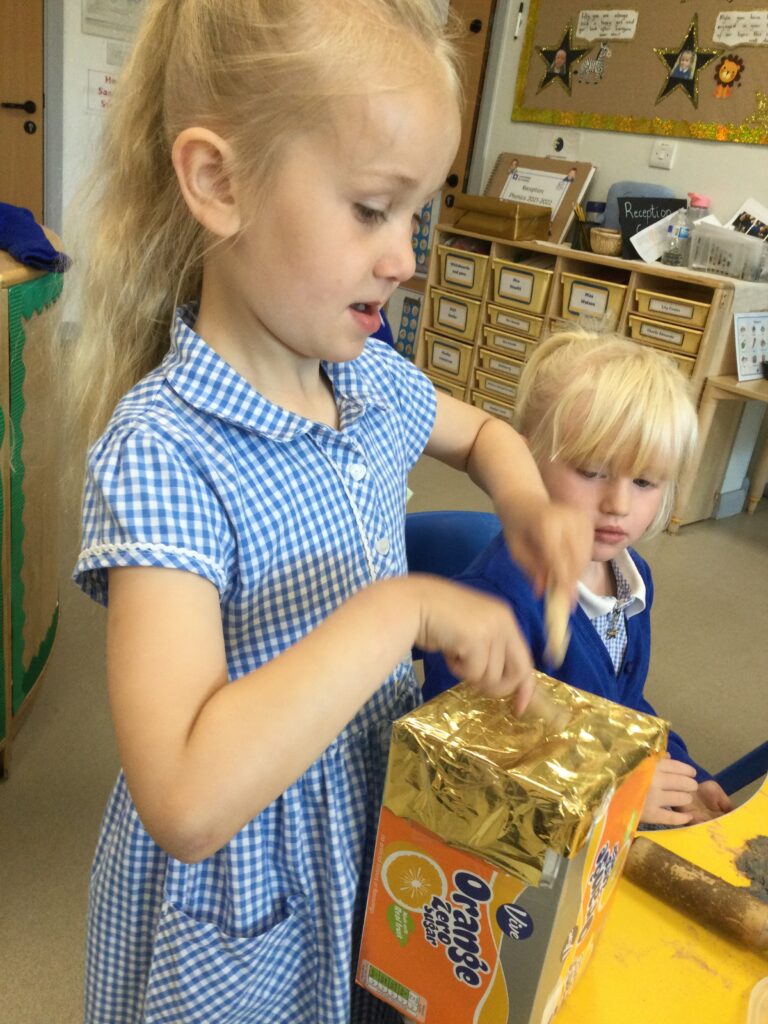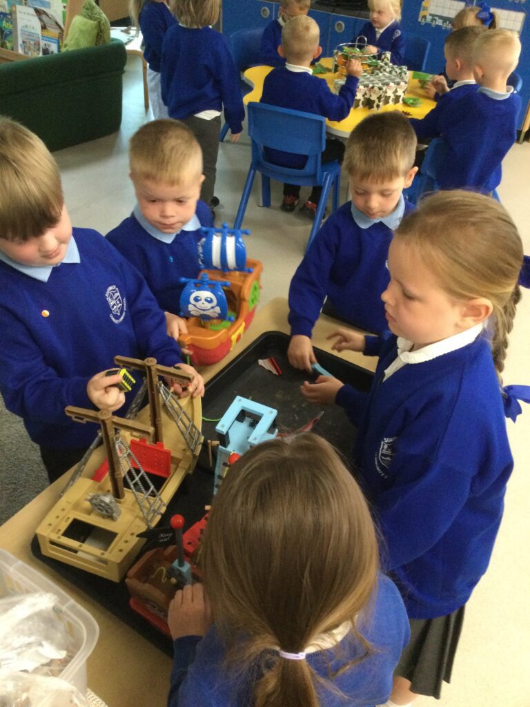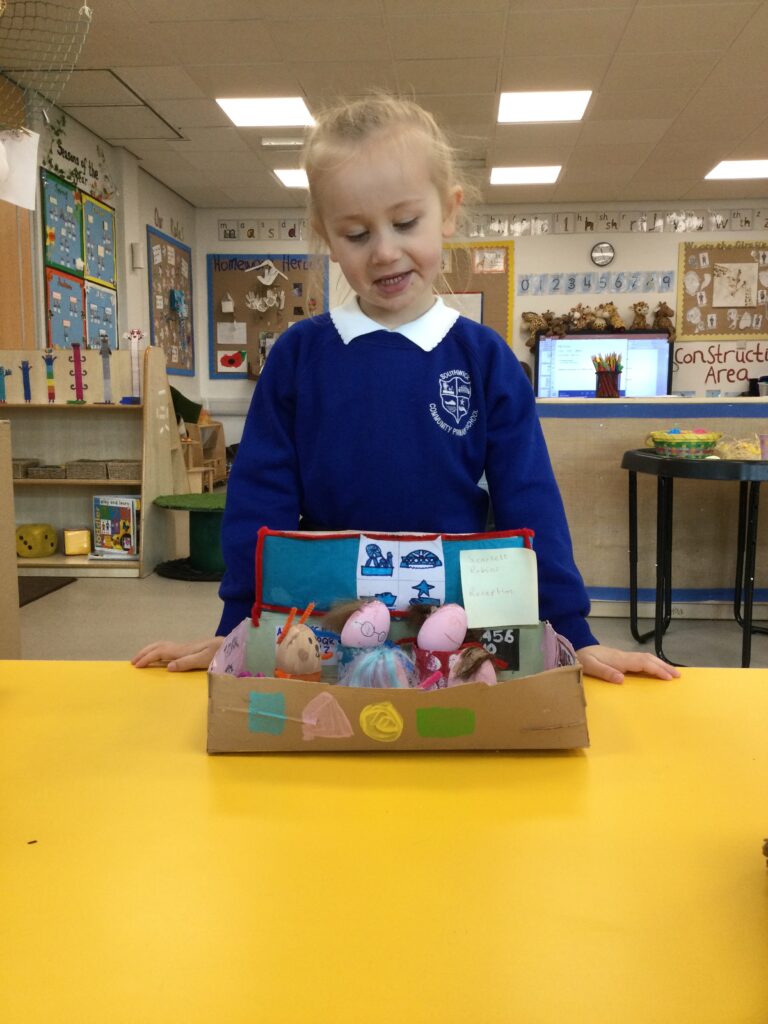 Reception have been learning all about ‘The Tempest’ as part of Shakespeare week. We have been experimenting with different materials and exploring those which are waterproof and those that are not. We have been learning all about William Shakespeare, his life and his work. We have been making our own models of ships using the junk modelling materials and using them to re tell the story of the Tempest. We have been using the small world resources to act out the story of the Tempest and using the story line within our role play narrative.