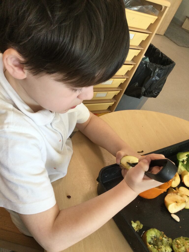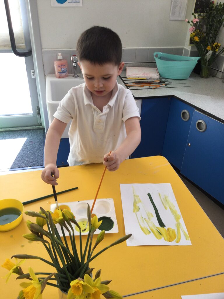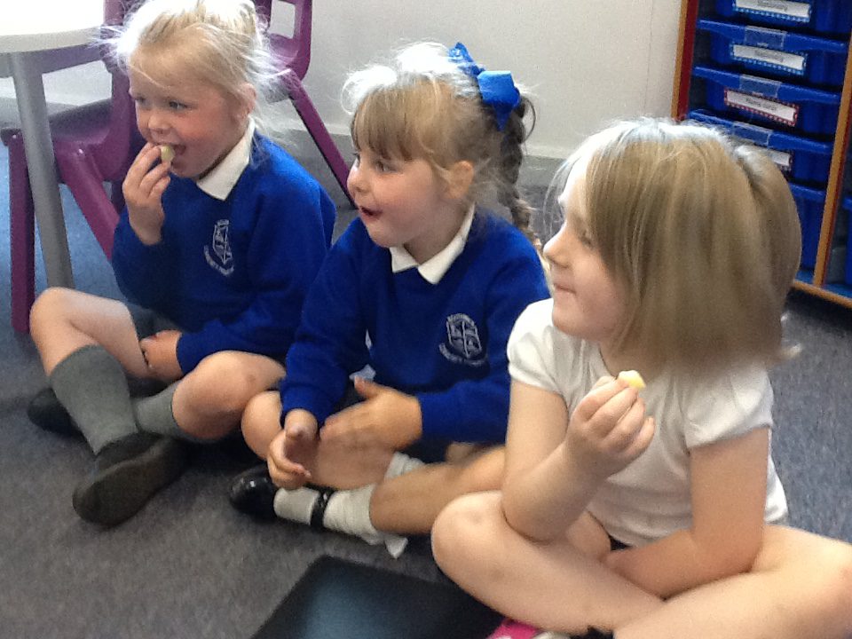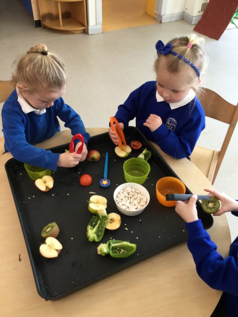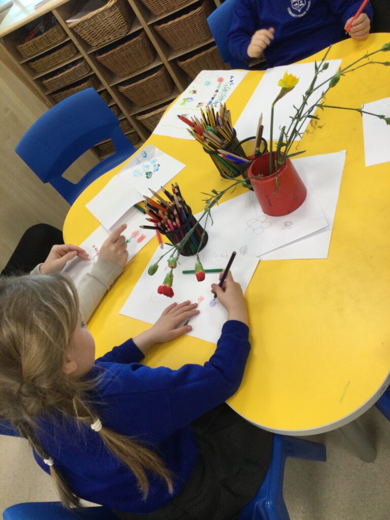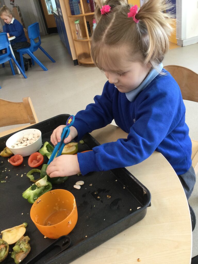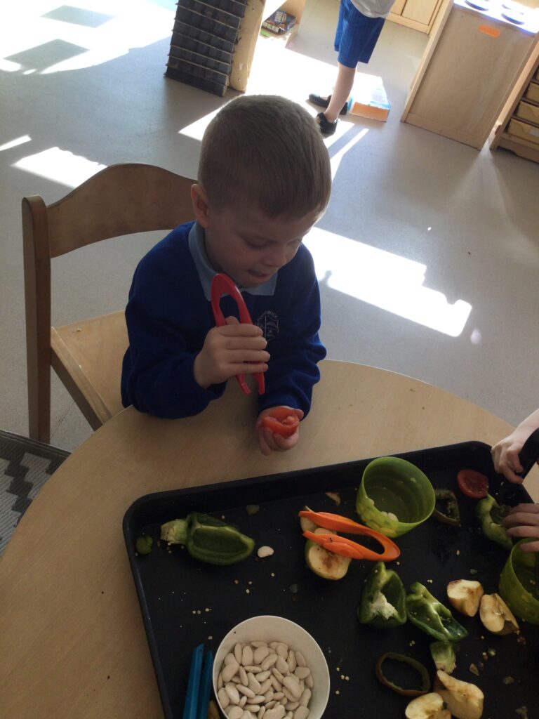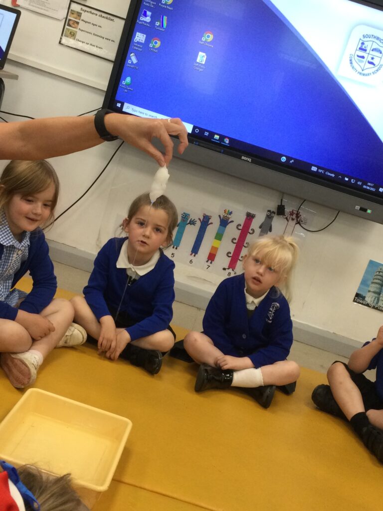This week has been Science week where we have been learning all about growth. We took part in a whole school activity where we had to stretch playdough as far as we could and measured its length using unit cubes as a non standard measure. We also took part in a whole group activity where we had to stretch a curly whurly chocolate bar and compete against the other year groups to see who stretched it the furthest. We looked at and labelled the different parts of the flower and also learned about the life cycle of a flower. We did observational paintings and drawings of various flowers. We also investigated the inside of different fruits and used our fine motor skills to remove the seeds from within. We did some planting outdoors in our gardening area aswell as inside including an experiment where we looked at how plants survive in different conditions. In the tuff tray we explored the roots of the flower and different vegetables and bulbs.