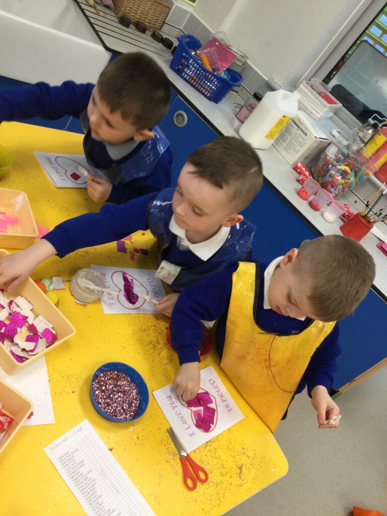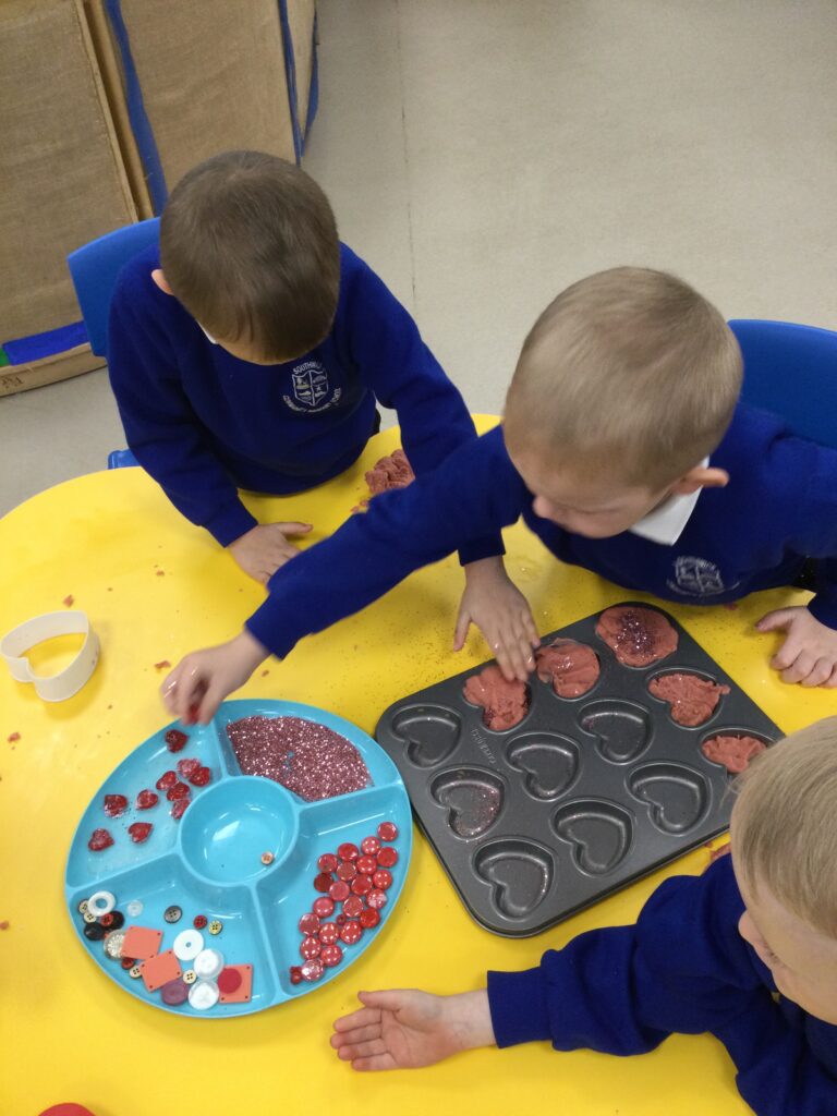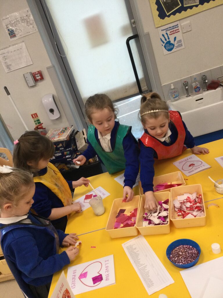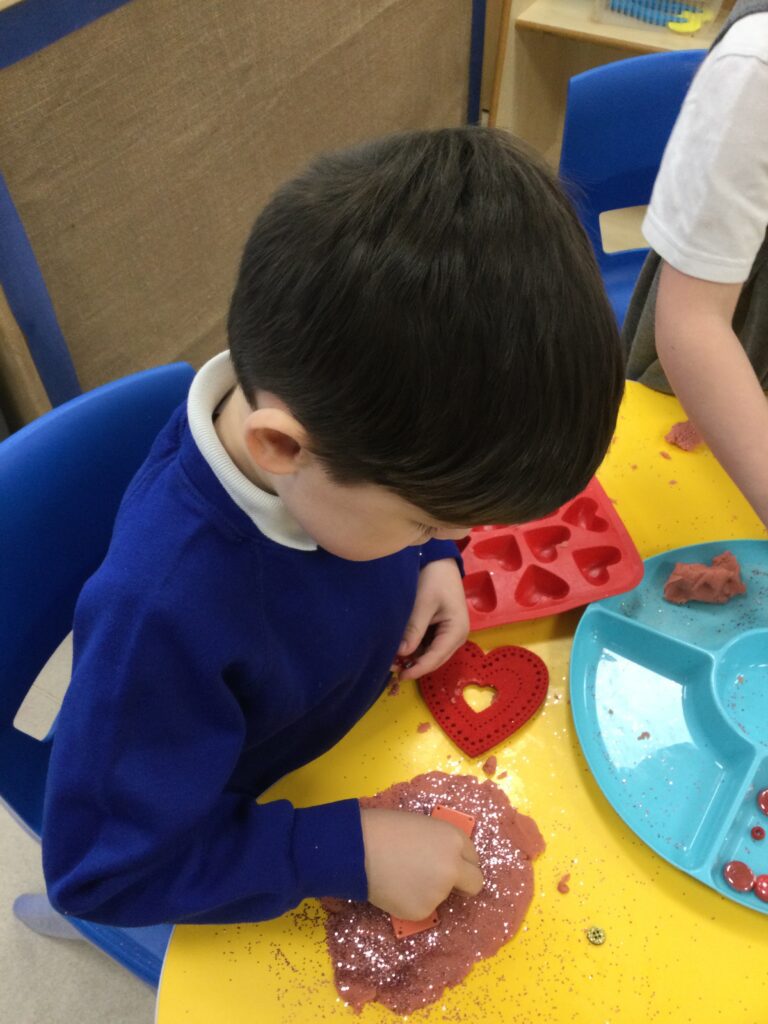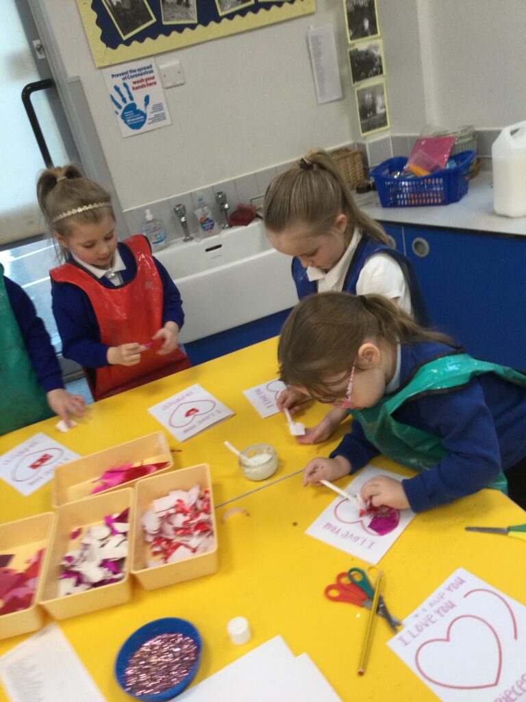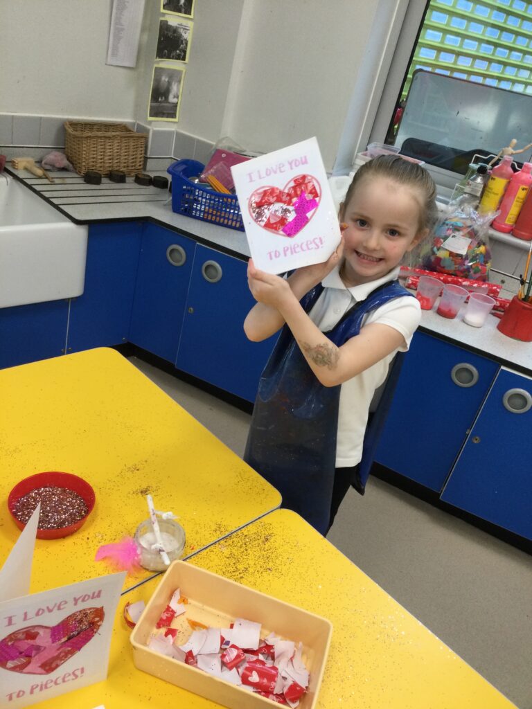 In Reception we have been learning all about the traditions of the celebration ‘Valentines day’ and learning about how it originated. We made valentines day cards for our loved ones and we discussed the ways in which people celebrate valentines day. We participated in a range of Valentines themed activities throughout the day such as Valentines playdough, valentines finger gym activities and valentines crafts. We have had so much fun learning all about the history of Valentines day.