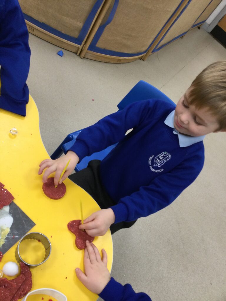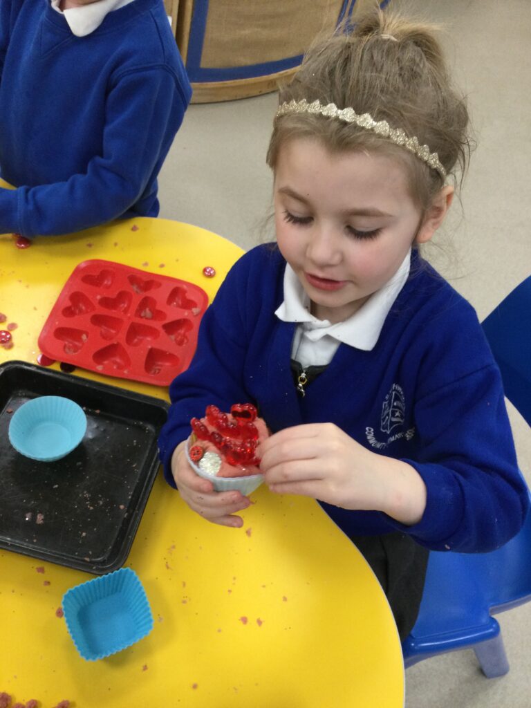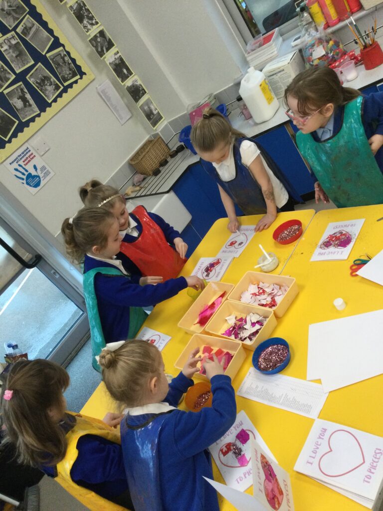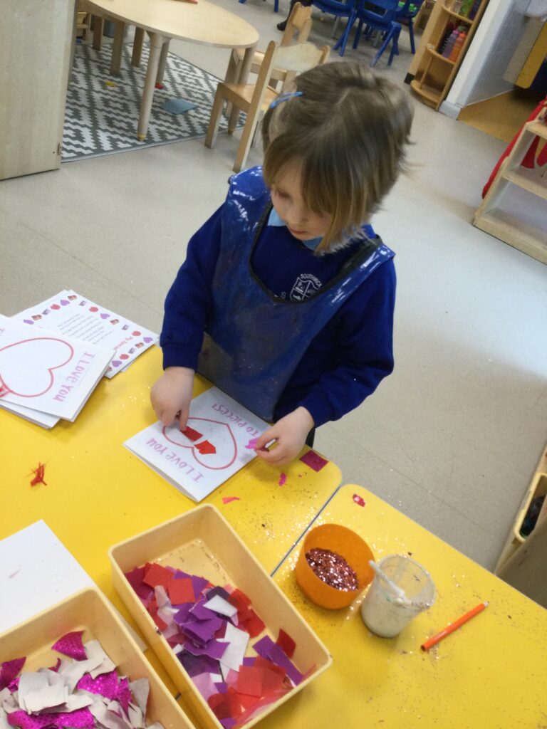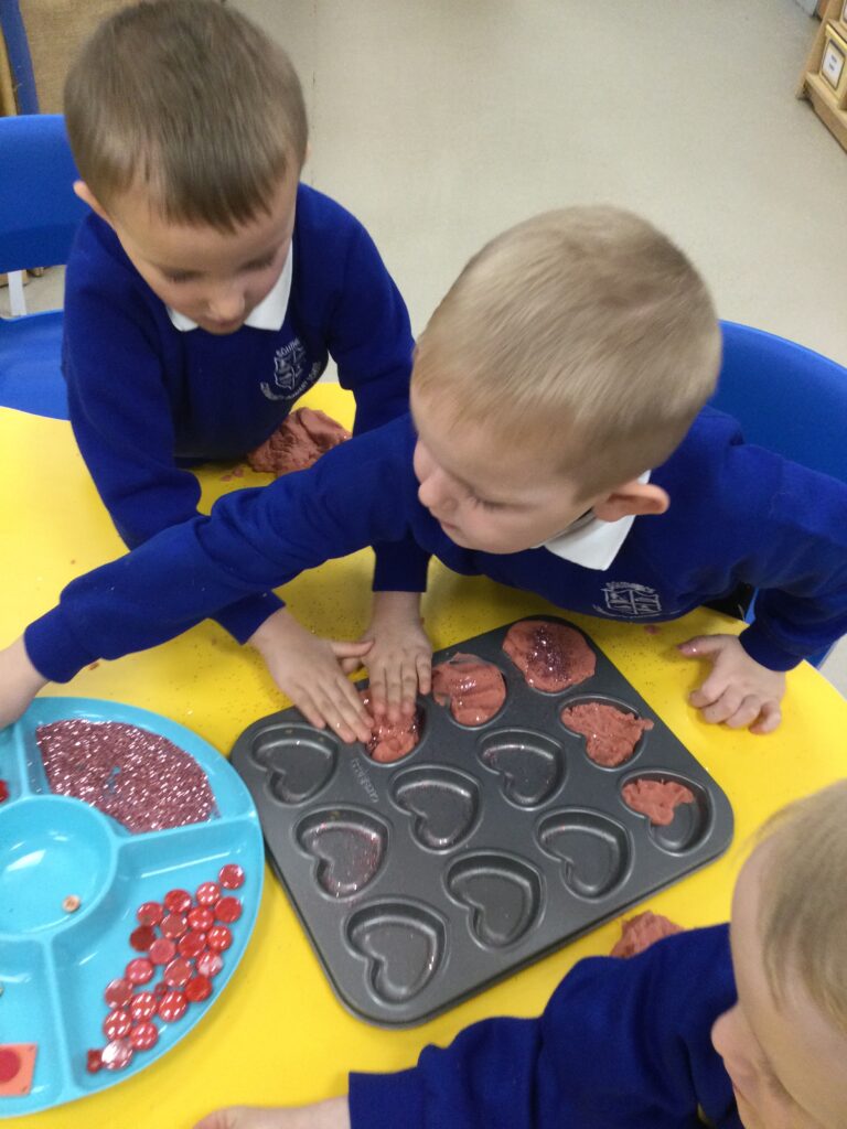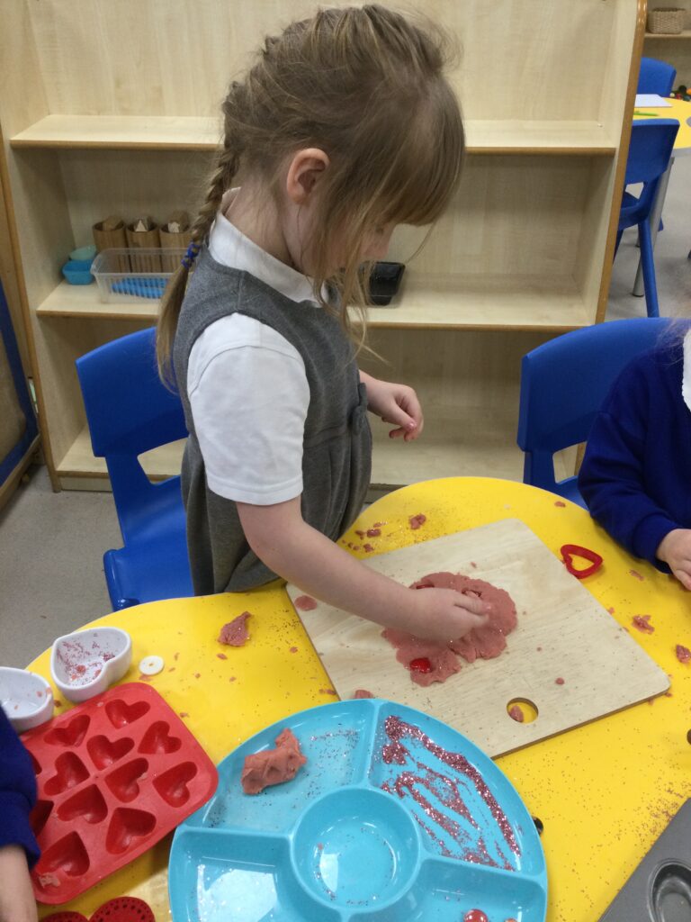In Reception we have been learning all about the traditions of the celebration ‘Valentines day’ and learning about how it originated. We made valentines day cards for our loved ones and we discussed the ways in which people celebrate valentines day. We participated in a range of Valentines themed activities throughout the day such as Valentines playdough, valentines finger gym activities and valentines crafts. We have had so much fun learning all about the history of Valentines day.