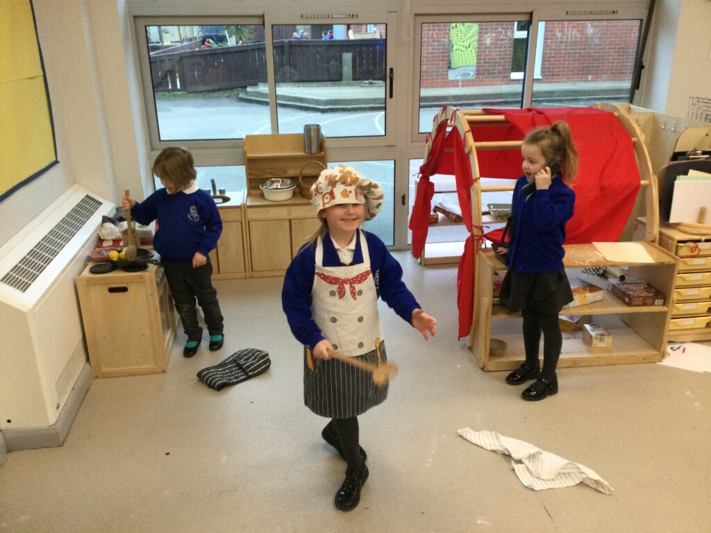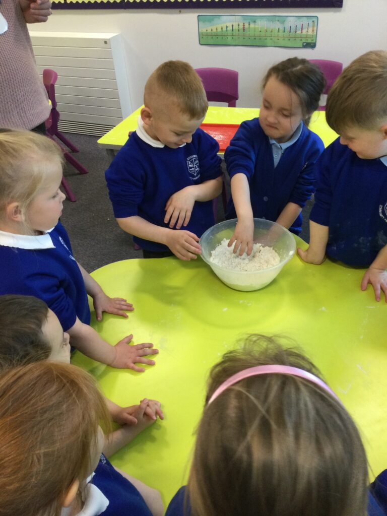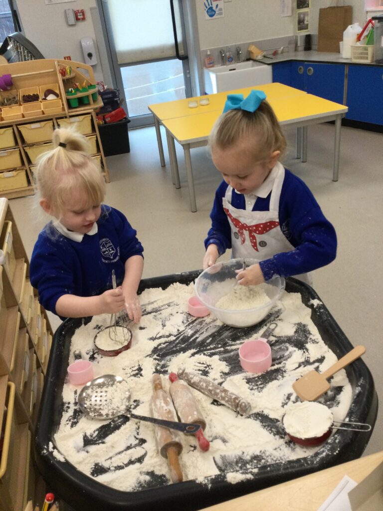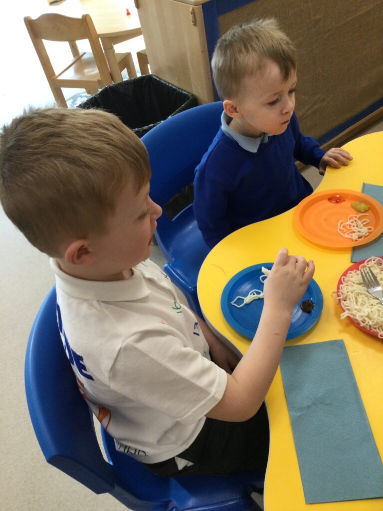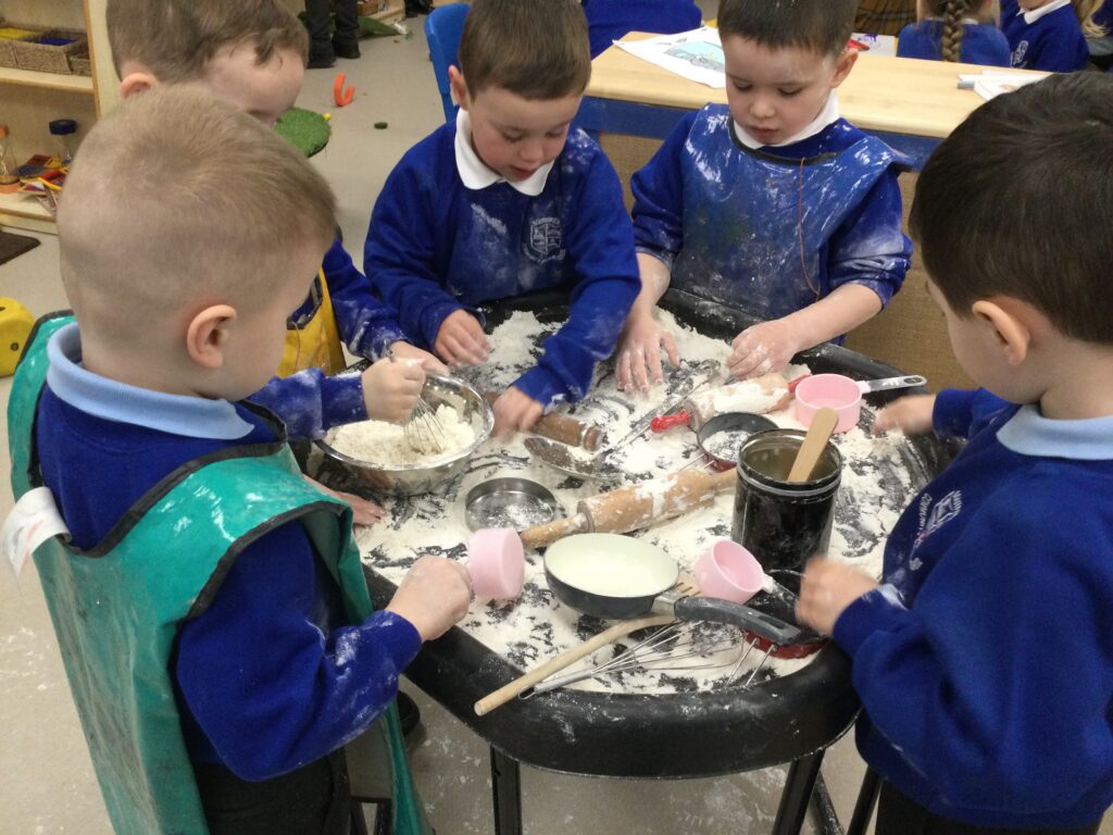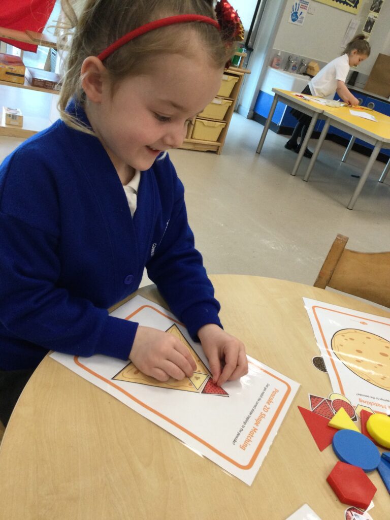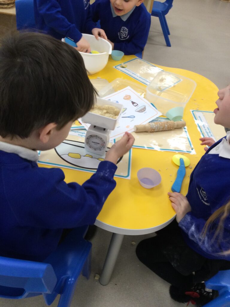 In Reception we have been learning about the traditions of pancake day and engaging in ‘pancake day’ themed activities with a focus around the book ‘Mr Wolves pancakes’. We all taste tested our very own pancakes which we watched and assisted Mrs Pattison in cooking. We all helped Mrs Pattison with the recipe and to choose the correct ingredients we needed to make the pancakes , from there we were able to do a sequencing task where we had to put the pictures in the correct order. In the tuff tray we explored the different utensils with the flour and we used them to make pancakes like Mr wolf from the story. We also made pancakes in the mud kitchen outside !. We used the scales to weigh and measure out ingredients in the playdough area and then used playdough mats and other tools to make toppings for our pancakes which we served to our friends. In the reading area we enjoyed re-telling the story to our friends and also reading the story with our teachers. We wrote shopping lists in the writing area like the one from the story. We also coloured in and drew different characters from the story. We made our very own ‘runaway pancake man’ in the creative area using a range of different materials. In the maths area we took part in a counting activity where we placed the correct amounts of toppings on top of the pancake and we also completed a shape matching activity where we had to recognise , name and correctly match the different shapes. We have had so much fun learning all about Pancake day and the story of Shrove Tuesday.