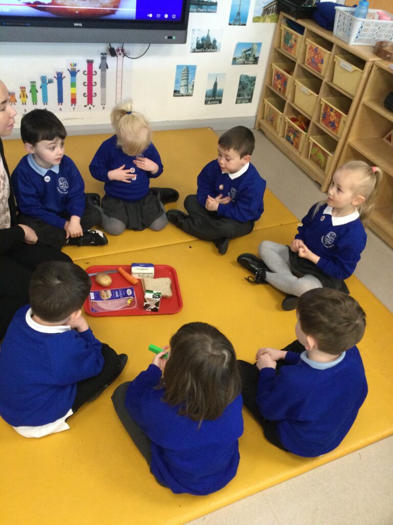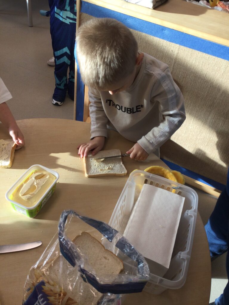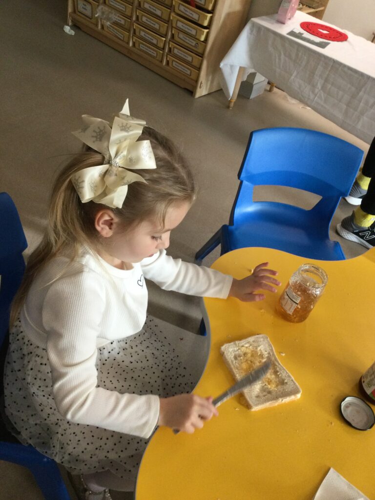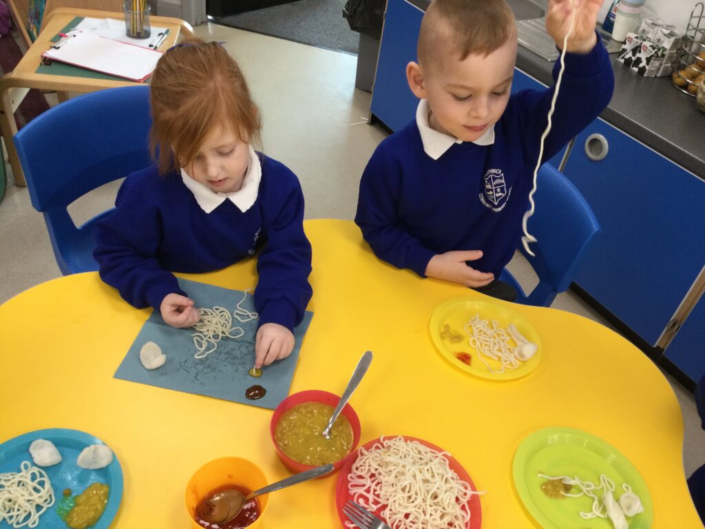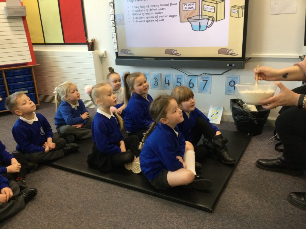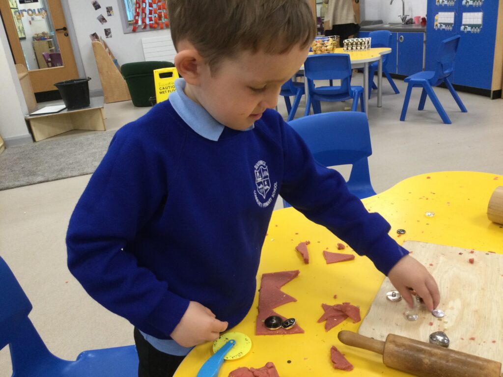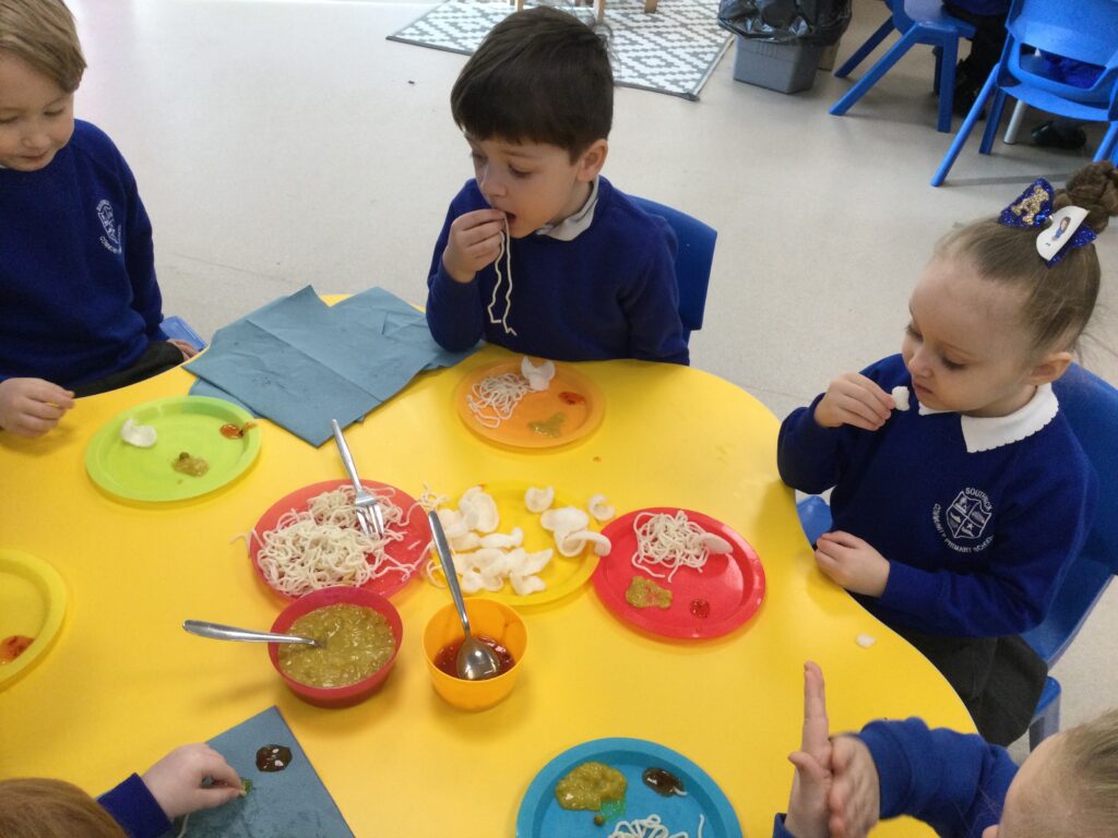 In Reception we have been learning about the traditions of pancake day and engaging in ‘pancake day’ themed activities with a focus around the book ‘Mr Wolves pancakes’. We all taste tested our very own pancakes which we watched and assisted Mrs Pattison in cooking. We all helped Mrs Pattison with the recipe and to choose the correct ingredients we needed to make the pancakes , from there we were able to do a sequencing task where we had to put the pictures in the correct order. In the tuff tray we explored the different utensils with the flour and we used them to make pancakes like Mr wolf from the story. We also made pancakes in the mud kitchen outside !. We used the scales to weigh and measure out ingredients in the playdough area and then used playdough mats and other tools to make toppings for our pancakes which we served to our friends. In the reading area we enjoyed re-telling the story to our friends and also reading the story with our teachers. We wrote shopping lists in the writing area like the one from the story. We also coloured in and drew different characters from the story. We made our very own ‘runaway pancake man’ in the creative area using a range of different materials. In the maths area we took part in a counting activity where we placed the correct amounts of toppings on top of the pancake and we also completed a shape matching activity where we had to recognise , name and correctly match the different shapes. We have had so much fun learning all about Pancake day and the story of Shrove Tuesday.