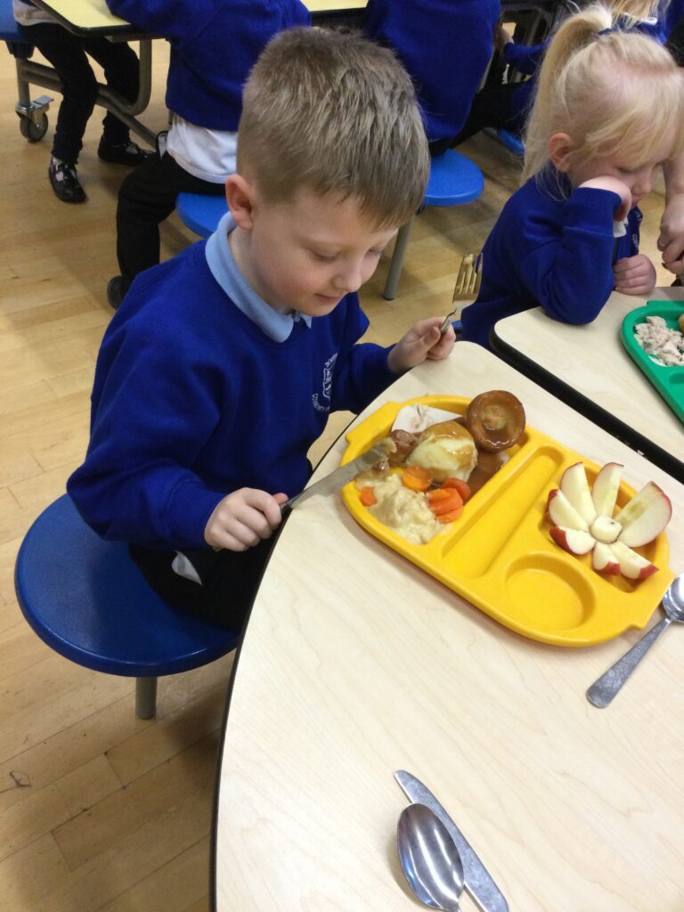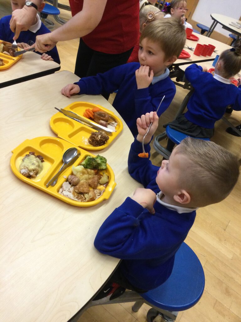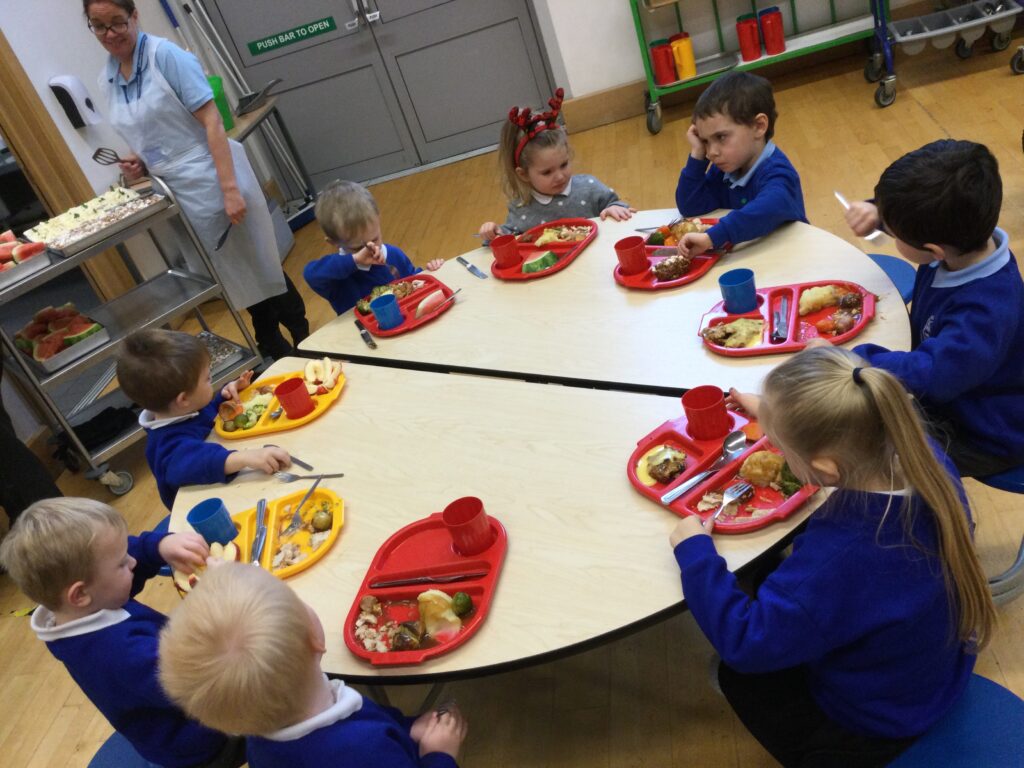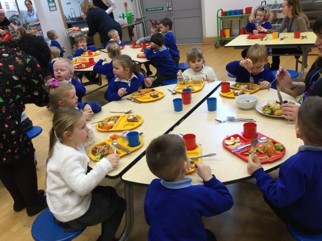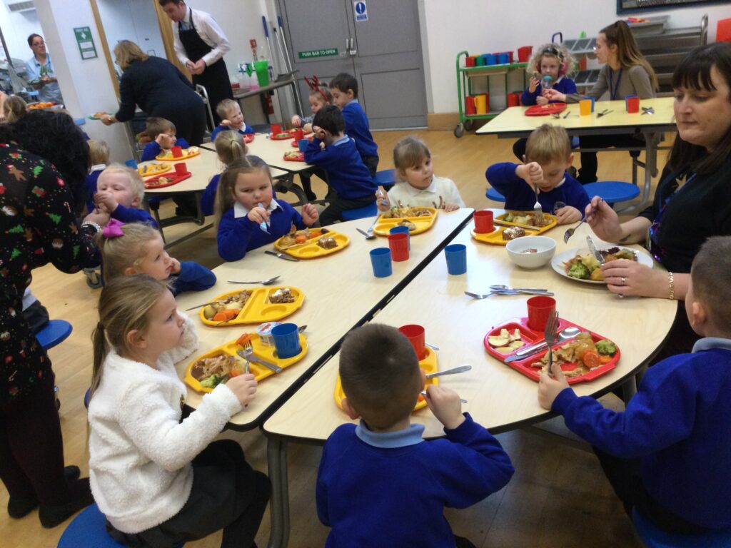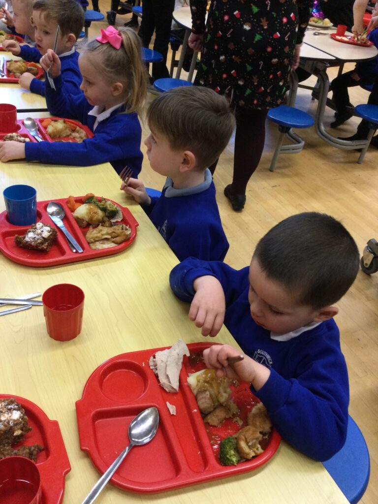 On the 8th of December the whole school enjoyed their Christmas dinner. In Reception we loved having our Christmas dinner with all our class friends and our teachers. We all sat down to eat together and enjoyed the delicious food while we spoke about how excited we all are for Christmas and what we hope Santa Claus will bring us.