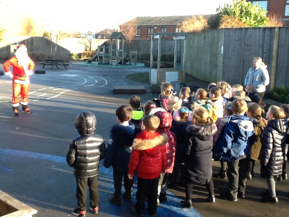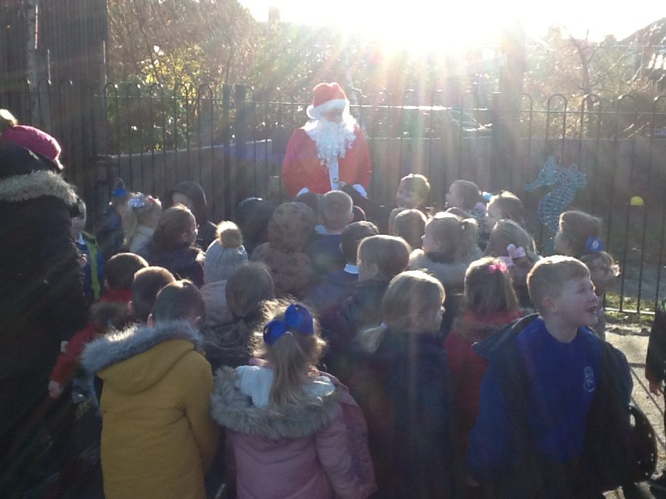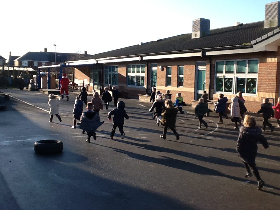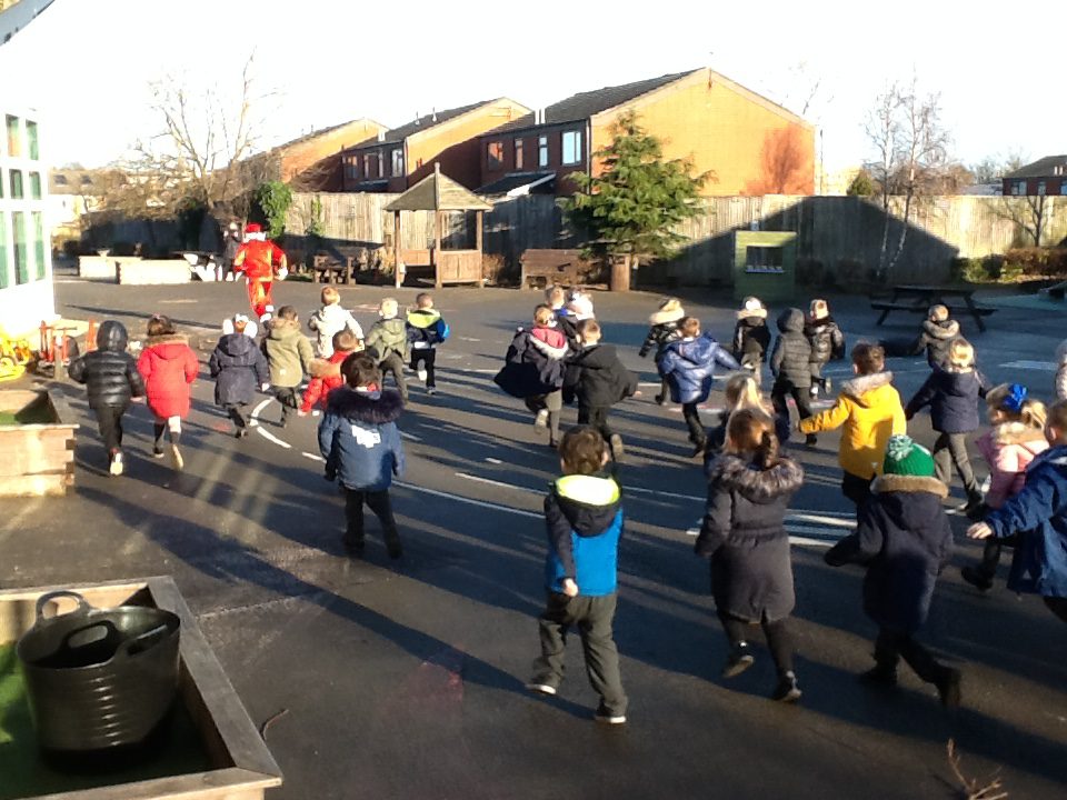 On Friday the 10th of December Reception took part in a Santa Dash in school. We were so excited to have Santa Claus in our school and we all enjoyed chasing after him and meeting him. We were all so tired after all the running we did! Thank you Santa Claus for coming to our school.