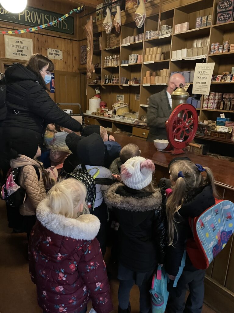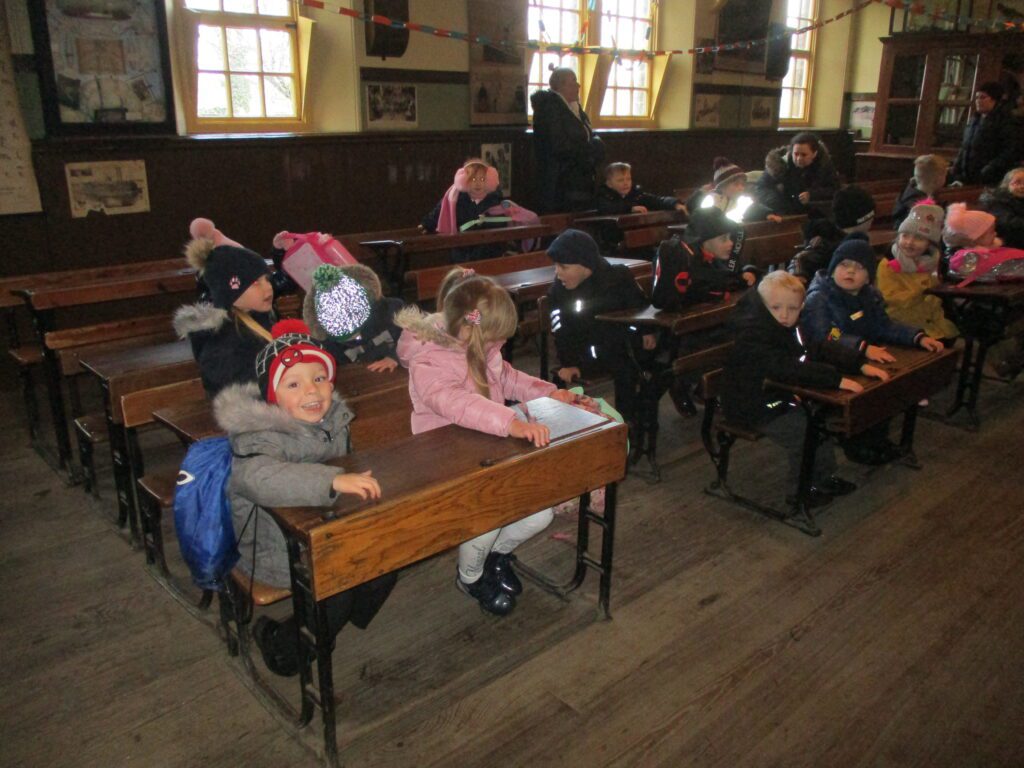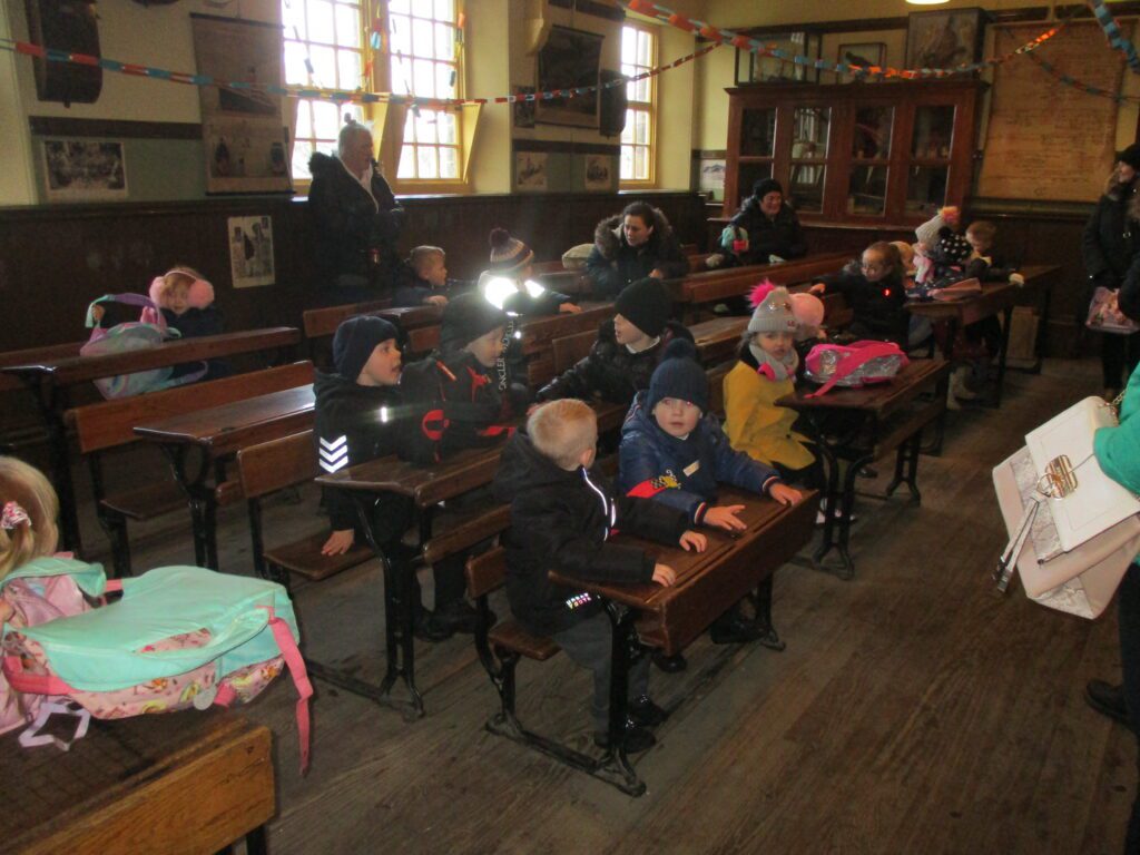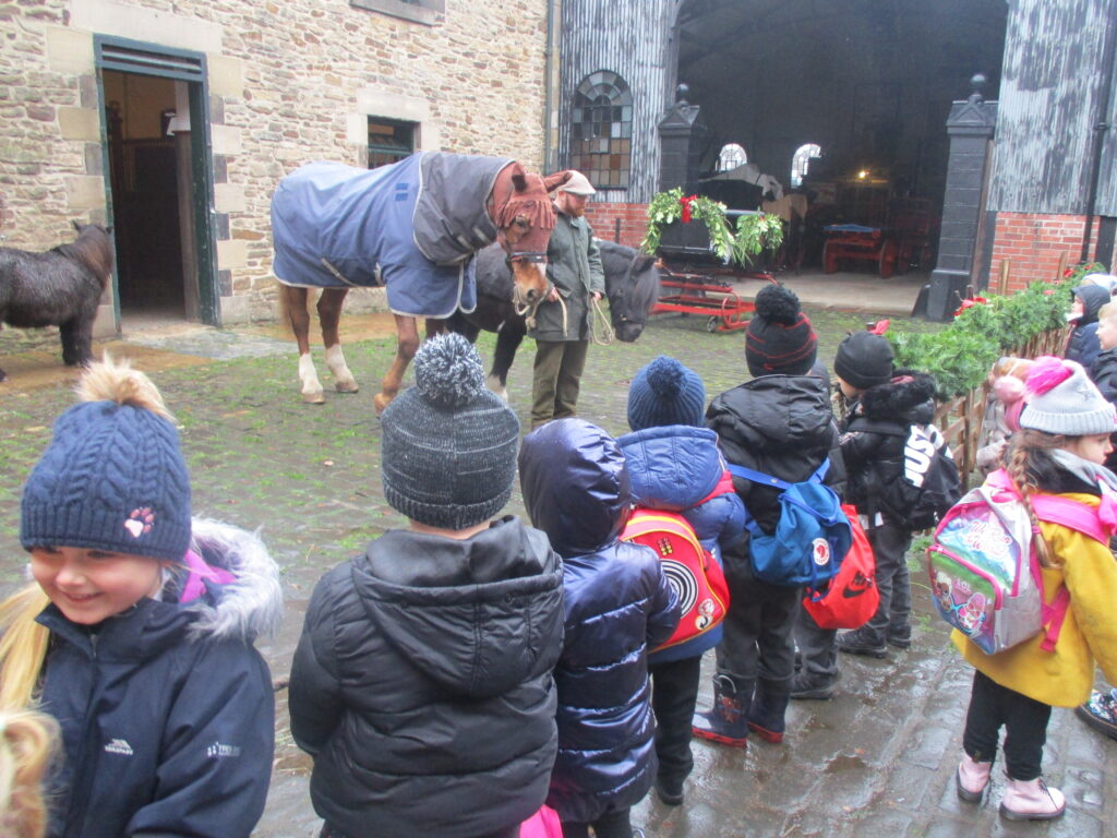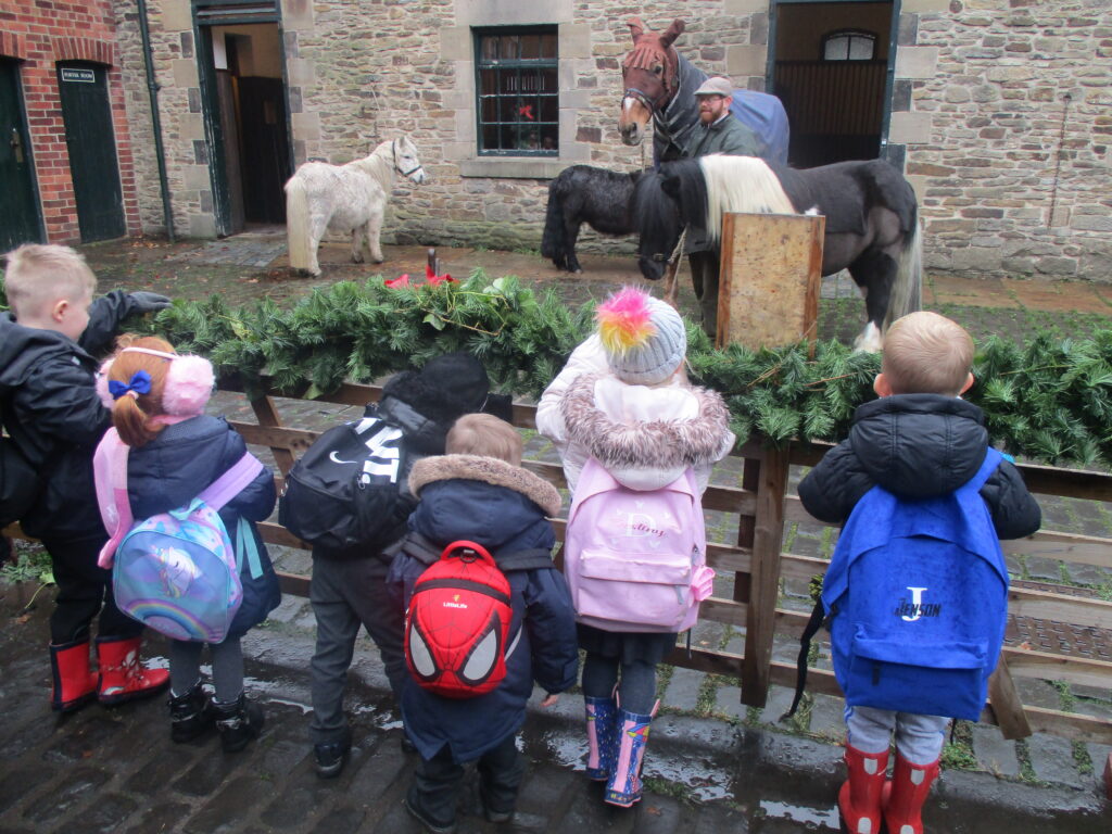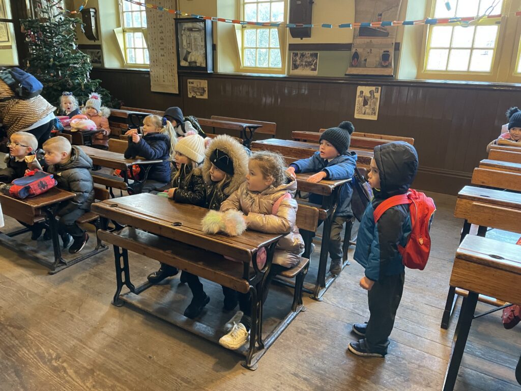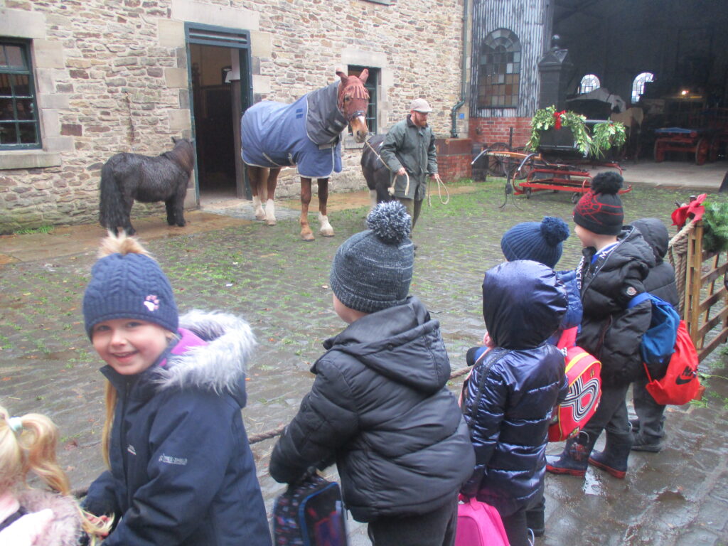 This week Reception have been on a school trip to Beamish. We met and received a gift from Santa. We visited the school and compared what schools were like in the past in comparison to now. We visited the church, the town, shops , saw ponies and visited the old fashioned houses. We rode on the tram and discussed how transport has changed throughout the years. We played with toys from the past in the old school yard and met very interesting people who taught us lots of facts about the past, showing us what they wore and teaching us about how they lived. We had an amazing time meeting Santa and learning lots of facts about the past.