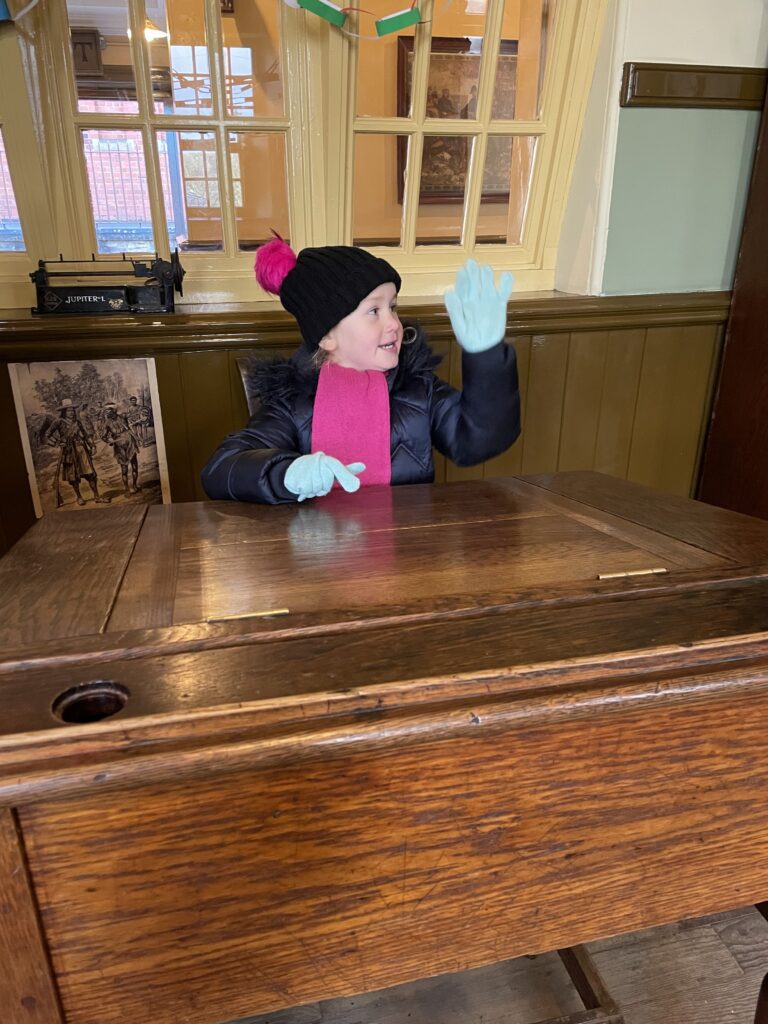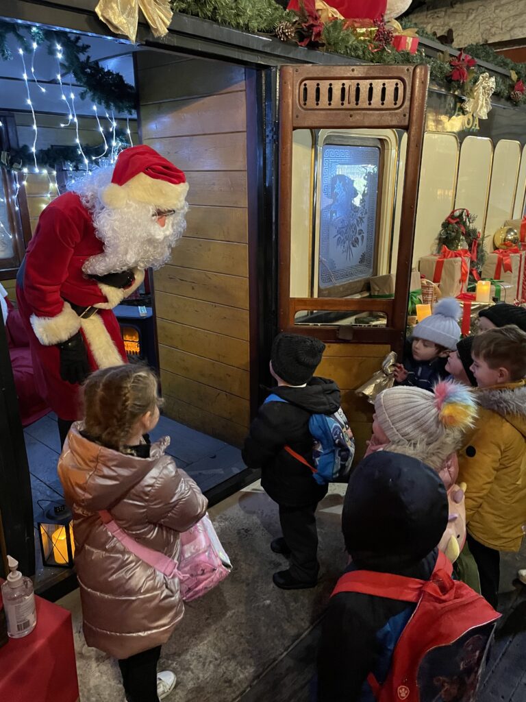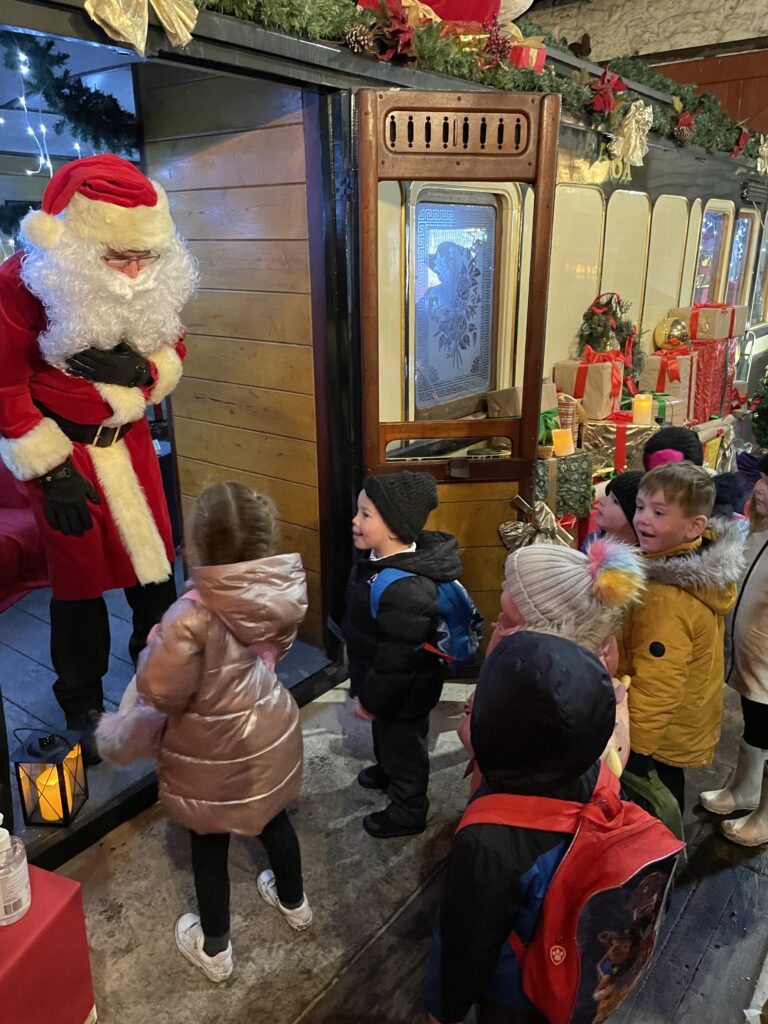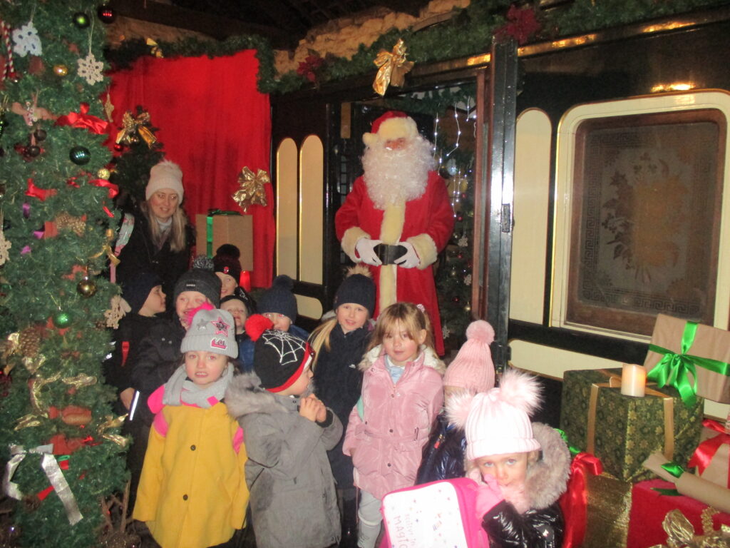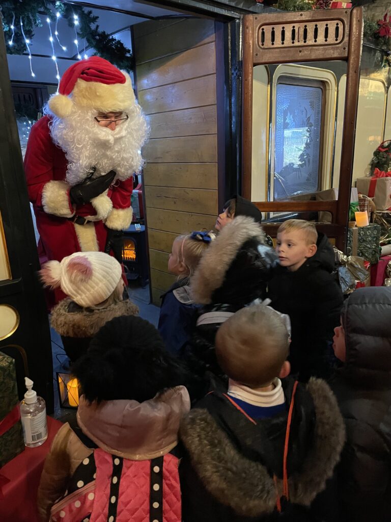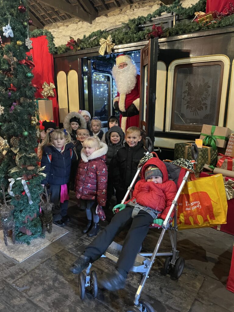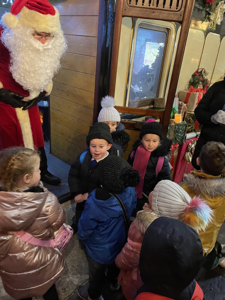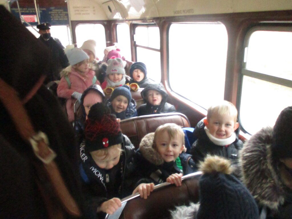 This week Reception have been on a school trip to Beamish. We met and received a gift from Santa. We visited the school and compared what schools were like in the past in comparison to now. We visited the church, the town, shops , saw ponies and visited the old fashioned houses. We rode on the tram and discussed how transport has changed throughout the years. We played with toys from the past in the old school yard and met very interesting people who taught us lots of facts about the past, showing us what they wore and teaching us about how they lived. We had an amazing time meeting Santa and learning lots of facts about the past.