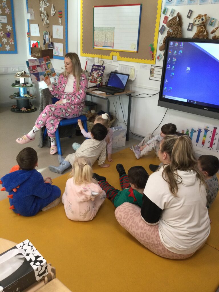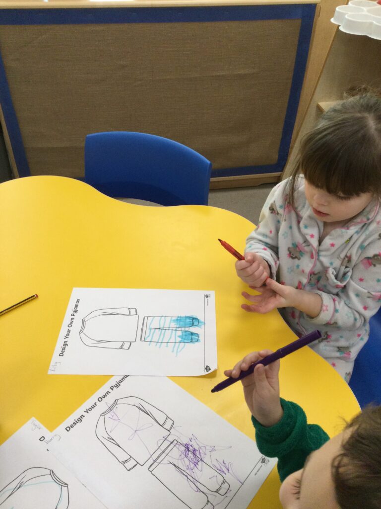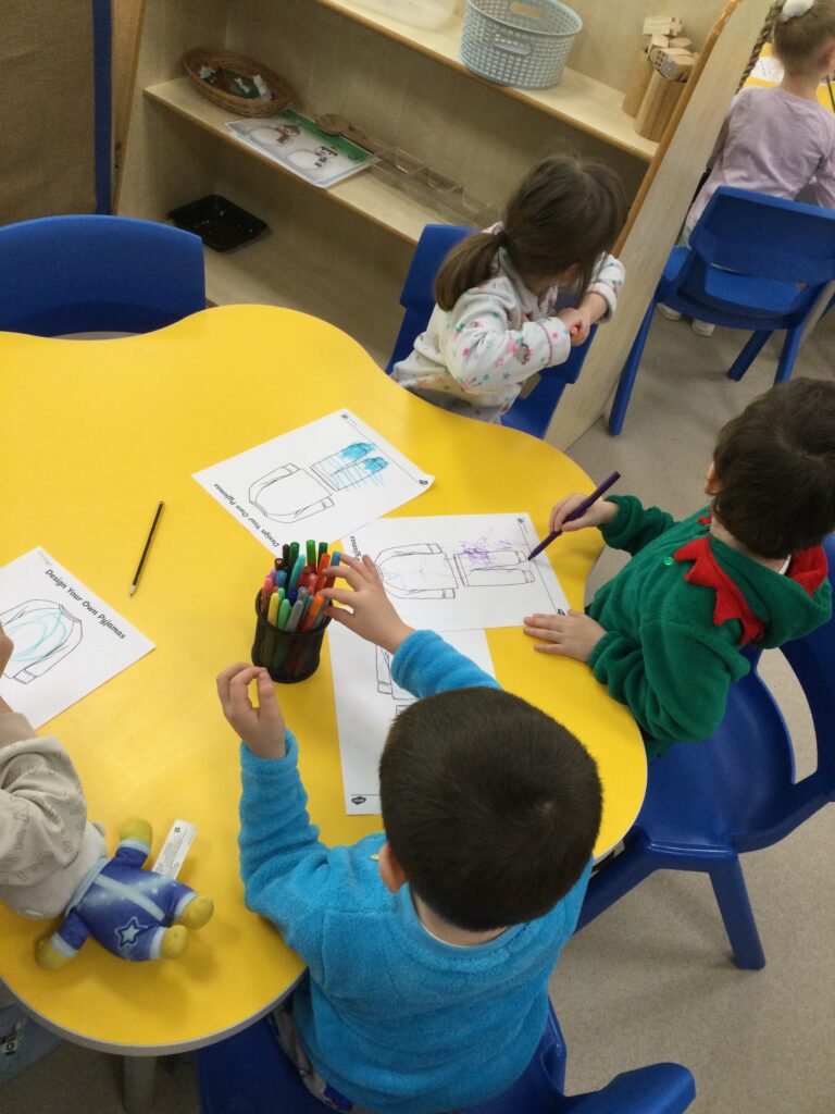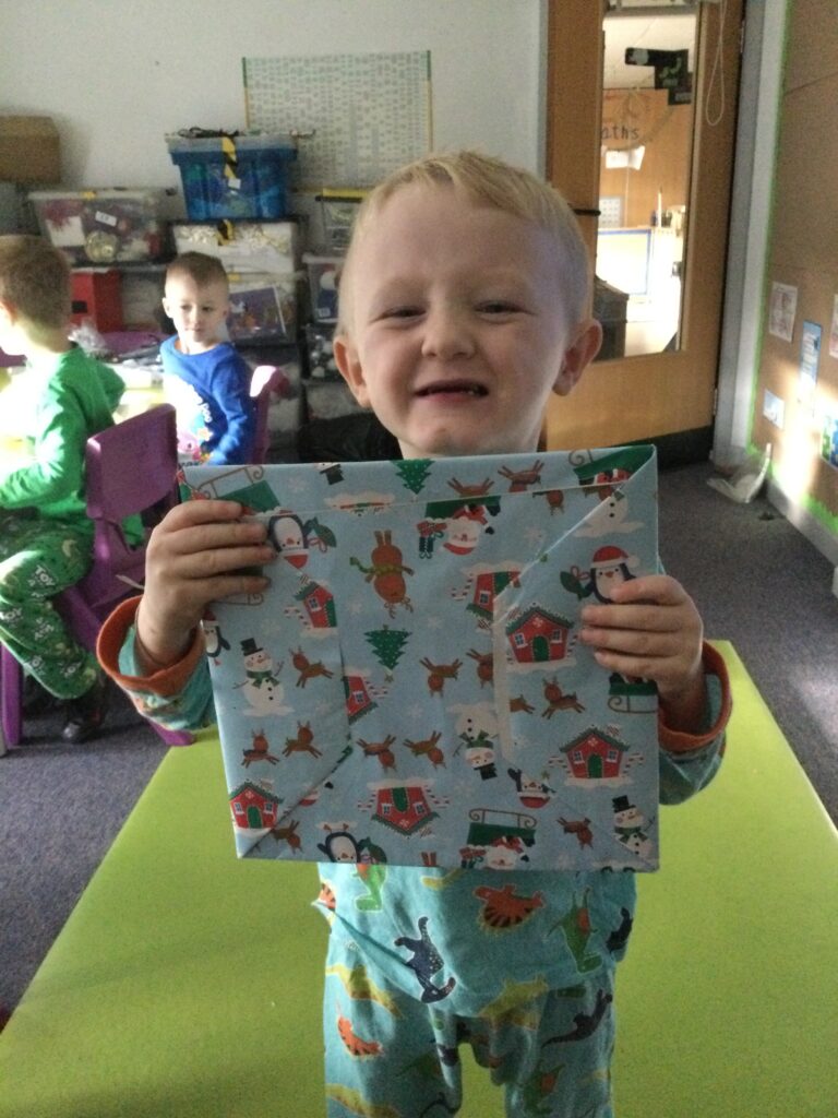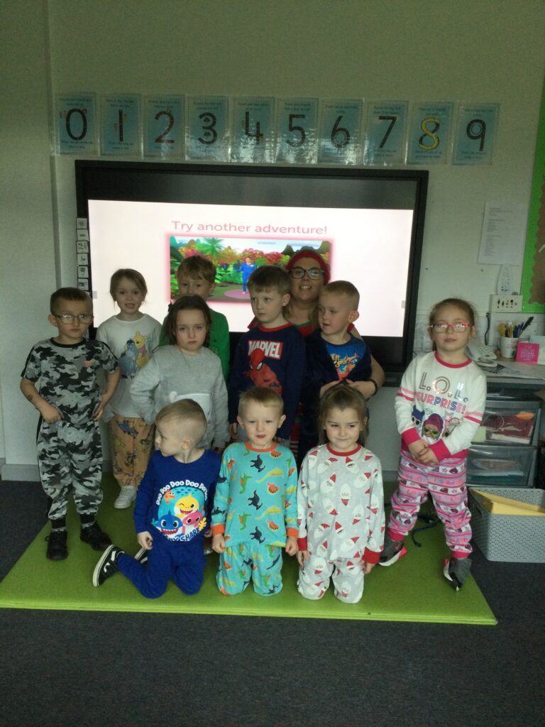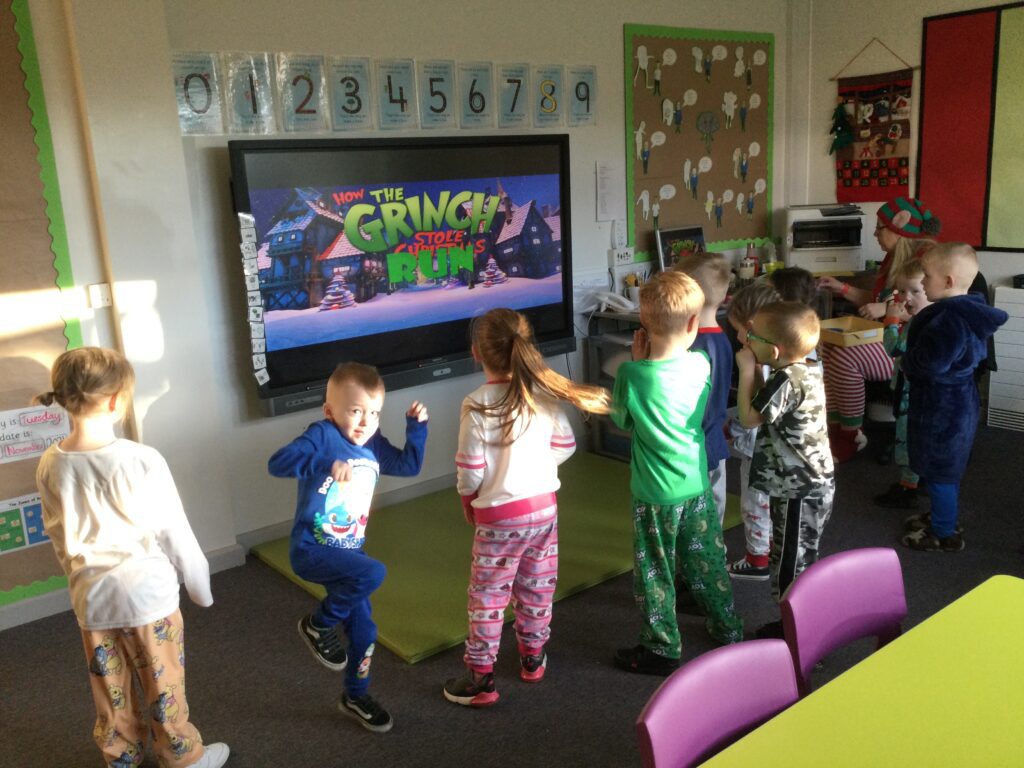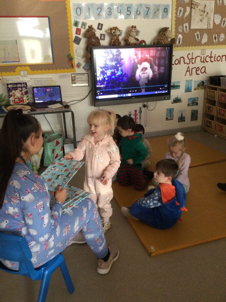 Reception had so much fun coming to school dressed in their pyjamas. They felt so cosy whilst watching films and having lots of yummy treats. We had hot chocolate and popcorn whilst we enjoyed the film and snuggled up under cosy blankets. They designed their very own pair of pyjamas using a range of colours and patterns, they also took part in interactive games such as ‘ The Grinch run’. Throughout the day we played lots of fun games such as ‘pyjama snap’, we read Christmas stories and enjoyed watching our special message sent from Santa Claus in the North pole. At the end of the day we received a present from Santa and we were all so excited to open it ! This was such a lovely day.