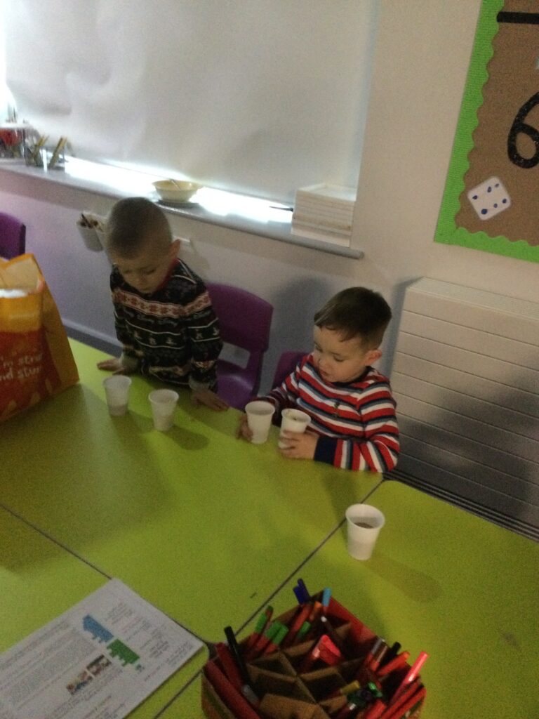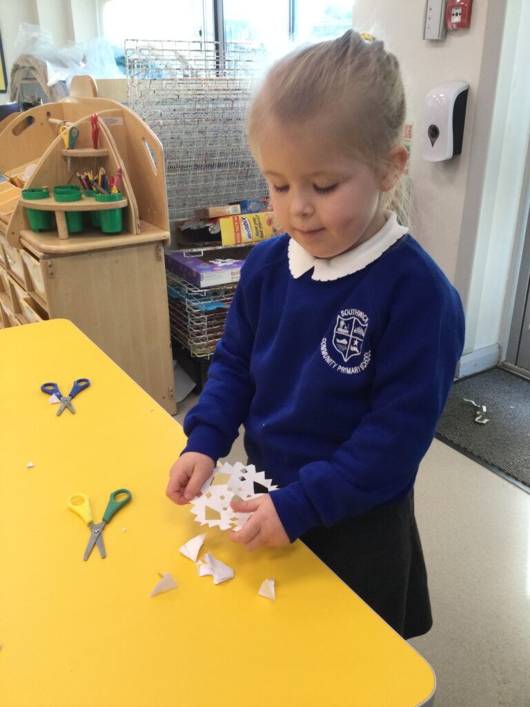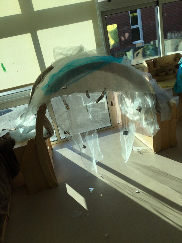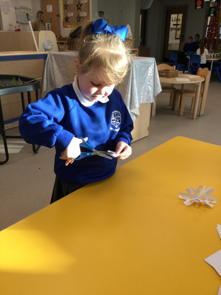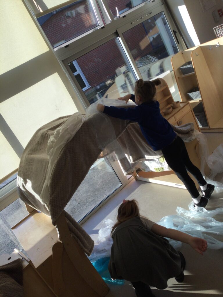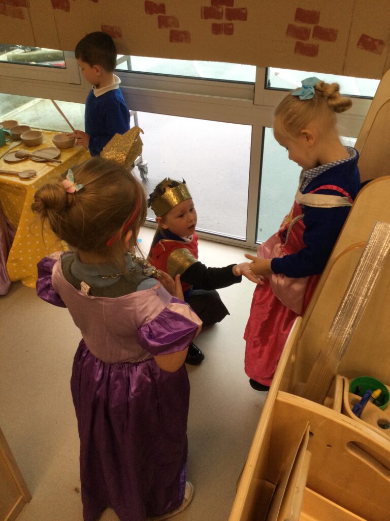 This week we have continued our learning about Winter with a focus on the traditional tale, “The Snow Queen”. We have been reading the story in group time, focusing on the characters and the story line. From this we made our own castle in our role play area, using different materials. The children decided how they wanted it to look and did this independently. We made some ice cubes from junk modelling to add to our castle, we made some snowflakes and icicles to add on. We enjoyed dressing up as the snow queen and acting out the story in our play. In the provision we looked at some ice, exploring how to make it melt and discussing how it feels using lots of vocabulary and making links to winter