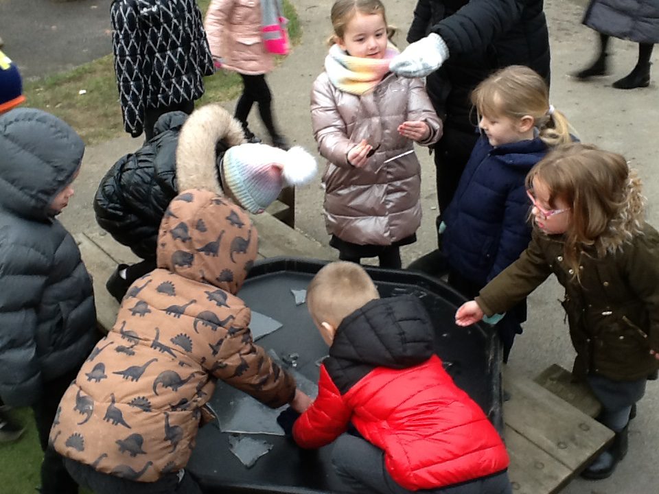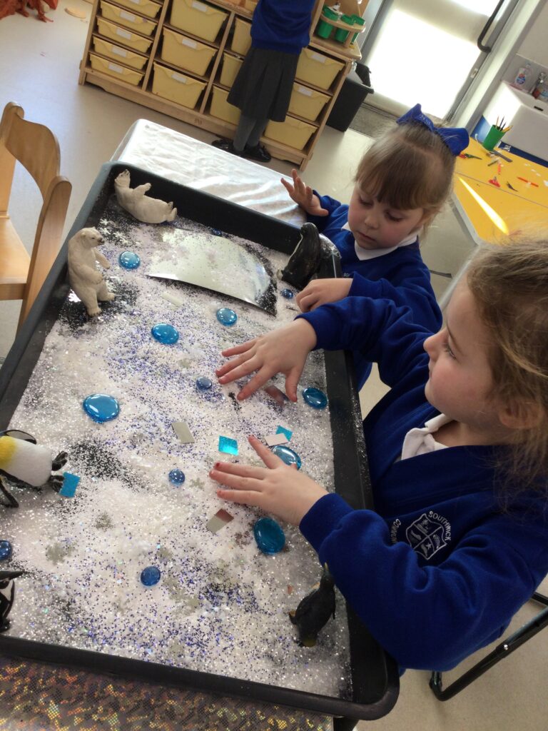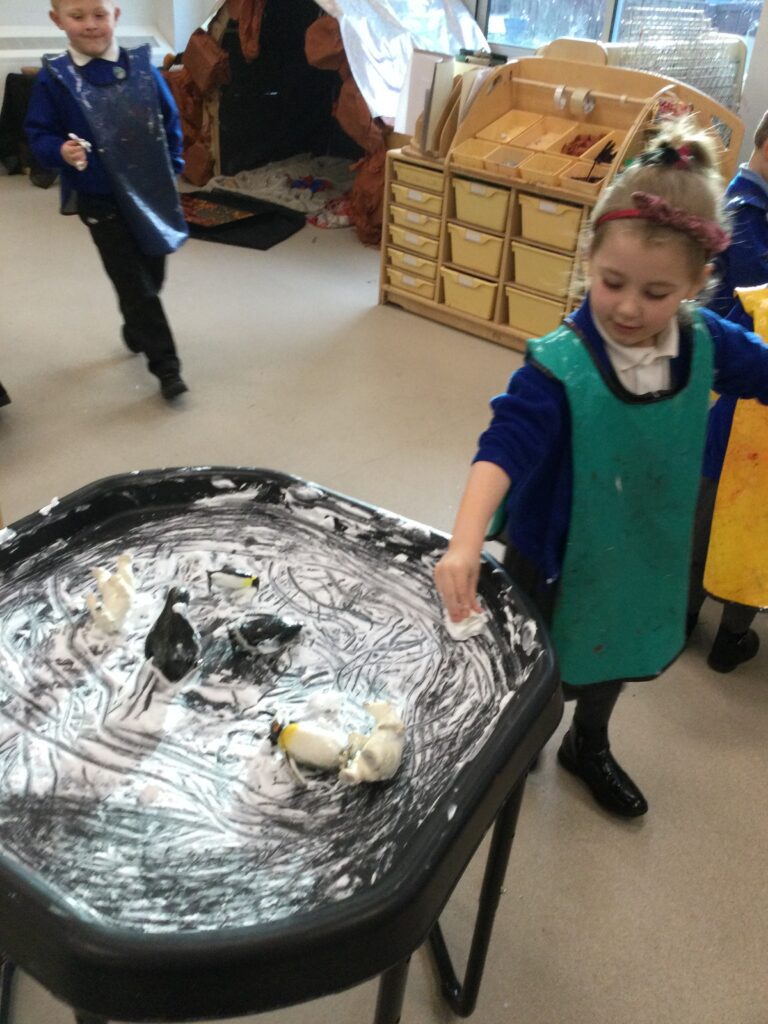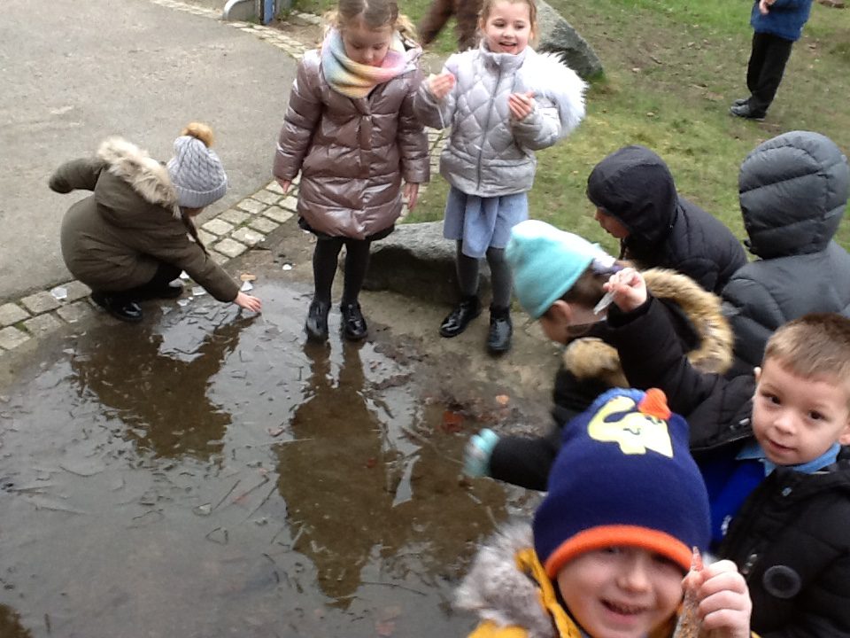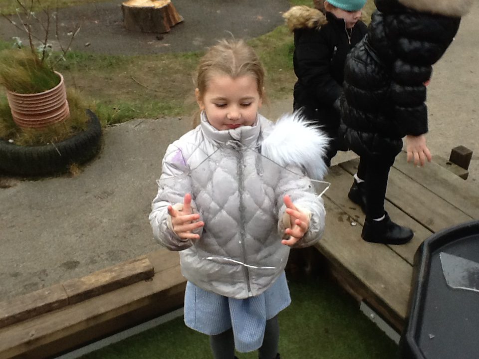 This week we having been learning about winter. We have thought about the different weathers we see in England and how this makes us feel. We have explored different clothes we need to wear to keep us warm, and enjoyed exploring the ice we found outside. We loved investigating what happens when we hold the ice in our warm hands, or when we add warm water to the ice. We have also been learning about how animals keep warm in the winter, and how some birds migrate to warmer countries over the winter months.