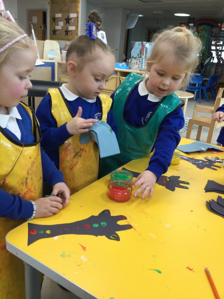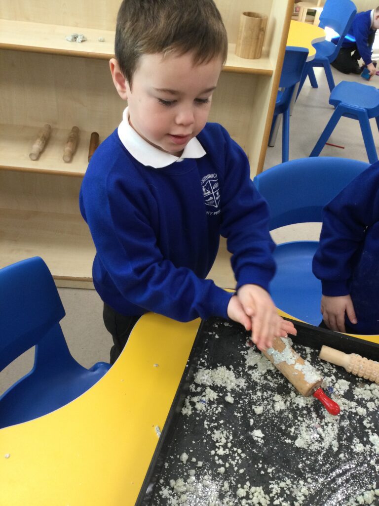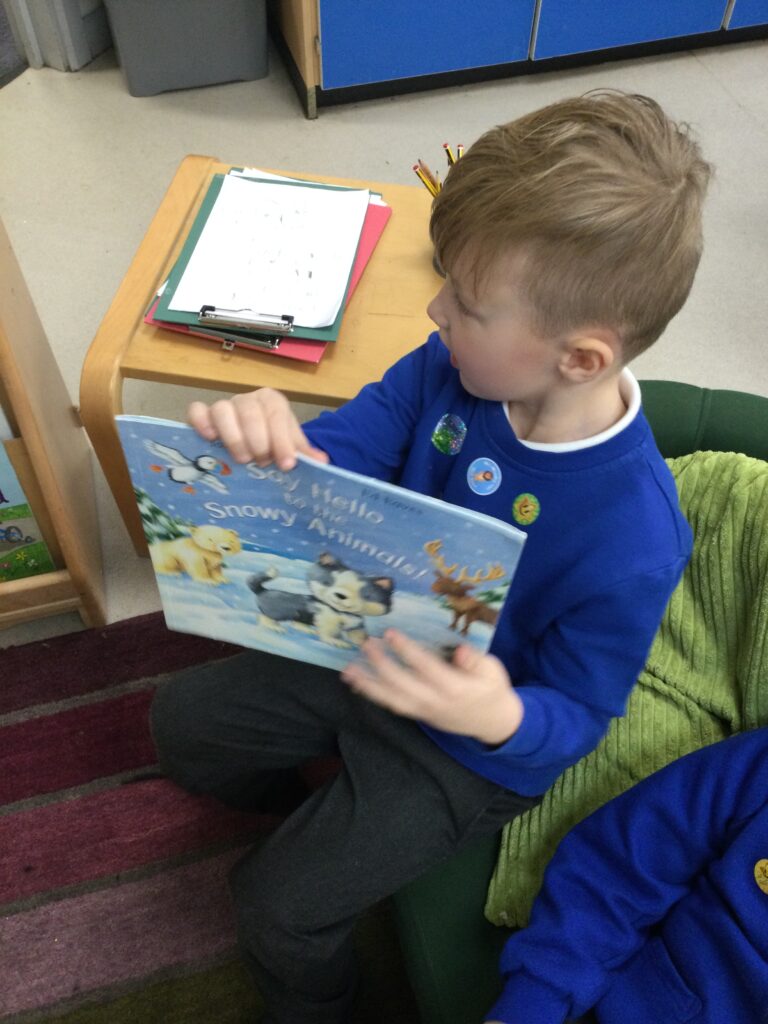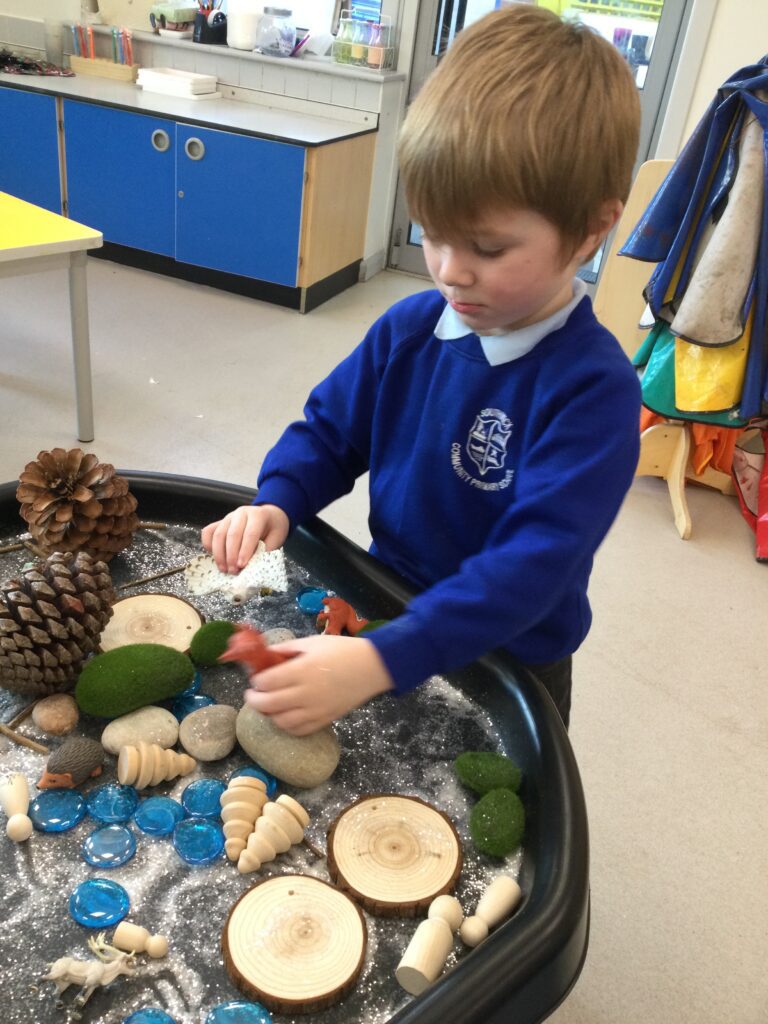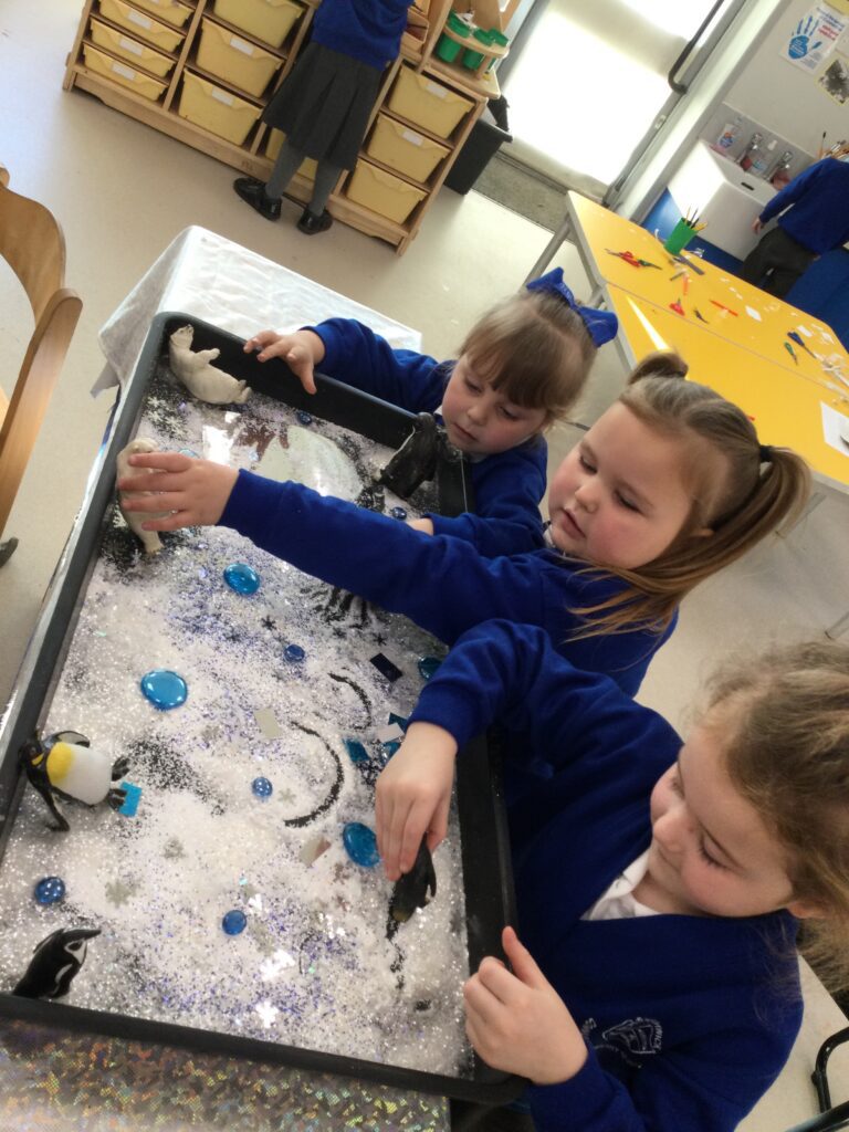 This week we having been learning about winter. We have thought about the different weathers we see in England and how this makes us feel. We have explored different clothes we need to wear to keep us warm, and enjoyed exploring the ice we found outside. We loved investigating what happens when we hold the ice in our warm hands, or when we add warm water to the ice. We have also been learning about how animals keep warm in the winter, and how some birds migrate to warmer countries over the winter months.